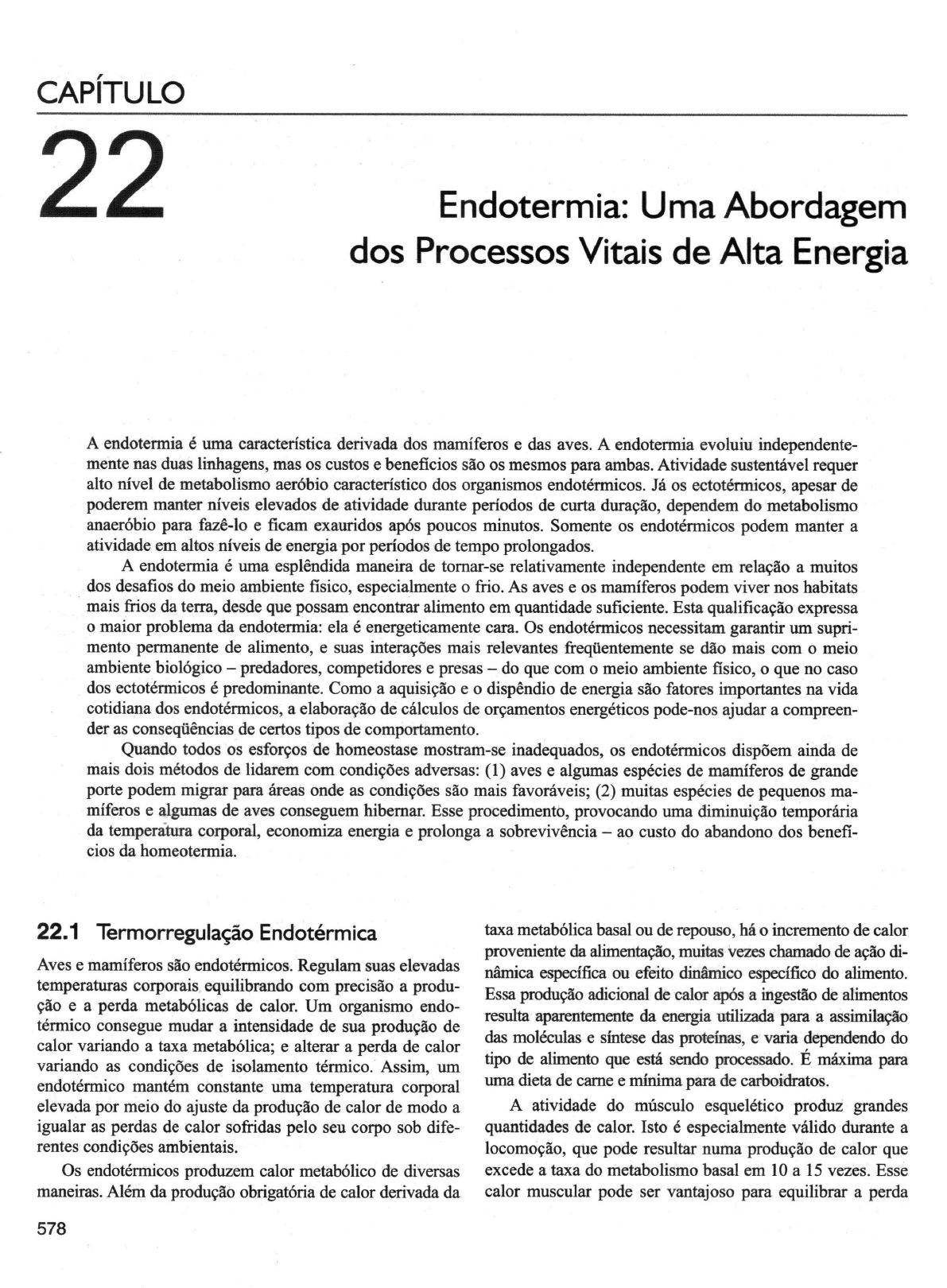 604 CAPÍTULO 22 Endotermia: uma Abordagem dos Processos Vitais de Alta Energia