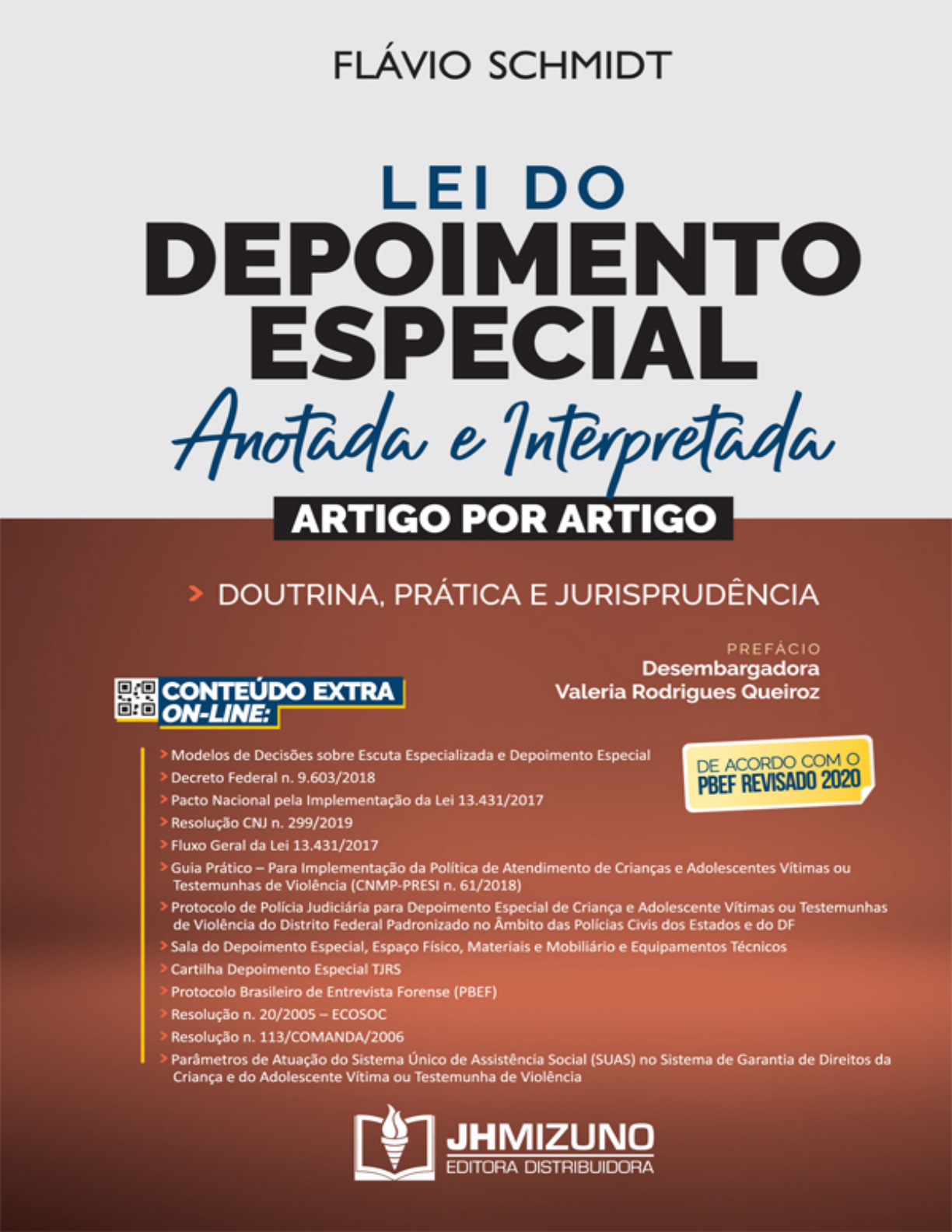 LEI DO DEPOIMENTO ESPECIAL ANOTADA E INTERPRETADA FLÁVIO SCHMIDT JUIZ DE DIREITO EM MINAS GERAIS DOCENTE DA ESCOLA JUDICIAL DES. EDÉSIO FERNANDES (TJMG), ENFAM E CNJ LEI DO DEPOIMENTO ESPECIAL ANOTADA E INTERPRETADA ARTIGO POR ARTIGO Lei do Depoimento Especial Anotada e Interpretada © Flávio Schmidt J. H. MIZUNO 2020 Revisão: José Silva Sobrinho Dados Internacionais de Catalogação na Publicação (CIP) (eDOC BRASIL, Belo Horizonte/MG) C114c Schmidt, Flávio. Lei do depoimento especial anotada e interpretada / Flávio Schmidt. – Leme, SP: JH Mizuno, 2020. 429 p. : 17 x 24 cm ISBN 978-65-5526-052-6 1. Direito penal. 2. Depoimento especial. 3. Prova (Direito) – Brasil. I. Título. CDD 345.8105 Elaborado por Maurício Amormino Júnior – CRB6/2422 Nos termos da lei que resguarda os direitos autorais, é expressamente proibida a reprodução total ou parcial destes textos, inclusive a produção de apostilas, de qualquer forma ou por qualquer meio, eletrônico ou mecânico, inclusive através de processos xerográficos, reprográficos, de fotocópia ou gravação. Qualquer reprodução, mesmo que não idêntica a este material, mas que caracterize similaridade confirmada judicialmente, também sujeitará seu responsável às sanções da legislação em vigor. A violação dos direitos autorais caracteriza-se como crime incurso no art. 184 do Código Penal, assim como na Lei n. 9.610, de 19.02.1998. O conteúdo da obra é de responsabilidade dos autores. Desta forma, quaisquer medidas judiciais ou extrajudiciais concernentes ao conteúdo serão de inteira responsabilidade dos autores. Todos os direitos desta edição reservados à JH MIZUNO Rua Benedito Zacariotto, 172 - Parque Alto das Palmeiras, Leme - SP, 13614-460 Correspondência: Av. 29 de Agosto, nº 90, Caixa Postal 501 - Centro, Leme - SP, 13610-210 Fone/Fax: (0XX19) 3571-0420 Visite nosso site: www.editorajhmizuno.com.br e-mail: atendimento@editorajhmizuno.com.br Impresso no Brasil Printed in Brazil http://www.editorajhmizuno.com.br/ mailto:atendimento@editorajhmizuno.com.br “Acima de tudo, agradeço a Deus, nosso maior protetor, e, depois, à minha devoção a Santo Expedito e a Maria do Carmo, uma “santa” bajeense que deixou sua história em São Borja, RS, e até hoje irradia seus encantos a todos que depositam nela sua fé, e que me acompanham desde o início dessa longa jornada de conquistas profissionais; sem eles nada seria possível” AGRADECIMENTOS Aos meus filhos Flávio Filho, Maria Rita e Stephanie, a quem dedico esta obra com muito carinho, por acreditar que nossas crianças e adolescentes são a razão do nosso viver, trazem alegria, são ingênuos e sinceros em seus atos e refletem o verdadeiro amor. A Pâmela, minha companheira incansável, paciente e dedicada, a quem devo tudo para conseguir atingir este objetivo. Aos meus irmãos, Maria da Graça Schmidt Disconzi e José Roberto Moura Schmidt, que neste momento vêm cuidando de nossa mãe, Rita Lauter de Moura, a quem eu amo, com carinho, afeto e muito amor, o que nos dá tranquilidade para, de longe, continuar a vida sabendo de suas dedicações para o seu bem-estar. Ao meu pai, Adão Schmidt (in memoriam), meu timoneiro, que tudo me ensinou, me deu sabedoria e conhecimento, deixou registrado seu amor ao próximo, o que incutiu em minha personalidade sempre olhar para o meu semelhante. Aos meus amigos, colegas e integrantes da Coordenadoria da Infância e Juventude de Minas Geais (COINJ) ALDINA DE CARVALHO SOARES, ANDREYA ALCÂNTARA FERREIRA CHAVES, RIZA APARECIDA NERY, AFRÂNIO JOSÉ FONSECA NARDY, ELISEU SILVA LEITE, SÉRGIO LUIZ MAIA, JOSÉ ROBERTO POIANI, MARCOS PADULA e RICARDO RODRIGUES LIMA, obrigado pelo carinho, companheirismo, dedicação e apoio para que pudesse deixar registrada esta obra às nossas crianças e adolescentes. À Desembargadora Valéria Rodrigues Queiroz, a quem eu devo o maior respeito. Pessoa inconfundível, dedicada à causa infantojuvenil, reconhecida nacionalmente pelo seu trabalho, incansável, e que nos deu oportunidade desde 2018 de estar com ela na Coordenadoria da Infância e Juventude do Tribunal de Justiça de Minas Gerais acreditando que poderíamos mudar, ainda mais, as condições das nossas crianças e adolescentes e, com passos largos, estamos vencendo desafios para atingir nossos objetivos em prol deles. À Escola Judicial Des. Edésio Fernandes, uma das instituições mais importantes deste país, que vem nos dando oportunidade de contribuir para a Magistratura Mineira com a qualificação dos magistrados do TJMG. Ao Conselho Nacional de Justiça, que acreditou em nosso trabalho e deu oportunidade de difundir nossa experiência em outros Estados. À Editora JH Mizuno que, mais uma vez, acreditou no nosso trabalho. Flávio Schmidt PREFÁCIO A Lei n. 13.431, de 04 de abril de 2017, estabelece o sistema de garantia de direitos da criança e do adolescente vítima ou testemunha de violência, tendo por objetivo resguardá-los de toda forma de negligência, discriminação, exploração, violência, abuso, crueldade e opressão. Para que se combata a revitimização ou vitimização secundária, esta Lei definiu as formas e os protocolos de ouvida de criança ou adolescente acerca da situação de violência (artigo 4º, parágrafo 1º), por meio de escuta especializada e depoimento especial. Em que momento se dará a escuta especializada? Qual é o órgão competente para realizar a escuta especializada, visto que ela só pode ser feita uma única vez? A quem compete realizar o depoimento especial? Trata-se de uma medida cautelar de antecipação de provas? Quais são os protocolos que os profissionais deverão utilizar? Se a ouvida da criança ou do adolescente não for realizada dentro dos protocolos específicos, em local apropriado e por profissional capacitado, acarretará nulidade processual? Verifica-se assim, que apesar de ter entrado em vigor no ano de 2018, ou seja, há 2 anos, esta Lei vem ca
