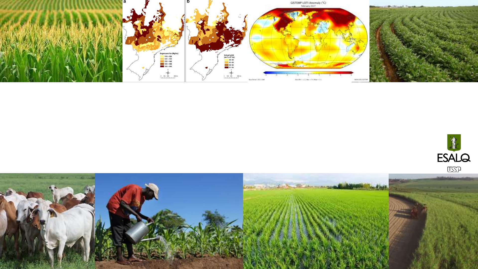 Prof Fabio Marin – Esalq/USP Efeito do clima na produção agrícola em sistema de plantio direto Fábio R. Marin – Esalq/USP Prof. Fabio Marin – Esalq/USP CONCEITOS BÁSICOS E RADIAÇÃO SOLAR Prof. Fabio Marin – Esalq/USP Produtividade Agrícola Ambiente Tratos Culturais Genética O que controla a produtividade? Conceitos Básicos Prof. Fabio Marin – Esalq/USP Produtividade Agrícola Cultivar Solo Clima Espécie Espaçamento O QUE CONTROLA A PRODUTIVIDADE? Prof. Fabio Marin – Esalq/USP Produtividade Agrícola Cultivar Temperatura Espécie Espaçamento Prof. das raízes O QUE CONTROLA A PRODUTIVIDADE? Prof. Fabio Marin – Esalq/USP Célula vegetal como uma fábrica • Matéria-Prima • Turno de trabalho • Fonte de Energia • Gastos Prof. Fabio Marin – Esalq/USP Atmosfera • Definição: camada de gases que envolve um planeta e é retida pela sua atração gravitacional. • Se comparada com o diâmetro da Terra, a espessura da atmosfera não representa mais que 1,6% de seu raio e, se considerarmos que sob o ponto de vista meteorológico a camada mais importante da atmosfera está restrita a 20 km de altitude, teremos que essa espessura é menos de 0,4% do raio terrestre. Prof. Fabio Marin – Esalq/USP Composição Básica Constituinte Fração Molar com base em Volume Massa Molecular Nitrogênio (N) 78% 28,013 Oxigênio (O2) 21% 31,999 Argônio (Ar) 0,9% 39,948 Dióxido de Carbono (CO2) 0,03% 44,010 Neônio (Ne) 0,0018% 20,183 Hélio (He) 0,00052% 4,003 Prof. Fabio Marin – Esalq/USP Alteração na Composição – Mudanças Climáticas Prof. Fabio Marin – Esalq/USP Definições: Agrometeorologia ◼ A meteorologia é a ciência que estuda os fenómenos da atmosfera; ◼ A origem da palavra meteorologia é “meteoro” que significa aquilo que está suspenso no ar; ◼ A Meteorologia Agrícola, também conhecida como Agrometeorologia, é o ramo da Meteorologia que estuda a influência das condições meteorológicas nas atividades agropecuárias; ◼ Agricultura é o conjunto de técnicas utilizadas para cultivar plantas com o objetivo de obter alimentos, fibras, energia, matéria-prima (do inglês 4F´s: fiber, food, feedstock, fuel). Prof. Fabio Marin – Esalq/USP Qual a Diferença entre Clima e Tempo?? Denomina-se tempo à descrição instantânea, enquanto que a descrição média é denominada de clima. Tempo é o estado da atmosfera num local e instante, sendo caracterizado pelas condições de temperatura, pressão, concentração de vapor, velocidade e direção do vento, precipitação; Clima é a descrição média, valor mais provável, das condições atmosféricas nesse mesmo local. Com a descrição climática sabe-se antecipadamente que condições de tempo são predominantes na região e quais atividades agrícolas têm maior possibilidade de êxito. Prof. Fabio Marin – Esalq/USP Resumindo: ◼ Em resumo, Tempo é o estado da atmosfera num determinado momento e um determinado lugar. É o objeto de estudo da Meteorologia. ◼ Clima é média das condições do tempo. É o objeto de estudo da climatologia. Prof. Fabio Marin – Esalq/USP Exemplo: Clima de Piracicaba Note que aqui temos médias mensais (obtidas a partir de mais de 100 anos de dados) de temperatura e chuva para Piracicaba Prof. Fabio Marin – Esalq/USP Elementos e Fatores ◼ Elementos são grandezas (variáveis) que caracterizam o estado da atmosfera, ou seja: radiação solar, temperatura, umidade relativa, pressão, velocidade e direção do vento, precipitação ◼ Fatores são agentes causais que condicionam os elementos climáticos. Fatores geográficos tais como latitude, altitude, continentalidade/oceanidade, tipo de corrente oceânica, afetam os elementos. ◼ Por exemplo, quanto maior a altitude menor a temperatura e a pressão. A radiação solar pode ser tomada ou como fator condicionador ou como elemento dependente da latitude, altitude, e época do ano. Prof. Fabio Marin – Esalq/USP Escala Temporal dos Fenômenos Atmosféricos ◼ Variação diária (Rotação) ◼ Variacao anual - estações do ano (Translação, periodicidade) ◼ Tendências e mudanças no clima Prof. Fabio Marin – Esalq/USP Anomalia e Tendência ◼ Anomalia climática - flutuação extrema de um elemento em uma série climatológica, com desvios acentuados do padrão observado de variabilidade. Prof. Fabio Marin – Esalq/USP Definindo as três escalas: ◼ Macroescala: movimentação de grandes massas de ar – Fenômenos com dimensão entre 100km e 1000km num período de horas a semanas. ◼ Mesoescala: dependência do relevo – Fenômenos com dimensão entre 100m e 100km num período de horas. ◼ Microescala: trocas gasosas, dispersão de poluentes; dependente da cobertura da superfície e objeto de estudo da micrometeorologia. Fenômenos com dimensão entre metros a dezenas de metros num período de segundos ou minutos. Prof. Fabio Marin – Esalq/USP http://www.momagri.org/UK/momagri-model/Commodity-Price-Volatility-Causes-and-Impact-on-the-EU-Agricultural-Markets_695.html AÇÚCAR TOMATE AUTOMÓVEIS http://www.momagri.org/UK/momagri-model/Commodity-Price-Volatility-Causes-and-Impact-on-the-EU-Agricultural-Markets_695.html Prof. Fabio Marin – Esalq/USP clima MARIN. 2016. CLIMA, O FATOR FALTANTE DA REVOLUÇÃO VERDE https://www.linkedin.com/pulse/clima-o-fator-faltante-da-revolu%C3%A7%C3%A3o- verde-fabio-marin/?originalSubdomain=pt Prof. Fabio Marin – Esalq/USP Clima, a última fronteira da revolução verde Prof. Fabio Marin – Esalq/USP Atmosfera Solo Planta 8 disciplinas em Plantas Engenharia Agronômica na ESALQ 7 disciplinas 1 disciplina LEB306 Optativas LEB410 – Mudanças Climáticas e Agricultura 1100222 - Modelagem de Culturas Agrícolas LEB0600 – Microclimatologia Agrícola Prof. Fabio Marin – Esalq/USPA F E R R A M E N T A C IE N T ÍF IC A “PROCESS BASED CROP MODELS” Prof. Fabio Marin – Esalq/USP A utilidade do CPC na gestão QUANTIFICANDO E ISOLANDO O MA