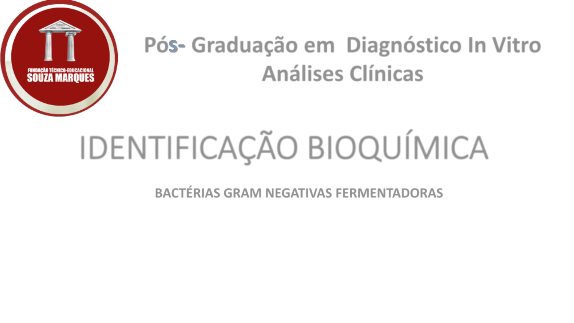 IDENTIFICAÇÃO BIOQUÍMICA BACTÉRIAS GRAM NEGATIVAS FERMENTADORAS Pós- Graduação em Diagnóstico In Vitro Análises Clínicas INTERPRETAÇÃO DO MEIO DE TSI Leitura Imagem Interpretação Diagnóstico Presuntivo Reação ácida (amarela) e gás na profundidade, reação ácida na superfície, ausência de H2S Fermentação da glicose, lactose e sacarose. Com produção de gás Escherichia Klebsiella Enterobacter Proteus Reação ácida (amarela) e gás na profundidade, reação alcalina na superfície, presença de H2S Fermentação da glicose com produção de gás, sem fermentação de lactose e sacarose. Salmonella Arizona Citrobacter Edwarsiella Proteus Reação ácida (amarela) e sem gás na profundidade, reação alcalina na superfície, ausência de H2S Fermentação da glicose formando apenas ácido, sem fermentação de lactose e sacarose. Shigella Escherichia Serratia Providência Proteus Salmonella Typhy (traços H2S) Reação ácida (amarela) e gás na profundidade, reação ácida na superfície, presença de H2S Fermentação da glicose, fermentação de lactose e sacarose. Inclusive com produção de gás e H2S Arizona Citrobacter Proteus vulgaris Reação ácida (amarela), sem gás na profundidade, ausência de H2S Fermentação da glicose, com formação apenas de ácido fermentação da lactose e sacarose Serratia Superfície e profundidade sem alteração ou alcalina, ausência de H2S Açúcares inalterados Pseudomonas Herella Mima Alcaligenes Provas de Identificação Micro-organismos Siglas* Ureia(+) Klebsiella - Indol (+) Escherichia coli, Klebsiella oxytoca, Proteus vulgaris - Fenilalanina (+) Proteus, Morganella e Providência PMP H2S (+) Salmonella, Arizona,Proteus, Edwarsiella tarda, Citrobacter freundii SAPEC Vorges Proskauer Hafnia, Enterobacter, Serratia e Klebsiella OBS: Pantoea agglomerans é Variável HESK Indol (+), H2S (+), Fenilalanina (-) Citrobacter freundii e Edwarsiella tarda CfEt Indol (-), H2S (+), Fenilalanina (-) Salmonella - Todas as provas (-) Shigella - *As siglas não existem, foram criadas para memorizar Salmonella enterica subespecie arizonae provas de identificação: -Malonato positivo - Dulcitol negativo - Fermentam lactose - ONPG positivo (todas as cepas) H2S (+); Indol (+); Prova do Vermelho de Metila (+); Uréia (+); Fenilalanina (+); Citrato de Simmons (+) H2S (+); Indol (+); Prova do Vermelho de Metila (+); Uréia (+); Fenilalanina (+); Citrato de Simmons (+)