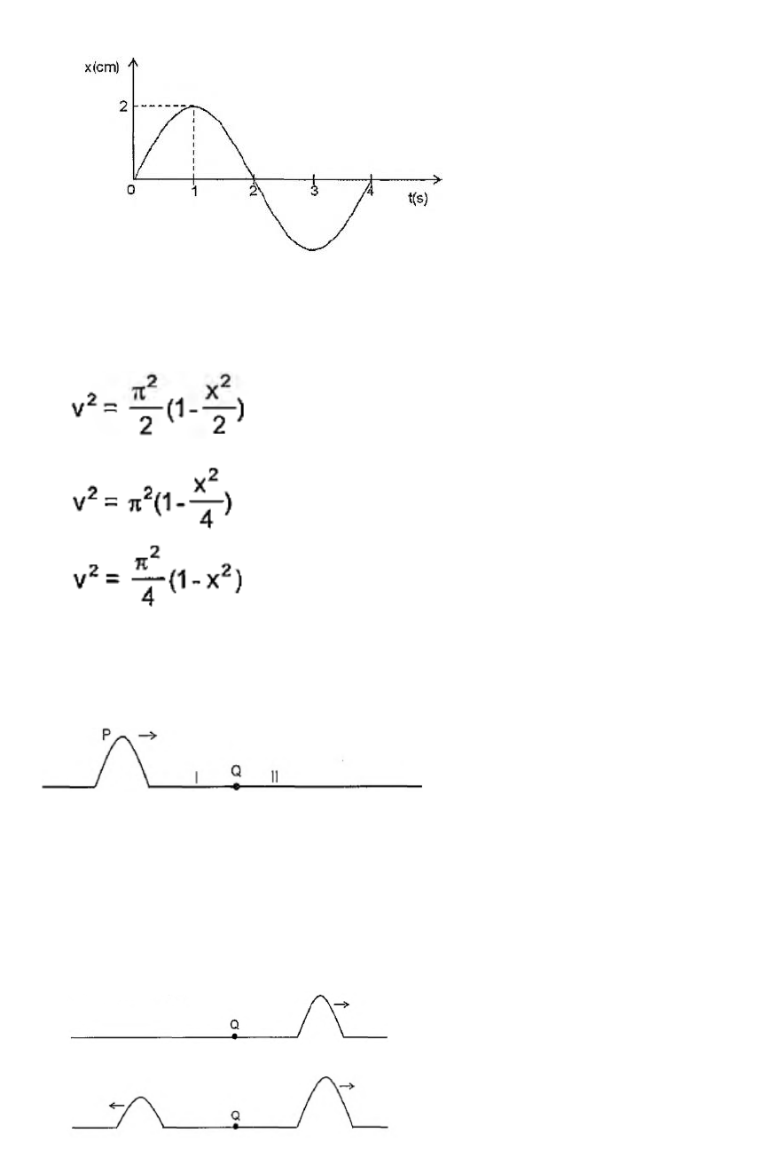 PROFESSOR RAFAEL TROVÃO 01)(ESCOLA NAVAL) Analise o gráfico abaixo. O gráfico acima representa a posição x de uma partícula que realiza um MHS (Movimento Harmônico Simples), em função do tempo t. A equação que relaciona a velocidade v, em cm/s, da partícula com a sua posição x é: a) v2= π2(1- x2) b) c) v2= π2(1+ x2) d) e) 02) (ESCOLA NAVAL) Analise a figura abaixo. A figura acima representa um pulso P que se propaga em uma corda I, de densidade linear μI, em direção a uma corda II, de densidade linear μII. O ponto Q é o ponto de junção das duas cordas. Sabendo que μI > μII, o perfil da corda logo após a passagem do pulso P pela junção Q é melhor representado por: a) b) c) d) e) 03) (ESCOLA NAVAL) Analise a figura abaixo. A figura acima ilustra quatro fontes sonoras pontuais (F1, F2, F3, e F4). isotrópicas, uniformemente espaçadas de d = 0,2 m, ao longo do eixo x. Um ponto P também é mostrado sobre o eixo x. As fontes estão em fase e emitem ondas sonoras na frequência de 825 Hz, com mesma amplitude A e mesma velocidade de propagação, 330 m/s. Suponha que, quando as ondas se propagam até P, suas amplitudes se mantêm praticamente constantes. Sendo assim a amplitude da onda resultante no ponto P é: a) zero b) A/4 c) A/2 d) A e) 2A 04) (ESCOLA NAVAL) O comprimento de onda da luz amarela de sódio é 0,589μm. Considere um feixe de luz amarela de sódio se propagando no ar e incidindo sobre uma pedra de diamante, cujo índice de refração é igual a 2,4. Quais são o comprimento de onda, em angstroms, e a frequência, em quilohertz, da luz amarela de sódio no interior do diamante? Dados: c = 3.108 m/s, 1 angstrom = 10-10 m a) 2454 e 5,1.1011 b) 2454 e 5,1.1014 c) 5890 e 2,1. 1011 d) 5890 e 2,1.1014 e) 14140 e 5,1.1014 05) (ESCOLA NAVAL) O motorista de um carro entra numa estrada reta, no sentido norte-sul, a 100km/h e dá um toque na buzina de seu carro que emite som isotropicamente na frequência de 1200Hz. Um segundo após, ele percebe um eco numa frequência de 840Hz. Sendo assim, o motorista NÃO pode incluir como hipótese válida, que há algum obstáculo: a) em movimento à frente. b) que ficou para trás. c) parado à frente. d) com velocidade menor que a dele. e) com velocidade maior que a dele. 06) (ESCOLA NAVAL) Analise a figura abaixo. A figura acima mostra uma montagem em que o bloco de massa m= 0,70kg, preso à extremidade de uma mola vertical, oscila em torno da sua posição de equilíbrio. No bloco, prende-se uma corda muito longa estendida na horizontal. A massa específica linear da corda é 1,6.10-4kg/m. Após algum tempo, estabelece-se na corda uma onda transversal cuja equação é dada por y (x, t)=0,030.cos (2,0x-30t) , onde x e y estão em metros e t em segundos. Nessas condições, a constante elástica da mola, em N/m, e a tração na corda, em mN, são, respectivamente: a) 157 e 144 b) 210 e 36 c) 210 e 160 d) 630 e 36 e) 630 e 144 07) (ESCOLA NAVAL) Analise a figura abaixo. A figura acima mostra duas molas ideais idênticas presas a um bloco de massa m e a dois suportes fixos. Esse bloco está apoiado sobre uma superfície horizontal sem atrito e oscila com amplitude A em torno da posição de equilíbrio x = 0. Considere duas posições do bloco sobre o eixo x: x1 = A/4 e x2= 3A/4 . Sendo v1 e v2 as respectivas velocidades do bloco nas posições x1 e x2, a razão entre os módulos das velocidades, v1/v2 , é: a) b) c) d) e) 08) (ESCOLA NAVAL) Analise a figura abaixo. Uma fonte sonora isotrópica emite ondas numa dada potência. Dois detectores fazem a medida da intensidade do som em decibéis. O detector A que está a uma distância de 2,0m da fonte mede 10dB e o detector B mede 5,0dB, conforme indica a figura acima. A distância, em metros, entre os detectores A e B, aproximadamente, vale: a) 0,25 b) 0,50 c) 1,0 d) 1,5 e) 2,0 09) (ESCOLA NAVAL) Analise a figura abaixo. Na figura acima, temos dois sistemas massa-mola no equilíbrio, onde ambos possuem a mesma massa m=4,0kg, no entanto, o coeficiente elástico da mola do sistema 1 é k1=36N/m e o do sistema 2 é k2=100N/m. No ponto de equilíbrio, ambas as massas possuem a mesma posição vertical e, no instante t=0, elas são liberadas, a partir do repouso, após sofrerem um mesmo deslocamento vertical em relação aos seus respectivos pontos de equilíbrio. Qual será o próximo instante, em segundos, no qual elas estarão novamente juntas na mesma posição vertical inicial, ou seja, na posição vertical ocupada por ambas em t=0? Dado: considere π=3 a) 3,0 b) 4,5 c) 6,0 d) 7,5 e) 9,0 10) (ESCOLA NAVAL) Para uma certa onda estacionária transversal em uma corda longa ao longo do eixo x, existe um antinó localizado em x = 0 seguido de um nó em x = 0,10 m. A figura abaixo mostra o gráfico do deslocamento transversal, y, em função do tempo, da partícula da corda localizada em x = 0. Das opções a seguir, qual fornece uma função y(x), em metros, para a onda estacionária no instante 0,50 s ? a) - 0,04 cos (π x) b) + 0,04 cos (π x) c) - 0,04 cos ( 2π x ) d) + 0,04 cos ( 5π x) e) - 0,04 cos (5π x ) 11) (ESCOLA NAVAL) Analise a figura a seguir. Considere duas fontes sonoras puntiformes, F1 e F2, que estão separadas por uma pequena distância d, conforme mostra a figura acima. As fontes estão inicialmente em fase e produzem ondas de comprimento de onda λ. As ondas provenientes das fontes F1 e F2 percorrem, respectivamente, os caminhos L1 e L2 até o ponto afastado P, onde há superposição das ondas. Sabendo que ΔL = |L1 — L2| é a diferença de caminho entre as fontes e o ponto P, o gráfico que pode representar a variação da intensidade da onda resultante das duas fontes, I, em função da diferença de caminho ΔL é: a) b) c) d) e) 12) (ESCOLA NAVAL) Uma fonte sonora, emitindo um ruído de frequência f = 450Hz, move-se em um círculo de raio igual a 50,0 cm, com uma velocidade angular de 20,0 rad/s. Considere o módulo da velocidade do som igual a 