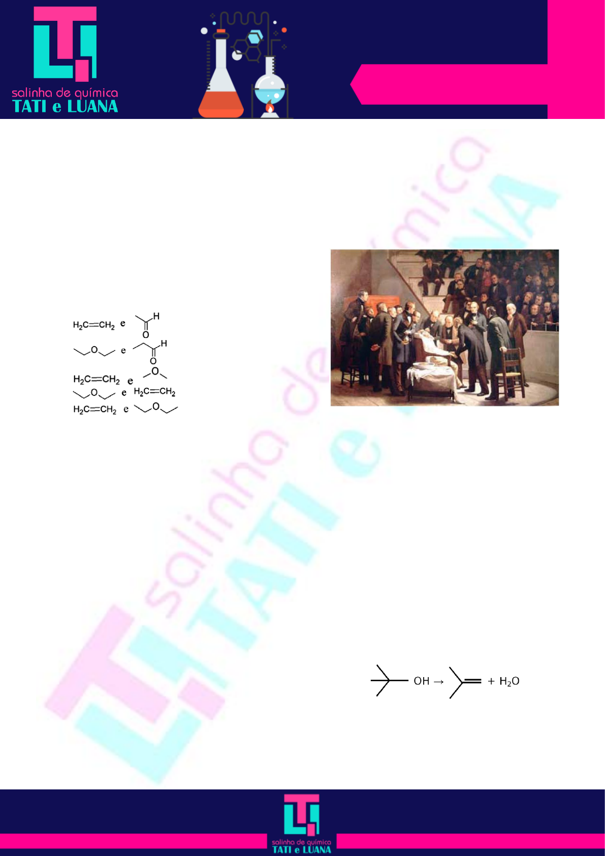 REAÇÕES DE ELIMINAÇÃO L ista 4 8 QUESTÃO 1 (Mackenzie SP) As reações orgânicas de eliminação são aquelas em que átomos ou grupos de átomos de uma molécula são eliminados dela, formando-se um novo composto orgânico, além de um composto inorgânico. Um tipo de reação de eliminação é a desidratação, em que a molécula inorgânica eliminada é a da água. A desidratação dos álcoois, em meio ácido e sob aquecimento, pode se dar de duas formas: intramolecular e intermolecular. Sendo assim, os produtos obtidos nas desidratações intra e intermolecular do etanol, sob condições adequadas são, respectivamente, a) b) c) d) e) QUESTÃO 2 (UECE) Normalmente na desidratação de ácido carboxílico há formação de a) éter. b) éster. c) aldeído. d) anidrido. QUESTÃO 3 (UEM PR) O composto A tem fórmula molecular C3H8O e, quando aquecido na presença de H2SO4 concentrado, produz o composto B e água. A adição do composto B em uma solução de Br2 em CCl4 não causa a descoloração da solução. Com base nessas informações, assinale o que for correto. 01. Se o composto A é a propanona, o composto B é o ácido propanoico. 02. Se o composto A é o propan-2-ol, o composto B é o propeno. 04. Se o composto A é o propan-1-ol, o composto B é o éter dipropílico. 08. A conversão do composto A no composto B é uma reação de desidratação intermolecular. 16. O composto B é menos solúvel em água do que o composto A. QUESTÃO 4 (FMSanta Casa SP) O quadro do pintor Robert Hinckley, de 1882, representa a cena da primeira intervenção cirúrgica da história realizada com anestesia geral, em 16.10.1846. No início, o médico fez suspense sobre qual era a substância utilizada como anestésico, mas revelou mais tarde que se tratava do éter sulfúrico, também conhecido como éter etílico, com nome IUPAC etoxietano. Na indústria, em condições de temperatura controlada, o éter etílico é obtido a partir da reação de desidratação do etanol na presença do catalisador H2SO4. a) Represente e escreva o nome da principal interação que ocorre entre uma molécula de éter etílico e uma molécula de água. b) Escreva a equação da reação de obtenção do éter etílico a partir do etanol. Que tipo de desidratação ocorreu nesta reação? QUESTÃO 5 (UECE) Atente à seguinte reação química: Considerando a reação química acima, assinale a opção que completa corretamente as lacunas do seguinte enunciado: O terc-butanol (reagente), quando aquecido na presença de um catalisador____________1, por meio de uma reação de____________2, produz o isobutileno (produto) cujo nome pela IUPAC é ____________3. REAÇÕES DE ELIMINAÇÃO L ista 4 8 a) básico1; condensação2; 1,1-dimetileteno3 b) ácido1, eliminação2; 2-metilpropeno3 c) ácido1, desidratação2; 1,1-dimetileteno3 d) básico1, desidratação2; 2-metilpropeno3 QUESTÃO 6 (PUC GO) A velha engolida pela pedra Não sou homem de igreja. Não creio e isso me dá uma tristeza. Porque, afinal, tenho em mim a religiosidade exigível a qualquer crente. Sou religioso sem religião. Sofro, afinal, a doença da poesia: sonho lugares em que nunca estive, acredito só no que não se pode provar. E, mesmo se eu hoje rezasse, não saberia o que pedir a Deus. Esse é o meu medo: só os loucos não sabem o que pedir a Deus. Ou não se dará o caso de Deus ter perdido fé nos homens? Enfim, meu gosto de visitar as igrejas vem apenas da tranquilitude desses lugarinhos côncavos, cheios de sombras sossegadas. Lá eu sei respirar. Fora fica o mundo e suas desacudidas misérias. Pois numa dessas visitas me aconteceu o que não posso evitar de relembrar. A igrejinha era de pedra crua, dessa pedra tão idosa como a terra. Nem parecia obra de humano traço. Eu apreciava as figuras dos santos, madeiras com alma de se crer. Foi quando escutei uns bichanos. Primeiro duvidei. Eram sons que não se traduziam em nada de terrestre. Estaria eu a ser chamado por forças do além? Estremeci. Quem está preparado para dialogar com a eternidade? Os sibilos prosseguiam e, então, me discerni: era uma velha que me chamava [...]: — Pssst, pssst. — Eu? — Sim, próprio você. Me ajude levantar. Tentei ajudá-la a se erguer. Desconsegui. Nem eu esperava peso tão volumoso daquela mínima criatura. [...] A velha não conseguia desajoelhar-se. [...] Que fazer? Me sentei ao lado da velha, hesitando em como lhe pegar. — Vá me ajude, me empurre deste chão. Depresse-se, moço, que já estou ficando pedra. [...] — Espere: vou chamar mais alguém. — Não me deixa sozinha, meu filho. Não me deixe, por favor. Me levantei para espreitar: a igrejinha estava vazia. [...]. [...] Ainda me apliquei em novas forças, dobrei os intentos. Nem um deslizar da velha. De repente, eclatou o som iremediável de uma porta. Apurei os olhos na penumbra. Tinham fechado as pesadas portadas da igreja. Acorri, demasiado tarde. Chamei, gritei, bati, pés e mãos. Em vão. Tentava arrombar a porta, a velha me dissuadiu. Era pecado mais que mortal machucar a casa de Deus. — Mas é para sairmos, não podemos ficar aqui presos. Contudo, a porta era à prova de forças. A verdade era que eu e a beata estávamos prisioneiros daquele escuro. Acendi todas as velas que encontrei e me sentei junto da velha. Escutei as suas falagens: sabe, meu filho, sabe o que estive a pedir a Deus? Estive a pedir que me levasse, minha palhota lá em cima já está pronta. E eu aqui já me custo tanto! Problema é eu já não tenho corpo para ir sozinha para o céu. Estou tão velha, tão cansadíssima que não aguento subir todos esses caminhos até lá, nos aléns. Pedi sabe o quê? Pedi que me vertesse em pássaro, desses capazes de compridas voações, desses que viajam até passar os infinitos. É verdade, filho. Esta tarde pedi a Deus que me vertesse em pássaro. E me desse asas só para me levar deste mundo. Adormeci nessa lenga-lengação dela. Me afundei em sono igual à 