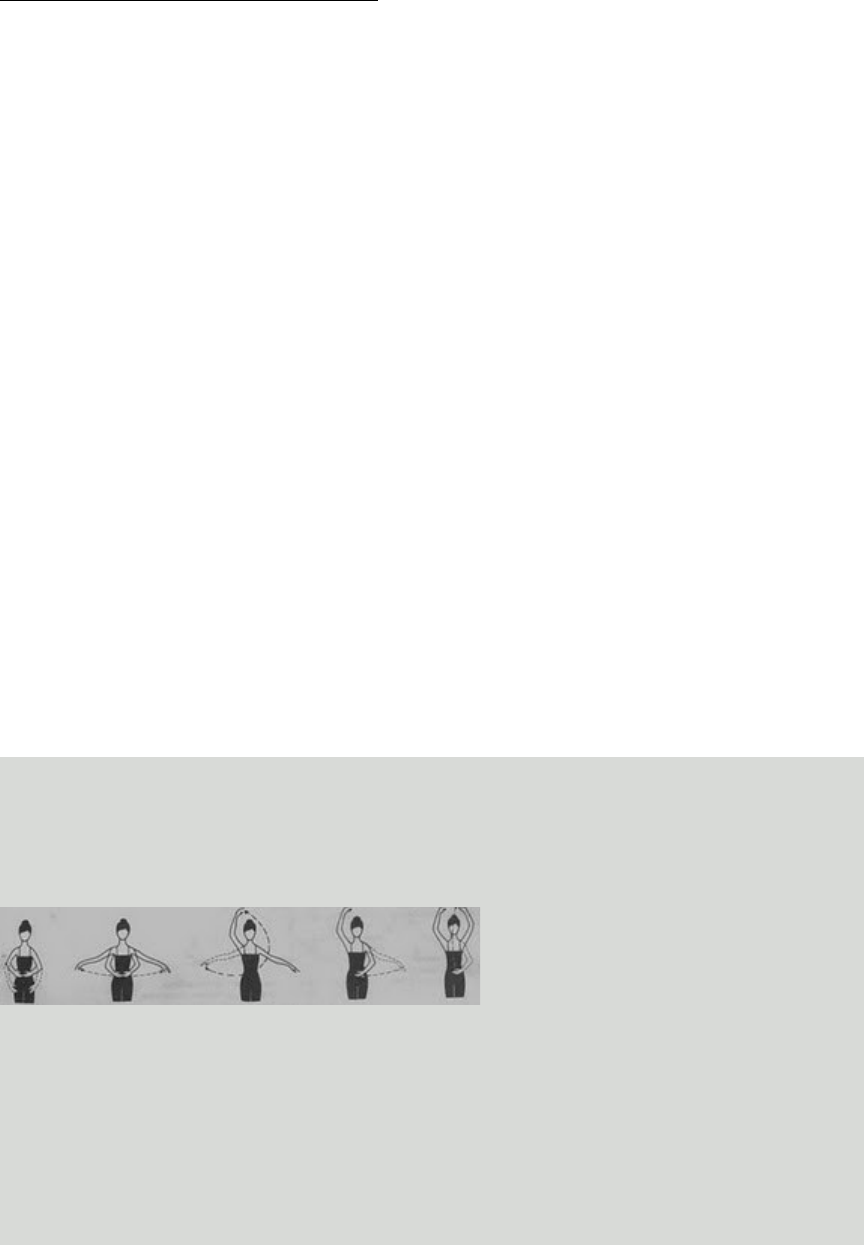Os braços e as mãos ficam na altura do estômago, arredondados, como se segurasse uma