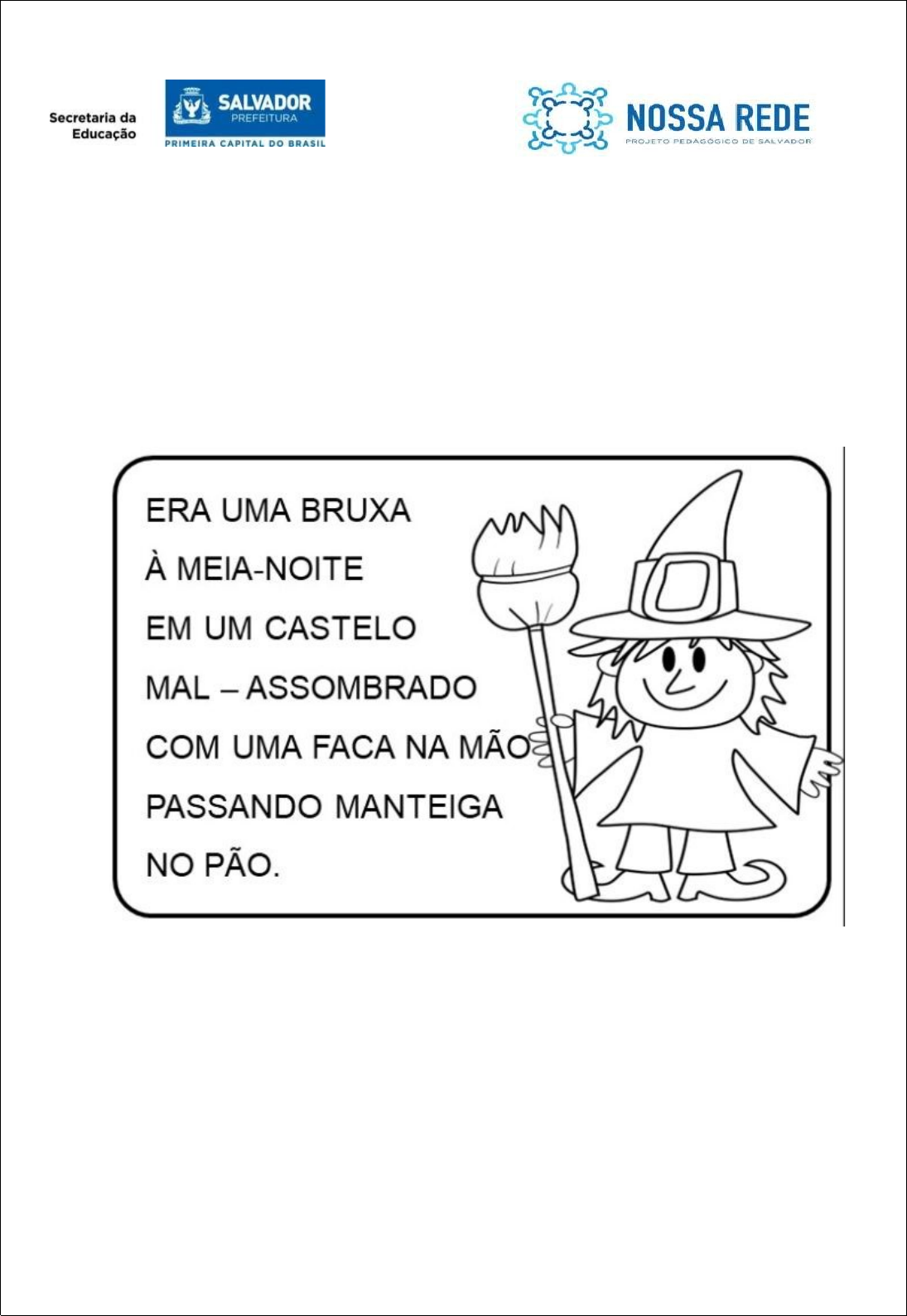 ESCOLA MUNICIPAL MANOEL DE ABREU DATA:___________/ ____________/ _____________ 1º ANO _____________ PROFESSORA: CAROLINE BULCÃO ALUNO (A): ________________________________________________________ ATIVIDADE DE PORTUGUÊS 1) ACOMPANHE A LEITURA DO TEXTO E PINTE OS ESPAÇOS ENTRE AS PALAVRAS NO TEXTO 2) QUAL A PRIMEIRA PALAVRA DO TEXTO? ___________________________________________________________________________ 3) QUAL A ÚLTIMA PALAVRA DO TEXTO? ___________________________________________________________________________ 4) QUANTAS PALAVRAS TEM O TEXTO? ___________________________________________________________________________ 5) QUEM É O PERSONAGEM PRINCIPAL? ___________________________________________________________________________ ESCOLA MUNICIPAL MANOEL DE ABREU DATA:___________/ ____________/ _____________ 1º ANO _____________ PROFESSORA: CAROLINE BULCÃO ALUNO (A): ________________________________________________________ ATIVIDADE DE PORTUGUÊS image1.jpeg image2.jpeg image3.jpeg image4.png