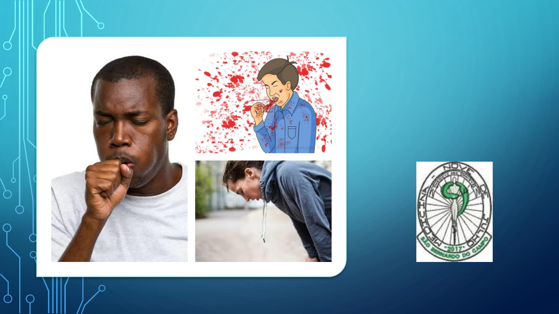 DISPNEIA TOSSE HEMOPTISE PROF. MÔNICA RAMOS DE ANDRADE Dispneia: conceito ✓ Dificuldade para respirar ✓ Experiência subjetiva de desconforto respiratório (de respirar desconfortavelmente), resultado de múltiplos fatores, entre eles psicológicos, fisiológicos, sociais e ambientais, que pode induzir a respostas fisiológicas e comportamentais secundárias Dispneia: conceito ✓ Sintoma muito comum ✓ Apresentação comum em várias doenças ✓ Pode acontecer em indivíduos sadios em condições de exercício extremo ✓ Particularmente referida por indivíduos com patologias dos aparelhos respiratório e cardiovascular. Termos descritivos usados para condições específicas Ortopneia Dispneia paroxítica noturna Platipneia Trepopneia Bendopneia Dispneia de esforço DISPNEIA DE ESFORÇO Sensação de dispneia que surge ou que é agravada devido a execução de atividades físicas. Queixa bastante comum- porém inespecífica. Presente principalmente entre os pacientes portadores de pneumopatias e de cardiopatias. ESCALA DE DISPNEIA - Modified Medical Reasearch Council (mMRC) ORTOPNEIA Sensação de falta de ar ou agravamento da falta de ar ao deitar-se (decúbito horizontal) e melhora ao se levantar (posição ortostática) ORTOPNEIA Congestão pulmonar Queda Complacência Aumento trabalho musculo respiratório ORTOPNEIA DISPNEIA PAROXÍSTICA NOTURNA • Sensação de falta de ar, sufocamento, que ocorre geralmente 2 a 4 horas após deitar- se • Pode ser acompanhada de sudorese, tosse, chiado e cianose • Melhora dentro de 15 a 30 minutos em posição ortostática DISPNEIA PAROXÍSTICA NOTURNA na IC Reabsorção de edema periférico Hipervolemia sistêmica e pulmonar Agravamento da congestão pulmonar PLATIPNEIA Sensação de dispneia que surge ou que se agrava com adoção da posição ortostática, em geral em pé. Classicamente, esse fenômeno ocorre em pacientes com quadros de pericardite ou na presença de shunts direito-esquerdos. TREPOPNEIA • Dispneia que ocorre ao deitar em decúbito lateral, mas não aparece ao deitar no decúbito lateral contralateral. • Associada a doenças como derrame pleural unilateral e doença parenquimatosa unilateral. BENDOPNEIA Sintoma recém-descrito de insuficiência cardíaca, que significa falta de ar ao inclinar-se para a frente. Foi introduzido por Thibodeau et al. em 2014. ASMA CARDÍACA Termo inapropriado Utilizado para designar a queixa de “chiado no peito” e a presença de sibilos em pacientes com insuficiência cardíaca esquerda e que apresentam sintomas de dispneia. Edema de mucosa nas pequenas vias aéreas Dispneia Início: quando começou Modo de instalação Fatores e esforços que desencadeavam ou melhoravam Periodicidade Ocorrência em crises Período entre crises Evolução ao longo do tempo Modificações Intensidade Sintomas associados Posição corporal Rev Medicina Ribeirão Preto. 2014; 37: 199-207 Dispneia na anamnese POR QUE ACONTECE A DISPNEIA? Estímulo aos quimiorreceptores Alterações mecânicas na respiração Percepção dessas anormalidades pelo SNC Interação complexa entre: Causa de dispneia em função do mecanismo Estímulo dos receptores pulmonares de irritação, mecânicos e vasculares (doença intersticial, pleural, vascular, IC) Estímulo de quimiorreceptores (hipoxemia e/ou hipercapnia): Asma, TEP, pneumonia, hipóxia ambiental, fraqueza muscular, obstrução de fluxo aéreo, acidose metabólica, Redução da capacidade de transporte de oxigênio: anemia Redução da liberação de oxigênio aos tecidos: hemoglobinopatias Redução do DC: IC/ choque cardiogênico Gravidez Fatores comportamentais Aumento da informação aferente aos centros respiratórios Causa de dispneia em função do mecanismo Obstrução do fluxo aéreo (asma, DPOC, laringoespasmo, aspiração de corpo estranho) Fraqueza Muscular (Miastenia gravis, Miopatias, doenças neuromusculares) Redução da complacência da parede torácica (cifoescoliose, obesidade, derrame pleural) Prejuízo na resposta eferente para um determinado estímulo aferente Causas de Dispneia A) Interferência mecânica com a ventilação • Obstrução ao fluxo aéreo: asma, enfisema, estenose traqueal • Resistência à expansão dos pulmões: fibrose pulmonar • Resistência à expansão da parede torácica: cifoescoliose Causas de Dispneia B) Interferência na perfusão • Obstrução vascular: embolia, vasculites C) Alterações na relação ventilação/perfusão (V/Q) • Doenças que causam efeitos shunt ou espaço morto E) Psicológica • Somatização • Ansiedade • Depressão D) Alteração na difusão • Congestão pulmonar • Fibrose intersticial pulmonar DIFUSÃO Relação entre ventilação (V) e perfusão (Q) ESPAÇO MORTO SHUNT Lembre-se da traqueia (via aérea de condução) Ventilação/perfusão (V/Q) A distribuição de ar e de sangue pelo parênquima pulmonar é heterogênea. Dessa forma, a base é mais bem perfundida do que ventilada, enquanto que a ventilação é maior que a perfusão em ápice. Logo, a relação ventilação/perfusão é maior no ápice do que na base do pulmão. Essas alternâncias entre a ventilação e a perfusão podem gerar diferentes efeitos, entre eles o efeito shunt e o efeito espaço morto. Shunt / Efeito shunt Áreas do pulmão são adequadamente perfundidas, mas não são adequadamente ventiladas, o que gera hipoxemia. Denomina-se shunt quando a obstrução dos alvéolos é total e efeito shunt é quando a obstrução é apenas parcial. Efeito espaço morto Áreas do pulmão são adequadamente ventiladas, mas não são adequadamente perfundidas. Isso não gera hipoxemia, gera hipercapnia, porque o sangue que passa capta oxigênio, mas não há área de troca suficiente para eliminar todo o CO2. Portanto, as diferentes áreas do pulmão sofrem efeitos diferentes, mesmo sob condições normais. Causas de Dispneia F) Fraqueza da Bomba Respiratória / Cardíaca • • • Poliomielite Doen