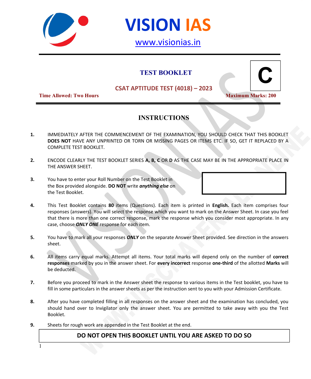 CSAT APTITUDE TEST (4018) – 2023