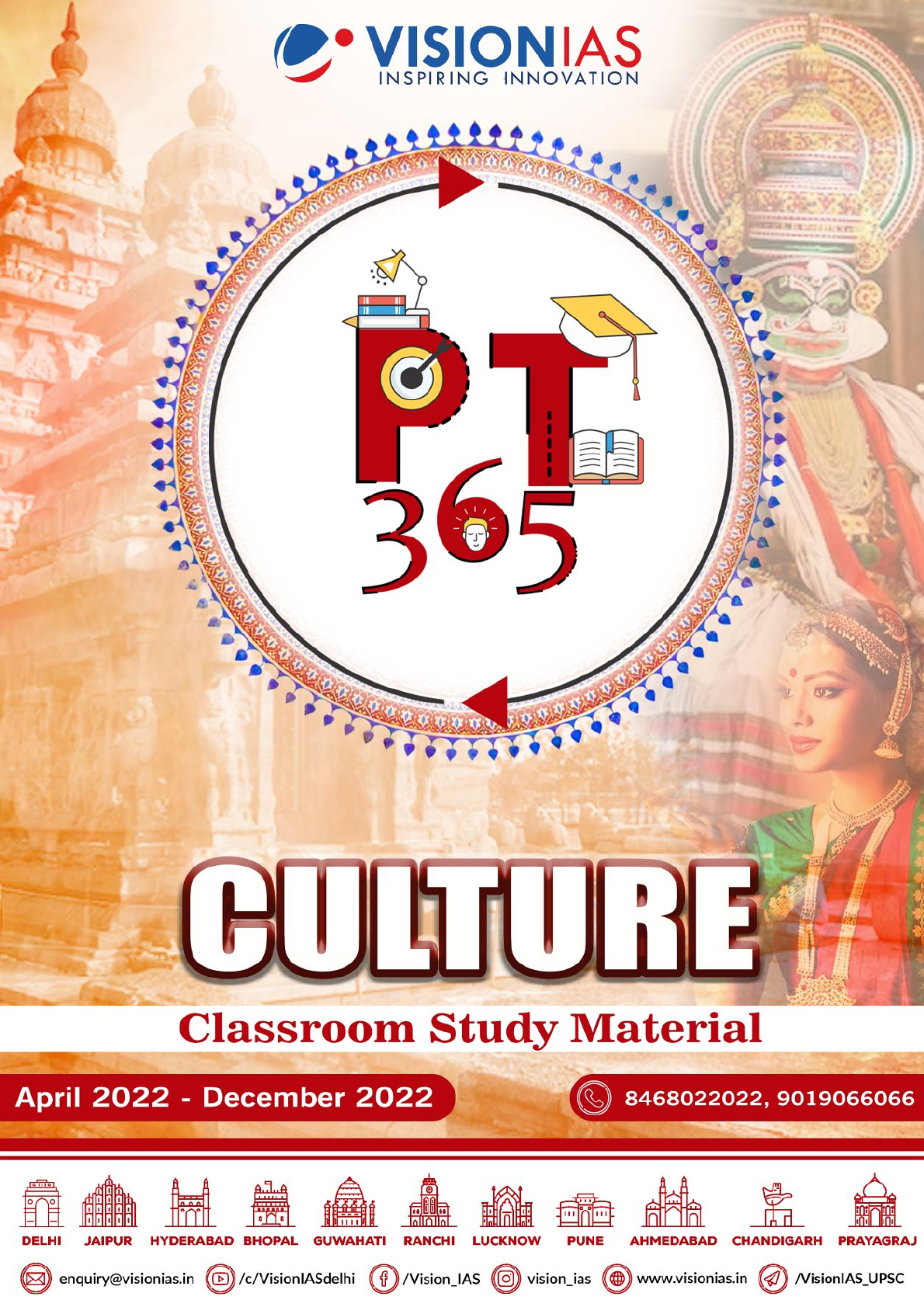 Download More eBooks and Test Series in Hindi & English from Our Telegram Channel https://t.me/upsc_success_time1 1 DELHI | JAIPUR | PUNE | HYDERABAD | AHMEDABAD | LUCKNOW | CHANDIGARH | GUWAHATI | RANCHI | ALLAHABAD | BHOPAL © Vision IAS CULTURE Table of Contents 1. SCULPTURE AND ARCHITECTURE ______ 4 1.1. Odisha Temple Architecture __________ 4 1.2. Hoysala Temples ___________________ 5 1.3. Chola Era Idols _____________________ 7 1.4. Qutb Shahi Architecture _____________ 9 1.5. Megalithic Sites ___________________ 12 1.6. Other Important News _____________ 13 2. PAINTINGS AND OTHER ART FORMS __ 15 2.1. Traditional Indian Textiles __________ 15 2.2. Toys of India _____________________ 15 2.3. Crafts in News ____________________ 16 2.4. Other Important News _____________ 17 3. IMPORTANT SITES IN NEWS _________ 19 3.1. Cylopean Wall ____________________ 19 3.2. Iron Age _________________________ 20 3.3. Rakhigarhi _______________________ 21 3.4. Mahakaleshwar Temple ____________ 22 3.5. UNESCO’s Tentative List of World Heritage Sites ________________________________ 24 3.6. Anang Tal Lake ___________________ 25 3.7. Mangarh Hillock __________________ 25 3.8. Projects under PRASHAD Scheme ____ 26 3.9. Other Important News _____________ 27 4. PERSONALITIES ___________________ 28 4.1. Adi Shankaracharya _______________ 28 4.2. Swami Ramanujacharya ____________ 29 4.3. Sant Tukaram ____________________ 30 4.4. Lachit Barphukan __________________ 31 4.5. Raja Ram Mohan Roy: Father of Indian Renaissance _________________________ 32 4.6. Sri Aurobindo _____________________ 33 4.7. Chhatrapati Shahu Maharaj _________ 34 4.8. Alluri Sitarama Raju ________________ 35 4.9. Other Important Personalities in News 36 5. BUDDHISM AND JAINISM ___________ 38 5.1. Archaeological remains in Bandhavgarh Forest Reserve _______________________ 40 5.2. Other Important News _____________ 41 6. MISCELLANEOUS __________________ 43 6.1. Naval Traditions in India ____________ 43 6.2. National Symbols of India ___________ 44 6.3. Amendments to Flag Code of India ___ 45 6.4. State Emblem of India ______________ 45 6.5. Numismatic History of India _________ 46 6.6. Panini Code ______________________ 48 6.7. Convention for Safeguarding of Intangible Cultural Heritage (ICH) _________________ 49 6.8. Swadesh Darshan Scheme __________ 50 6.9. Geographical Indication (GI) Tag______ 50 6.10. Other GI tag in News ______________ 52 6.11. Festivals ________________________ 53 6.11.1. Baliyatra _________________________ 53 6.11.2. New Year Map of India _____________ 54 6.11.3. Other Important Festivals ___________ 55 6.12. Prizes and Awards ________________ 56 6.13. Tribes in News ___________________ 58 6.14. Other Important News ____________ 59 Copyright © by Vision IAS All rights are reserved. No part of this document may be reproduced, stored in a retrieval system or transmitted in any form or by any means, electronic, mechanical, photocopying, recording or otherwise, without prior permission of Vision IAS. Download More eBooks and Test Series in Hindi & English from Our Telegram Channel https://t.me/upsc_success_time1 2 © Vision IAS DELHI | JAIPUR | PUNE | HYDERABAD | AHMEDABAD | LUCKNOW | CHANDIGARH | GUWAHATI | RANCHI | ALLAHABAD | BHOPAL Join Telegram- https://t.me/upsc_success_time1 Download more eBooks & Test Series in Hindi and English from our Telegram Channel- https://t.me/upsc_success_time1 Join Telegram Channel - Click Here https://t.me/upsc_success_time1 https://t.me/upsc_success_time1 https://t.me/upsc_success_time1 3 DELHI | JAIPUR | PUNE | HYDERABAD | AHMEDABAD | LUCKNOW | CHANDIGARH | GUWAHATI | RANCHI | ALLAHABAD | BHOPAL © Vision IAS 4 © Vision IAS DELHI | JAIPUR | PUNE | HYDERABAD | AHMEDABAD | LUCKNOW | CHANDIGARH | GUWAHATI | RANCHI | ALLAHABAD | BHOPAL 1. SCULPTURE AND ARCHITECTURE 1.1. ODISHA TEMPLE ARCHITECTURE Why in news? Temples of Odisha representing Kalinga Architecture were recently in news due to various incidents. More on news • Central government opposed Odisha government’s ordinance to bring Lingaraj temple and its associated temples under a special law. • Objections were raised against Odisha government’s beautification project around the Jagannath temple. 5 DELHI | JAIPUR | PUNE | HYDERABAD | AHMEDABAD | LUCKNOW | CHANDIGARH | GUWAHATI | RANCHI | ALLAHABAD | BHOPAL © Vision IAS Related News Asurgarh as Odisha’s oldest fortified settlement (ninth century BC) • Asurgarh ascertained to be the oldest among the major fortified settlements in the State. o Accelerator Mass Spectrometry radiocarbon technique, a technology that allows to distinguish different types of atoms based on differences in atomic weights (mass), was used. • Other early historic sites in Odisha include Sisupalgarh (near Bhubaneswar); Jaugarh, a fortified settlement on the Rushikulya valley (Ganjam); Khalkattapatna (Puri); port site of Manikpatna (Puri) etc. 1.2. HOYSALA TEMPLES Why in news? The Hoysala Temples of Chennakesava at Belur, Hoysaleswara at Halebid and Kesava at Somnathapura in Karnataka are India’s official nominations for the World Heritage List for the year 2022-2023. About Hoysala temples • The ‘Sacred Ensembles of the Hoysala’ have been on UNESCO’s Tentative List since 2014. • They are protected monuments of the Archaeological Survey of India (ASI). About World Heritage Site List • Place listed by UNESCO for its special cultural or physical significance. • Maintained by international 'World Heritage Programme', administered by UNESCO World Heritage Committee. • In 1994, World Heritage Committee launched the Global Strategy for a Representative, Balanced and Credible World Heritage List as per 1972 Convention concerning Protection of World Cultural and Natural Heritage. • There are three types of sites: cultural, natural, and mixed. o India has 40 world heritage sites: 32 Cultural, 7 Natural and 1 mixed. 6 © Vision IAS DELHI | JAIPUR | PUNE | HYDERABAD | AHMEDABAD | L