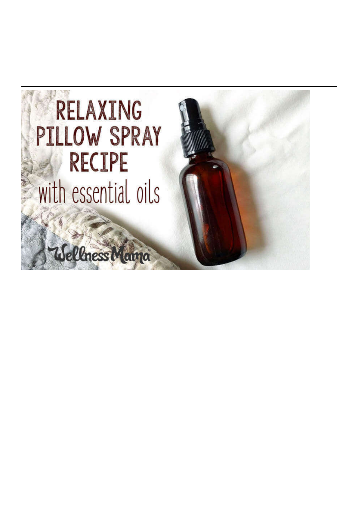 1/4 Receita de spray de travesseiro relaxante com óleos essenciais Com seis filhotes em casa, o sono pode ser difícil de encontrar às vezes. Felizmente, encontrei maneiras de melhorar naturalmente a qualidade do sono, incluindo abandonar as luzes noturnas e usar o óleo de magnésio antes de dormir. Este spray de travesseiro relaxante é outra maneira saudável (e de grande cheiro!) para promover uma boa noite de sono. Então, um cheiro simples faria a diferença no seu sono? - Boa pergunta! Spray de travesseiro para sua rotina de sono Como eu procurei por respostas sobre o sono ao longo dos anos ... como todos os pais, tenho certeza ... Eu aprendi muito sobre o quão essencial é o sono para a nossa saúde. Na verdade, não há como ser saudável sem um sono bom e suficiente. Acontece que estabelecer uma rotina de sono sólida com poucas pistas que é hora de relaxar e ficar com alguns olhos fechados não é apenas importante para bebês e crianças. Os adultos também precisam dessas rotinas, seja um banho de sal epsom, ou alguma auto-massagem, ou apenas lendo um bom livro. Da mesma forma, sentir o cheiro familiar e relaxante todos os momentos antes de bater no travesseiro pode enviar um sinal forte e reconfortante para nossos cérebros super-estimulados e superestimulados para se preparar para o sono. https://wellnessmama.com/health/kids-night-light/ https://wellnessmama.com/natural-home/magnesium-oil/ https://wellnessmama.com/health/improve-sleep-naturally/ https://wellnessmama.com/go/massage/ 2/4 óleos essenciais comprovados para dormir Parte da resposta é que esta receita de spray de travesseiro usa os poderes comprovados de indução do sono de alguns ótimos óleos essenciais. Tenho certeza que você vai reconhecer alguns dos jogadores aqui! Acalma o Ylang Ylang Pode ser um pouco difícil de pronunciar, mas o ylang ylang é um potente relaxante. Seu perfume único é frequentemente usado por perfumistas (e acontece de ser um ingrediente em destaque no popular Chanel No. 5 !). Ylang ylang tem sido usado para aliviar a ansiedade e como um sedativo para um sono mais repousante. Mesmo que tenha um cheiro feminino e floral, um estudo de 2016 mostrou que seus benefícios anti-ansiedade foram ainda mais pronunciados para os ratos machos (interessantes!). Bergamota que alivia o estresse O óleo essencial de bergamota, como outros óleos da família dos citros, tem um aroma edificante que ajuda a aliviar as tensões. Este óleo é versátil, pois pode ser usado para rejuvenescer o humor enquanto relaxa a mente. (Bergamot é altamente fototóxico ... mas isso é mais uma preocupação em uma loção do que em um spray de travesseiro noturno.) Lavanda relaxante A lavanda é um dos óleos essenciais mais populares para o seu aroma e suas propriedades de cuidados com a pele. Também é conhecido por sua capacidade de relaxar a mente e melhorar a qualidade do sono. Em um estudo, estudantes universitários privados de sono inalaram lavanda ou um placebo. Aqueles que usavam lavanda dormiam melhor e se sentiram mais revigorados ao acordar. Uma palavra sobre os transportadores Normalmente, ao fazer algo com óleos essenciais, um óleo transportador é usado para diluir com segurança os óleos. Mel, glicerina e até mesmo sabão de castelhano também ajudarão a dispersar os óleos essenciais. Uma vez que este spray é destinado a tecido, azeite ou mel não são realmente as melhores opções aqui. Este spray usa álcool para dispersar os óleos essenciais. A vodka também evapora rapidamente para evitar danificar ou manchar tecidos. Receita de spray de travesseiro relaxante Eu tenho usado este spray de travesseiro caseiro por várias semanas, e tenho notado que estou dormindo mais profundamente e me sinto mais descansado ao acordar. Ingredientes de pulverização de travesseiro https://wellnessmama.com/remedies/essential-oils-benefits/ https://www.amazon.com/CHANEL-Eau-Toilette-Spray-Ounce/dp/B004EIXSHG/ref=as_li_ss_tl?tag=wellnessmama-20 3/4 4 gotas de ylang óleo essencial de ylang 12 gotas de óleo essencial de lavanda 8 gotas bergamot óleo essencial 1/2 colher de chá de vodka Água destilada Garrafa de spray de vidro de 2 onças Instruções de Spray de Travesseiro 1. Coloque a vodka e os óleos essenciais no frasco de spray de vidro e redenheça a garrafa para combinar. 2. Encha a garrafa com água até quase cheio, deixando espaço para a tampa. Cap o frasco de spray e agite bem para combinar. 3. Para usar o spray, névoa levemente um travesseiro alguns minutos antes de dormir. Certifique-se de agitar bem a garrafa antes de cada uso. Quer outra maneira de refrescar os lençóis? Experimente este spray de linho caseiro para roupa de cama e toalhas sem purificadores químicos. Você usa algum aroma ou óleos essenciais em sua rotina de sono? O que te ajudou mais a dormir melhor? Eu adoraria saber! https://www.pjatr.com/t/TUJGR0ZGSEJGRktJTkpCRkxNSUlI?url=https%3A%2F%2Fwww.planttherapy.com%2Fylang-ylang-complete-organic-essential-oil https://www.pntrac.com/t/TUJGR0ZGSEJGRktJTkpCRkxNSUlI?url=https%3A%2F%2Fwww.planttherapy.com%2Forganic-lavender-essential-oil%3Fv%3D2949 https://www.gopjn.com/t/TUJGR0ZGSEJGRktJTkpCRkxNSUlI?url=https%3A%2F%2Fwww.planttherapy.com%2Forganic-bergamot-essential-oil%3Fv%3D1724 https://www.amazon.com/Amber-Glass-Spray-Bottles-Essential/dp/B07VMNTWFR?dchild=1&keywords=2+ounce+spray+bottle&qid=1634928748&sr=8-7&linkCode=ll1&tag=wellnessmama-20&linkId=88b2dc818bd6f17774002bf7028fa8c9&language=en_US&ref_=as_li_ss_tl https://wellnessmama.com/natural-home/linen-spray/ 4/4