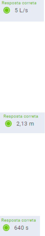 ATIVIDADE 03 – HIDRÁULICA APLICADA Devido à razões de ordens práticas, num determinado canal foi instalado um vertedor de forma circular. O diâmetro do vertedor é de 20 cm. Quando a água represada subiu no nível do canal e começou a verter, uma escala ao lado mesmo acusou a marca de 8 cm acima do ponto mais baixo da circunferência. Neste sentido, assinale a alternativa que determine qual a vazão que está ocorrendo: Considere que num determinado canal será construído com água trafegando a uma velocidade de 7 m/s. Este fluxo passará por um obstáculo que irá provocar um ressalto hidráulico. Sabe-se que a profundidade da água à montante do obstáculo será de 0,58 m/s. Neste sentido, assinale a alternativa que indique a que altura se elevará a água, após o obstáculo: No projeto de determinado reservatório, de formato cilíndrico, deseja-se saber seu tempo de esvaziamento. Para tanto são conhecidas a altura do reservatório e o diâmetro do orifício, de 0,15 m. Considere um coeficiente de descarga corrigido de 0,62. O reservatório possui altura 5 m e área da base de 7,065 m2. Neste sentido, assinale a alternativa que calcule o tempo para esvaziar: Um determinado reservatório cilíndrico, com diâmetro de 2 m e altura 4 m, será construído com o objetivo de fornecer água para uma empresa. Admite-se que o mesmo terá sempre seu nível mantido no topo e de maneira constante, através da concessionária local. Neste sentido, assinale a alternativa que indique qual a vazão que o mesmo fornecerá para o interior da indústria se esse dispuser de um orifício circular em sua parte inferior, junto ao fundo, de 10 cm de diâmetro: Devido a necessidades construtivas que indicavam este formato, será escavado um canal trapezoidal. Os dados geométricos constam da figura abaixo. Estima-se que a altura de água que será atingida quando o mesmo entrar em funcionamento , será de 2 m. O canal será no formato regular, com talude de 1:4. Ao ser construído um reservatório, um orifício de 0,317 m de diâmetro foi colocado distante 0,10 m do fundo, para descarga do reservatório. Este detalhe foi motivado pela necessidade de se ter sempre uma camada de água no fundo do mesmo. Da maneira como está, existe 3,90 m de água acima do centro do orifício. Neste sentido, assinale a alternativa que indique qual a vazão que o mesmo proporcionará: Um reservatório possui seu nível d'água 3 m acima do centro de um orifício circular de 0,5 m de diâmetro. O orifício, por razões estratégicas, foi construído 10 cm acima do fundo do reservatório. Trata-se de uma estrutura com a finalidade de fornecer água por gravidade, para um bairro situado mais abaixo na topografia da cidade. Assinale a alternativa que indique a vazão que será disponibilizada: Para medir-se a vazão de determinado curso d'água foi instalado no mesmo um vertedor retangular, de 3 m de largura e 1,5 m de altura, sem contrações laterais. Notou-se que, após a instalação do mesmo, a água elevou-se 1,75 m em relação ao leito, ficando uma altura de 0,25 m acima da soleira do vertedor (medida à 3 m à montante do vertedor). Neste sentido, assinale a alternativa que indique a vazão: Um canal retangular de concreto com alisamento deverá ser construído para condução de água. A largura do fundo está prevista para medir 3 m e declividade longitudinal 0,0005 m/m. Deseja-se que este canal tenha máxima eficiência. Você, como engenheiro, é chamado para dar seu parecer sobre alguns detalhes técnicos. Neste sentido, assinale a alternativa que indique a vazão que irá fluir pelo canal: Um reservatório deverá ter a forma de um cilindro regular e possui área da base 9 m2. Você precisa dimensionar sua altura de maneira que, através de um orifício de 300 mm de diâmetro, na parte de baixa de sua parede, consiga esvaziá-lo em 3 minutos. Considere o coeficiente de descarga, já corrigido, como 0,63. Assinale a alternativa correta: