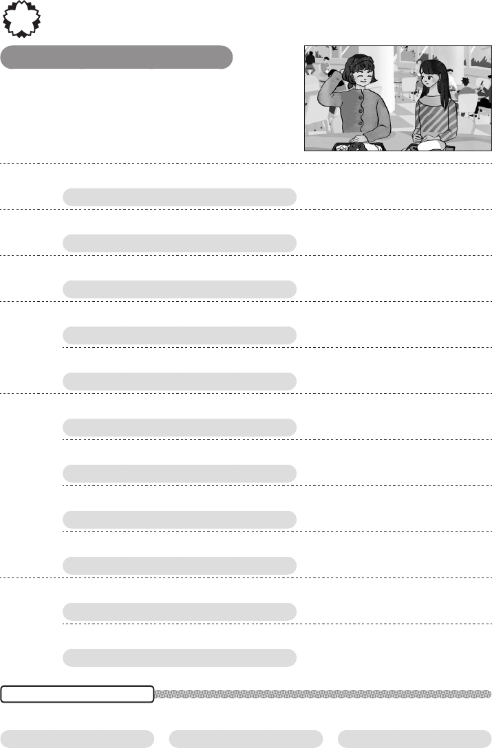 ©NHK WORLD-JAPAN24 For more, visit NHK WORLD-JAPAN 7 ゆっくり話 は な してください あやか Ayaka : 隣 となり 、いい? Tonari, i⎤i? Posso me sentar ao seu lado? タム Tam : え? はい。 E? Ha⎤i. Sim, claro. あやか Ayaka : ありがとう。留 りゅう 学 がく 生 せい なの? Ari⎤gatoo. Ryuugaku⎤see na no? Obrigada. Você é estudante estrangeira? タム Tam : すみません。よくわかりません。 Sumimase⎤n. Yo⎤ku wakarimase⎤n. Desculpe, não entendi muito bem. ゆっくり話 はな してください。 Yukku⎤ri hana⎤shite kudasa⎤i. Fale devagar, por favor. あやか Ayaka : あ、ごめん、ごめん。 A, gomen, gomen. Ah, perdão. あなたはりゅうがくせいですか。 Ana⎤ta wa ryuugaku⎤see de⎤su ka. Você é estudante estrangeira? わたしはあやかです。 Watashi wa A⎤-YA-KA de⎤su. Meu nome é Ayaka. よろしくね。 Yoroshiku ne. Muito prazer. タム Tam : はい。私 わたし はタムです。 Ha⎤i. Watashi wa Ta⎤mu de⎤su. Sim. Meu nome é Tam. よろしくお願 ねが いします。 Yoroshiku onegai-shima⎤su. O prazer é meu. Glossário ゆっくり devagar yukku⎤ri 話 は な す falar hana⎤su 私 わたし eu watashi Diálogo de hoje Yukkuri hanashite kudasai Fale devagar, por favor. Lição ©NHK WORLD-JAPAN 25 ゆっくり話 は な してください。 Yukku⎤ri hana⎤shite kudasa⎤i. Fale devagar, por favor. Para pedir algo use “[forma TE de um verbo] + kudasai”. A forma TE é um verbo terminando em “te” ou “de”. “Hanashite” é a forma TE de “hanasu” ou “falar”. Há três categorias de verbos. A forma TE varia conforme a categoria. (veja páginas 150-151) Vamos Usar! すみません。もう一 いち 度 ど 言 い ってください。 Sumimase⎤n. Moo ichi-do itte kudasa⎤i. あ、はい。 A, ha⎤i. Perdão. Pode repetir. Sim, claro. Vamos Tentar! すみません。~てください。 Sumimase⎤n. ~te kudasa⎤i. Sinto muito. Pode ···. ① 英 え い 語 ご で言 い う(→言 い って) Eego de iu (→itte) falar em inglês ② ローマ字 じ で書 か く(→書 か いて) Roomaji de ka⎤ku (→ka⎤ite) escrever em alfabeto Frase Extra すみません。よくわかりません。 Sumimase⎤n. Yo⎤ku wakarimase⎤n. Desculpe, não entendi muito bem. Diga isso quando não entender. O “yoku” antes de “wakarimasen” ou “não entendo”, é polidez. Can-do! Como pedir para alguém falar mais devagar Sentença de Hoje https://www.nhk.or.jp/lesson/pt/ ©NHK WORLD-JAPAN26 For more, visit NHK WORLD-JAPAN M. Nakamura/S. Ebisu ©Ken Mochizuki Kaito é o seu guia gastronômico! Respostas ① すみません。英 えい 語 ご で言 い ってください。 Sumimase⎤n. Eego de itte kudasa⎤i. ② すみません。ローマ字 じ で書 か いてください。 Sumimase⎤n. Roomaji de ka⎤ite kudasa⎤i. Alguns pratos populares no Japão são nigirizushi, fatias de peixe cru sobre arroz, e sukiyaki, temperado com shoyu e açúcar. O arroz é básico no Japão, geralmente servido com carne e legumes. Sopa de missô ou outra sopa é geralmente parte da refeição. Pratos ocidentais também são comuns. Nigirizushi Uma refeição comum Sukiyaki Culinária Japonesa