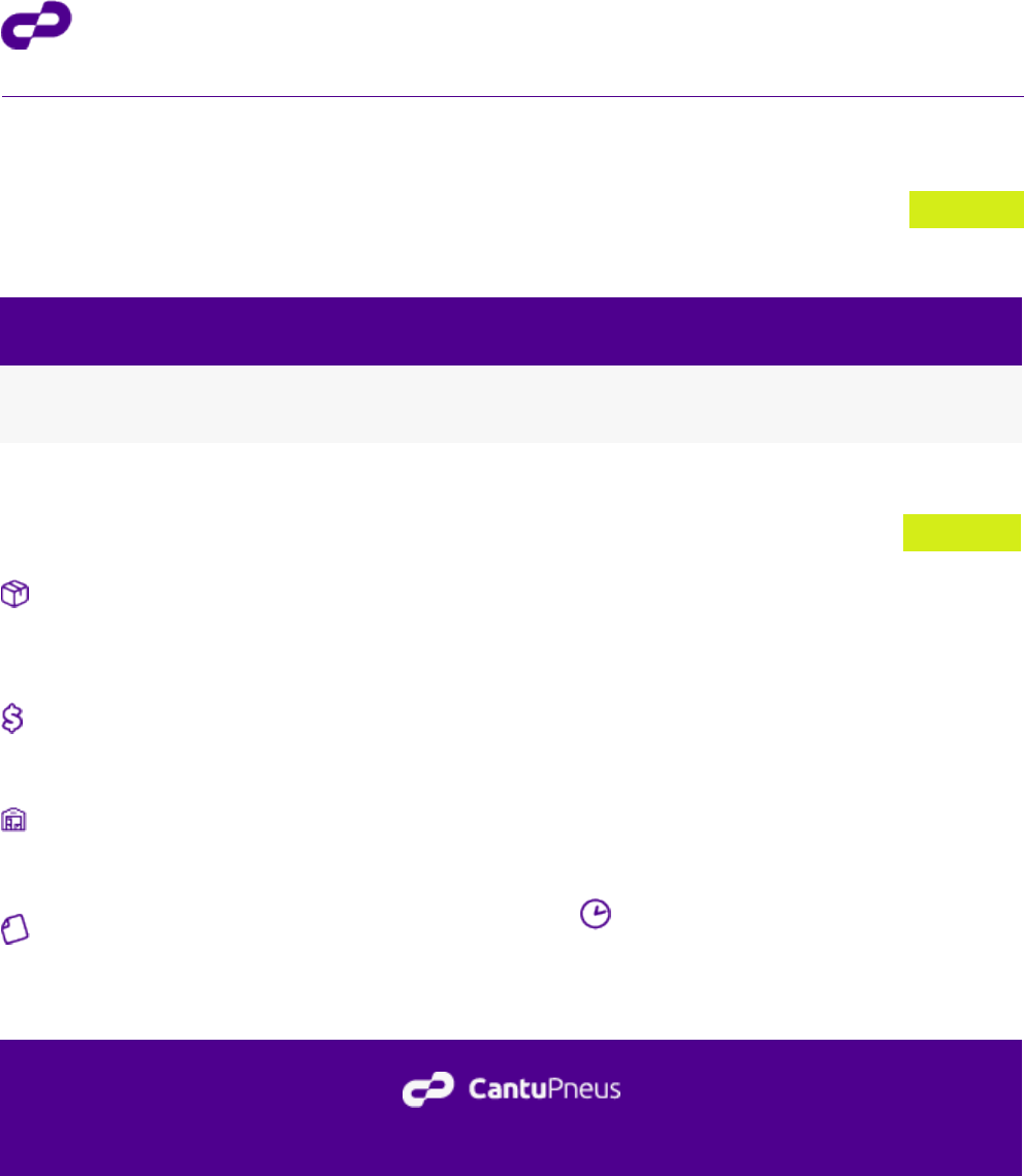 PROPOSTA COMERCIAL 46.258.675 ANGELA DA SILVARAZÃO SOCIAL: 46.258.675/0001-36CNPJ/CPF: R INSPETOR FRANCISCO VECHANI, 703 - ESPINHEIROS - 88317-190 - ITAJAI/SC ENDERECO: ANGELA DA SILVA NOME DO CONTATO: +55 (47) 99602-0312 TELEFONE: ANGELADASILVA2203@GMAIL.COM EMAIL: Nº; DA PROPOSTA 2141018.24 Descrição Quantidade Preço unitário Preço Total PNEU 295/80R22.5 152/148M EXTRAMAX S SPEEDMAX PRIME 18 LONAS - RODOVIÁRIO/DIRECIONAL 4,00 1.767,00 7.068,00 Produto(s) sujeito(s) à disponibilidade de estoque Valor do(s) Produto(s) R$ 7.068,00 Valor Total R$ 7.068,00 Frete Modalidade: CIF Transportadora: CP COMERCIAL S/A Pagamento Condição: PAGAMENTO DIA 10 EM 6X - Inicio 10/06 Filial de Faturamento 10.158.356/0001-01 - CPX SC Ordem de compra Condição: Validade Data da proposta: 27/03/2024 Válido até: 05/04/2024 www.cantupneus.com.br