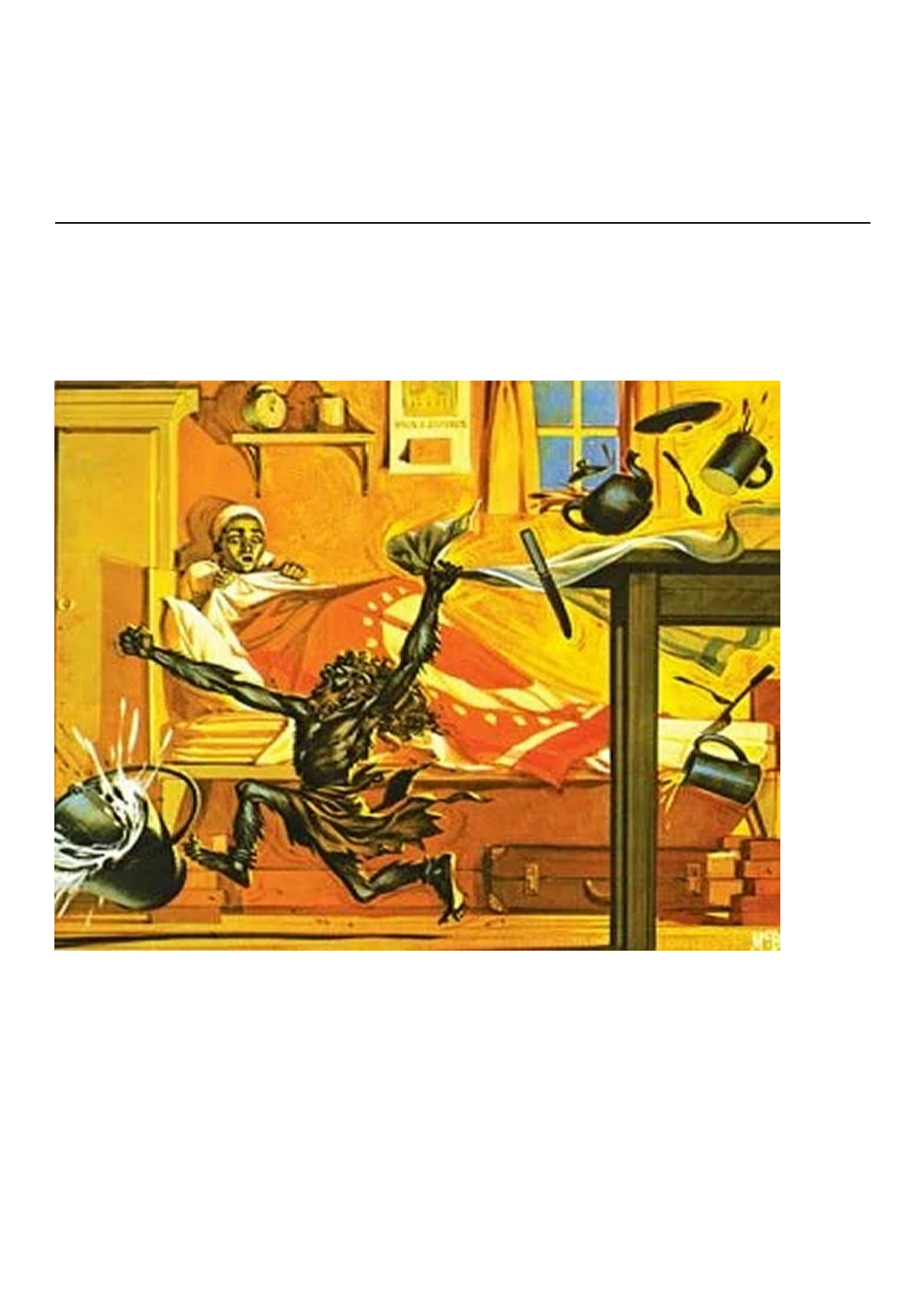 1/4 Tokoloshe: Criatura demoníaca que alimenta a energia espiritual de Suas vítimas África contém muitas nacionalidades e uma grande variedade de lendas. Cada nação teve muitas crenças transmitidas de uma geração para a outra no passado distante. Um personagem fascinante na mitologia zulu é Tokoloshe ou Tikdoshe, um espírito malicioso e maligno que se alimenta da energia espiritual de suas vítimas. Levou tempo, mas, eventualmente, percebeu-se que qualquer um que estivesse dormindo em uma posição elevada escapou da maldição mortal desse espírito maligno. Crédito da imagem: Angus McBride para Descoberta, Volume 16 Edição no 11 Se necessário, esses “pequenos espíritos” ou “pequenos demônios” podem se tornar invisíveis através de uma pedra mágica que carregam dentro de sua boca ou engolindo uma rocha ou água potável. Eles também podem se disfarçar como um pássaro ou um pequeno urso, que não é transmitido em todas as histórias. Há muitos mitos sobre este desagradável morador do rio, e as pessoas Zulu o descrevem de maneiras diferentes, dando-nos muitas versões das histórias de Tokoloshe. 2/4 Geralmente, o Tokoloshe é uma criatura anão aterrorizante de apenas 20-30 cm de altura, com orelhas enormes, uma cabeça de homem, olhos vermelhos, garras longas e afiadas e um corpo coberto de pêlos. O Tokoloshe pode representar uma mistura de um gremlin, zumbi e poltergeist. A tradição diz que é uma obra de um feiticeiro cuja intenção é sempre má, e sua prática é baseada na magia malévola. Neste caso, o feiticeiro usou cadáveres humanos para buscar vingança contra aqueles que uma vez o atacaram. Normalmente, o Tokoloshe só pode ser visto pelas crianças, para quem mostra bondade e muitas vezes constrói uma amizade. A criatura não confia nos adultos e gosta de combatê-los. Perder contra Tokoloshe pode significar a morte para um humano, mas a vitória pode dar a um homem grandes poderes mágicos. Uma versão diz que este ser pode ser malévolo e perigoso também para as crianças, assustando-os, muitas vezes deixando longos arranhões em seus corpos. Como dormir à noite sem perturbar? A criatura é muito problemática porque geralmente ataca à noite mordendo os dedos da pessoa que já dorme ou apenas tentando dormir uma noite de sono repousante. Conscientes do pequeno tamanho da criatura, as pessoas Zulu costumavam dormir com suas camas levantadas do chão. Uma maneira de protegê-lo deste "pequeno diabo" é colocar uma cama em tijolos cobertos com, por exemplo... jornais. Levou tempo, mas, eventualmente, as pessoas perceberam que qualquer um que estivesse dormindo em uma posição elevada poderia escapar da maldição mortal deste espírito maligno. Tokoloshe alimenta a energia espiritual de vítima Malditos, o Tokoloshe está zombando de alguém ou algo cruelmente. Como várias outras criaturas malignas mitológicas, o Tokoloshe não ingere o sangue de suas vítimas, mas se alimenta da energia espiritual de cada uma delas. Esse tipo de comportamento sugere que a criatura é mais como um monstro espiritual. Entre as tribos da África, especialmente na África do Sul, nas regiões do Zimbábue, Botsuana e arredores, o Tokoloshe tem uma natureza sinistra. O Tokoloshe moderno é mais como uma criatura trapaceiro capaz de assustar, brincar ao mal ou mostrar um comportamento muito tolo de outra maneira. Na mitologia africana, há muitos trapaceiros; um é Eshu nas crenças do povo iorubá da atual Nigéria. Ele é o mágico e encrenqueiro conhecido por seus vários disfarces e travessuras desagradáveis; outro é Anansi, amplamente conhecido na África Ocidental. https://www.ancientpages.com/2015/09/09/gremlins-highly-mechanical-creatures-in-mythology/ https://www.ancientpages.com/category/myths-legends/african-mythology/ https://www.ancientpages.com/2019/04/04/eshu-the-trickster-mischievous-mediator-between-heaven-and-earth-in-beliefs-of-yoruba-people/ https://www.ancientpages.com/2016/07/20/anansi-the-spider-trickster-and-spirit-of-knowledge-in-african-mythology/ 3/4 Homem que foi enfeitiçado por Tikoloshe e se tornou um assassino Um dia, uma mulher veio para a costa e viu Tikoloshe flutuando no rio. A mulher pegou um pouco de água e foi para casa, e Tikoloshe a seguiu e até ajudou a trazer um feixe de lenha. O marido da mulher voltou para casa e encontrou sua esposa nos braços de Tikoloshe. Ele tentou atacar a criatura, mas de repente se viu no chão. Com raiva, ele correu para sua esposa e a matou. Enquanto estava de pé e olhando para o corpo sem vida de sua esposa, o pobre homem sentiu remorso por suas ações. A criatura ainda estava lá e de repente pulou e pousou diretamente nos ombros do homem. Esse súbito contato estreito fez o homem inteiramente à misericórdia do monstro, e agora, o homem fez tudo o que ordenou. Daquele dia em diante, os moradores do distrito começaram uma vida difícil, testemunhando uma série de assassinatos brutais cometidos na área. A maioria das vítimas eram mulheres, mas também vários homens ricos sofreram. A razão para esses assassinatos misteriosos e inexplicáveis era desconhecida, mas muitos acreditavam que seu dinheiro provavelmente seduziu o assassino. Embora as atrocidades tenham sido cometidas em plena luz do dia, ninguém viu o assassino ou qualquer outra pessoa suspeita. Isso continuou por muito tempo. Um dia, um jovem que se aproximava de sua casa notou uma sombra escorregando para fora da porta. Ele suspeitava que algo estava errado, mas não mostrou isso. No dia seguinte, ele disse a sua esposa para embalar suas coisas, dizendo que ele tinha decidido ir para uma terra distante para ganhar dinheiro e não iria voltar em breve. Ele se despediu de sua esposa e foi embora. No meio da noite, ele subiu até a cabana e abriu a porta suavemente, segurando uma faca pronta em sua mão. Como ele esperava, sua esposa não estava sozinha, mas nos braços de Tikoloshe. O jovem esfaqueou o monstro