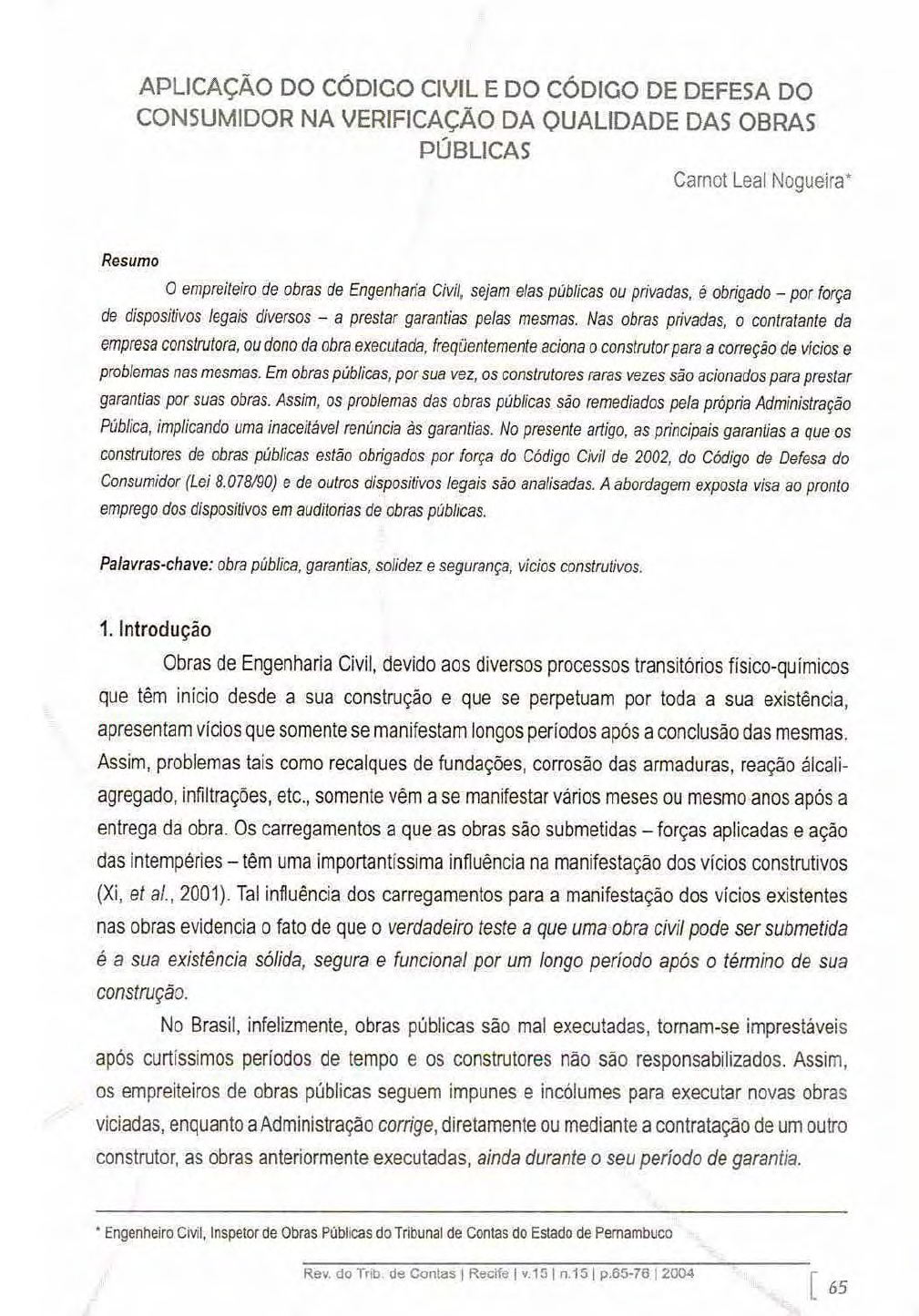 Rev do Tno da Contas 1 Recife I v.15l n.15 I p.65-76l 20().; r 65