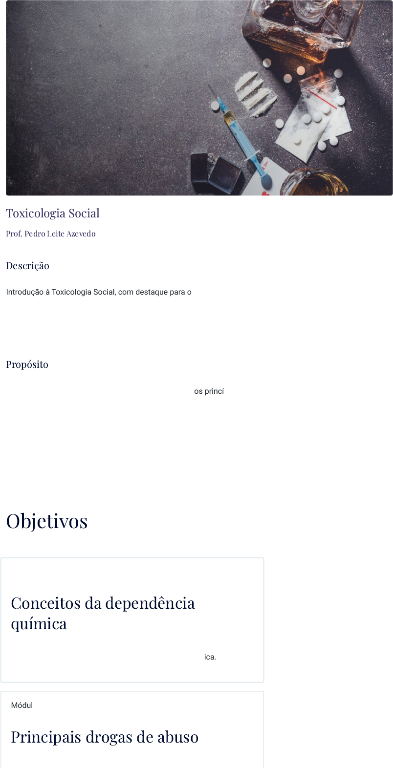 05/03/24, 20:49 Toxicologia Social https://stecine.azureedge.net/repositorio/00212sa/02946/index.html# 1/85 Toxicologia Social Prof. Pedro Leite Azevedo Descrição Introdução à Toxicologia Social, com destaque para o processo de desenvolvimento de tolerância, dependência e síndrome de abstinência, sistema de recompensa, potencial de reforço, drogas de abuso psicoestimulantes e depressoras do sistema nervoso central. Propósito É essencial que todo profissional de saúde reconheça os princípios básicos da toxicologia social e dependência química, uma vez que estão frequentemente associados ao uso das drogas de abuso. A dependência química de tabaco e álcool, por exemplo, pode estar associada a inúmeros efeitos nocivos, e assim, o maior entendimento sobre as suas principais propriedades pode garantir um cuidado mais seguro e eficaz para cada indivíduo. Objetivos Módulo 1 Conceitos da dependência química Descrever os principais conceitos da dependência química. Módulo 2 Principais drogas de abuso 05/03/24, 20:49 Toxicologia Social https://stecine.azureedge.net/repositorio/00212sa/02946/index.html# 2/85 Reconhecer as propriedades toxicológicas das principais drogas de abuso. Módulo 3 Opioides e suas propriedades toxicológicas Identificar as principais propriedades toxicológicas dos opioides. Módulo 4 Tabaco e suas propriedades toxicológicas Identificar as principais propriedades toxicológicas do tabaco. 05/03/24, 20:49 Toxicologia Social https://stecine.azureedge.net/repositorio/00212sa/02946/index.html# 3/85 1 - Conceitos da dependência química Ao �nal deste módulo, você será capaz de descrever os principais conceitos da dependência química. A área da toxicologia que estuda os efeitos nocivos decorrentes do uso não médico e não terapêutico de fármacos ou drogas, causando danos não somente ao indivíduo, mas também à sociedade, é denominada Toxicologia Social. Além da possibilidade do desenvolvimento da dependência, o uso dessas substâncias pode acarretar graves problemas de saúde. Muitos fármacos descritos neste material são comumente prescritos na prática clínica, no entanto, o termo de uso não médico faz referência àquele fármaco utilizado de maneira ou em período diferente da orientada na prescrição, ou para um indivíduo cujo fármaco não havia sido prescrito inicialmente. No primeiro módulo, revisaremos vários conceitos relacionados à dependência química, bem como discutiremos os mecanismos moleculares da dependência, a síndrome de abstinência, o sistema de recompensa, potencial de reforço de uma substância e o fenômeno de tolerância. No segundo módulo, abordaremos os aspectos toxicológicos das principais drogas de abuso que causam dependência. Nos terceiro e quarto módulos, analisaremos as principais características dos opioides e do tabaco, respectivamente, sob o panorama da Toxicologia Social. De cada droga serão abordados, de forma resumida, o histórico e a epidemiologia do uso no Brasil e no mundo, a sua toxicocinética, a toxicodinâmica, os efeitos tóxicos agudos e crônicos, a síndrome de abstinência, bem como o tratamento da dependência, quando disponível. Introdução 05/03/24, 20:49 Toxicologia Social https://stecine.azureedge.net/repositorio/00212sa/02946/index.html# 4/85 Conceitos de dependência, síndrome de abstinência e tipos de tolerância A dependência química está entre os problemas mais sérios a serem enfrentados pela sociedade atual. Antes de iniciarmos a discussão sobre os aspectos toxicológicos relacionados à dependência química, precisamos relembrar alguns conceitos básicos, como, por exemplo, a diferença entre droga e fármaco: Fármaco Por definição, fármaco é uma substância de estrutura química definida, com propriedade endógena farmacológica. Droga Atualmente, refere-se, em geral, geralmente às substâncias de uso abusivo ou produtos capazes de causar dependência. Curiosidade O termo droga já foi utilizado para denominar toda matéria-prima de origem vegetal, mineral ou animal que contém um ou mais fármacos. 05/03/24, 20:49 Toxicologia Social https://stecine.azureedge.net/repositorio/00212sa/02946/index.html# 5/85 Em relação à palavra dependência, se você buscar em um dicionário ou em um site seu significado, encontrará definições um pouco diferentes umas das outras. Mas todas levarão a um mesmo entendimento: um dependente é alguém que não consegue se desvincular de um hábito. Podemos entender a dependência como uma subordinação ou sujeição de um indivíduo a uma outra pessoa, uma situação ou um hábito. Atualmente, no âmbito das ciências da saúde, a dependência tem sido definida como uma síndrome comportamental, caracterizada pela perda de controle, ou compulsão, sobre o consumo de uma droga, mesmo com intensos prejuízos individuais e sociais. Popularmente é denominada como “vício”. Em muitas situações, o dependente perde a capacidade voluntária de controlar o consumo, e sua prioridade se resume a obter e usar a droga. A seguir, citaremos algumas consequências que um quadro de dependência pode gerar. É característico o isolamento da família, de amigos, do ambiente de trabalho, além da perda do medo de contrair doenças infectocontagiosas. Perde-se também o medo de desenvolver outras doenças pelo uso da droga. Pode ter início alguns comportamentos criminosos para financiar o hábito. 05/03/24, 20:49 Toxicologia Social https://stecine.azureedge.net/repositorio/00212sa/02946/index.html# 6/85 Quando o acesso à droga é negado, há a ocorrência de um estado emocional negativo, por exemplo, disforia e irritabilidade, e, como consequência, a droga é consumida de forma contínua para evitar tais sintomas. Disforia Estado caracterizado por ansiedade, depressão e inquietude. A dependência está associada a alterações em sistemas neuronais específicos, que serão abordadas neste módulo, e é con