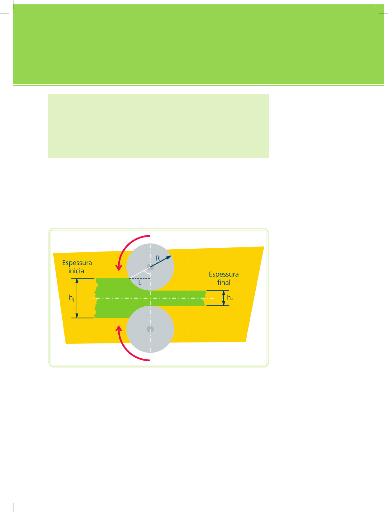 e-Tec Brasil Aula 3 – Operações de conformação mecânica por deformação plástica Objetivos Compreender os principais parâmetros operacionais considerados nos cálculos dos esforços de conformação mecânica por deforma- ção plástica. 3.1 No processo de laminação A laminação é um processo de conformação que consiste na passagem de um corpo sólido (peça) entre dois cilindros (ferramentas) que giram à mesma velocidade periférica, mas em sentidos contrários, conforme mostra a Figura 3.1. Figura 3.1: Ilustração do processo de laminação Fonte: CTISM, adaptado de Filho, 1991 e-Tec BrasilAula 3 - Operações de conformação mecânica por deformação plástica 33 3.1.1 Condições de arraste da peça pelos cilindros Onde: μ é o coeficiente de atrito entre o cilindro de laminação (Figura 3.1) e a peça α é o ângulo de contato A redução de laminação é definida como: Onde: hi e hf são, respectivamente, as espessuras iniciais e finais do corpo R é o raio de curvatura do cilindro de laminação 3.1.2 Condição para redução máxima 3.1.3 Comprimento do arco de contato (L) 3.1.4 Cálculo da carga na laminação (P) 3.1.4.1 Laminação de chapas a frio Onde: A = L × w A é a área de contato L é o comprimento (arco de contato na direção de laminação) w é a largura da chapa (direção do arco de contato na direção transversal) σ0 é a tensão média de escoamento do material laminado Conformação Mecânicae-Tec Brasil 34 A equação 3.6 não leva o efeito do atrito para o cálculo da carga de lamina- ção. Orowan (apud HELMAN; CETLIN, 1983, p. 136) sugeriu uma expressão que contempla o efeito do atrito, aumentando a carga de laminação em 20%, conforme mostra a equação 3.7. A equação 3.7 pode ser escrita da seguinte forma: Onde: P/w é a carga por unidade de largura Uma expressão para a carga de laminação de elevada precisão foi desenvol- vida em 1927 por Ekelund (apud HELMAN; CETLIN, 1983, p. 136; FILHO et al, 1991, p. 30), a qual leva em consideração o raio do cilindro deformado R’ proveniente das deformações elásticas que ocorrem no cilindro de lamina- ção. Para maiores detalhes, consultar o autor referido. 3.1.4.2 Laminação de chapas a quente a) Equação de Sims (HELMAN; CETLIN, 1983, p. 157) Onde: QS pode ser obtido através dos valores descritos no gráfico apresen- tado pela Figura 3.2. No gráfico em questão, o valor de “e” especifi- cado nos eixos das abscissas se refere à deformação convencional na laminação (εC), dada pela seguinte expressão: b) Equação de Ekelund (HELMAN; CETLIN, 1983, p. 157) e-Tec BrasilAula 3 - Operações de conformação mecânica por deformação plástica 35 Onde: Onde: o coeficiente de atrito μ varia de acordo com a temperatura de lami- nação, conforme a Equação 3.13 L é o comprimento do arco de contato definido pela Equação 3.5 Onde: T é a temperatura de laminação em ºC Figura 3.2: Ábaco para cálculo de QS Fonte: CTISM, adaptado de Helman; Cetlin, 1983, p. 158 c) Equação de Orean-Pascoe (HELMAN; CETLIN, 1983, p. 158) Conformação Mecânicae-Tec Brasil 36 Onde: 3.1.5 Cálculo do torque na laminação (M) Onde: λ é um fator que leva em consideração o efeito da deformação elás- tica do cilindro de laminação, apresentando os seguintes valores: 0,5 e 0,45 para laminação a quente e a frio, respectivamente 3.1.6 Cálculo da potência na laminação (N) A potência consumida por cada cilindro, girando a “n” revoluções por minu- tos, é dada por: Onde: M é medido em kg.m n é medido em rpm Para obter N em CV, a Equação 3.17 se transforma em: A potência total necessária pelos cilindros é obtida multiplicando a Equação 3.18 por 2 (dois). 3.1.7 Especificação do cilindro de laminação Os cilindros com superfícies cilíndricas (geratriz reta), Figura 3.1, são utili- zados para laminação de placas e chapas. Por outro lado, os cilindros que apresentam ranhuras ou passagens (aberturas formadas na superfície), destinam-se à laminação de perfis e barras, conforme mostra a Figura 3.3. e-Tec BrasilAula 3 - Operações de conformação mecânica por deformação plástica 37 A literatura propõe as seguintes recomendações para um projeto eficiente de um cilindro de laminação: a) Quanto menor for o número de passes, menor será o custo de fabricação do cilindro. b) Temperatura de trabalho maior permite uma maior intensidade de redu- ção com menor desgaste dos cilindros. c) Um diâmetro maior dos cilindros permite maior intensidade de redução sem fratura de cilindro e maior facilidade de entrada da peça com uma área de contato maior. Exige, contudo, maior potência motora, provoca maior espalhamento e reduz a deformação na direção da laminação. Os cilindros de laminação de blocos e placas têm como principal requisito a resistência mecânica, pois são submetidos na laminação de grandes massas com elevadas reduções, a pressões elevadas e choques intensos que se asso- ciam à solicitação térmica transmitida à superfície. Essa solicitação térmica pode provocar a formação de fissuras superficiais que têm a possibilidade de se expandirem com os choques mecânicos e provocarem a fratura dos cilindros. Para essas solicitações, os cilindros são comumente constituídos de aço-liga (por exemplo: 0,85% C, 1% Mn, 1% Cr, 0,25% Mo) e fabricados por fundição, com tratamentos térmicos posteriores de recozimento, têm- pera e revenido. Figura 3.3: Arranjo duo de cilindros com passagens para a laminação a quente de barras Fonte: CTISM, adaptado de Cetlin; Helman, 1983 Conformação Mecânicae-Tec Brasil 38 3.1.8 Classificação dos produtos laminados A classificação dos produtos laminados é realizada considerando suas formas e dimensões, de acordo com normas técnicas tradicionalmente estabeleci- das. Essas normas apresentam diferenças nas indicações entre si e quando se trata de produtos siderúrgicos ou d