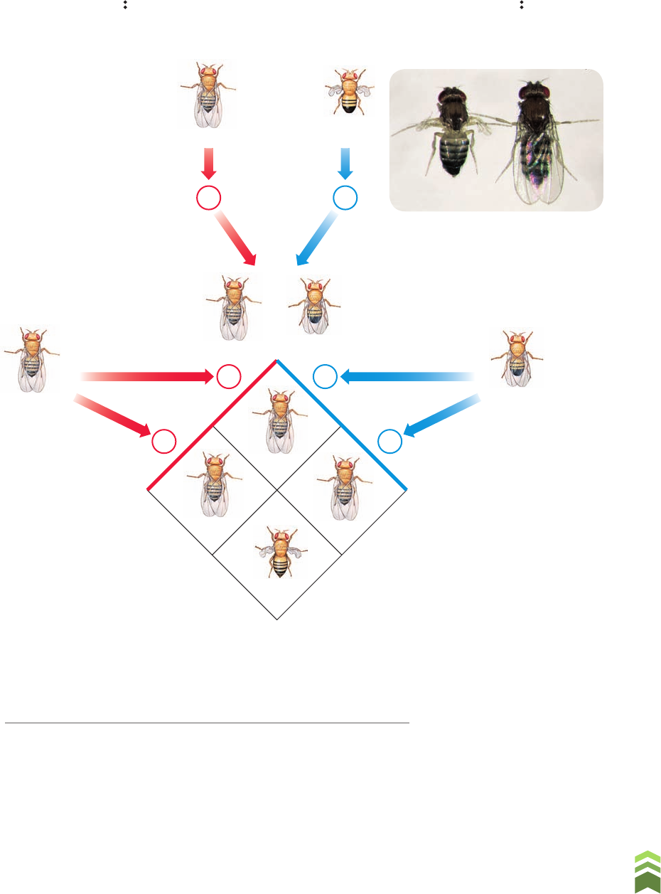 GERAÇÃO P GAMETAS GERAÇÃO F1 GERAÇÃO F2 V v V v VV V vv Vv VV Macho F1 Vv Fêmea F1 Vv VvVv vv X v GAMETAS GAMETAS 1 __ 4 VV : 2 __ 4 Vv : 1 __ 4 vv 3 l on ga : 1 ve sti gia l R ep ro d uç ão p ro ib id a. A rt .1 84 d o C ód ig o P en al e L ei 9 .6 10 d e 19 d e fe ve re iro d e 19 98 . 43 C a p ít u lo 2 • Le i d a s e g re g a çã o g e n é ti caFigura 2.9 Representação do cruzamento entre drosófilas, a fêmea com asas longas e o macho com asas vestigiais (geração P); do cruzamento dos indivíduos de F1 resulta a geração F2. Na foto, drosófila com asas vestigiais (à esquerda) e drosófila selvagem, com asas longas (à direita). Herança da sensibilidade ao PTC na espécie humana Uma característica que segue o padrão de herança monogênica na espécie humana é a sen- sibilidade ao PTC, sigla da substância denominada feniltiocarbamida, ou feniltioureia (do inglês phenylthiocarbamide). Algumas pessoas são capazes de sentir um sabor amargo em soluções muito diluídas de PTC, enquanto outras não sentem sabor algum. O sabor amargo se dá pela presença de uma molécula de tiocianato na feniltiocarbamida. Essa molécula também pode ser encontrada em algumas plantas das famílias Graminae, como capins e gramas, e Cruciferae, como brócolis e couve-flor. Esses traços têm herança monogênica simples, sendo o alelo condicionante da sensibilidade ao PTC (T) dominante sobre o alelo condicionante da insensibilidade (t). A sigla t para a denomi- nação desse alelo deriva da palavra inglesa tasteless, que significa “sem sabor”. O cruzamento de moscas homozigóticas selvagens (asas longas) com moscas homozigóticas de asas vestigiais produz apenas descendentes de asas longas. Em um experimento em que as moscas da geração F1 foram cruzadas entre si, obtiveram-se 533 descendentes em F2, dos quais 404 tinham asas longas e 129 tinham asas vestigiais. Fazendo os cálculos, chegamos à proporção de 3,13 moscas de asas longas para 1 mosca de asa vestigial @ 404 _____ 129 129 ____ 129 # . Essa proporção é muito próxima da proporção teórica 3 1, o que per- mite concluir que a característica “tipo de asa” nessas moscas é condicionada por um gene com dois alelos, um deles dominante (asas longas) e outro recessivo (asas vestigiais). (Fig. 2.9) AtIvIDADEs AtIvIDADEs 44 U n id a d e A • G e n é ti ca Casais heterozigóticos (Tt) podem gerar três tipos de filhos, na seguinte proporção: 1 TT 2 Tt 1 tt. Uma vez que indivíduos homozigóticos dominantes (TT) e heterozigóticos (Tt) sentem o sabor amargo do PTC, os filhos dos casais heterozigóticos distribuem-se na proporção de 3 sensíveis (1 TT 1 2 Tt) para 1 insensível (1 tt). Conteúdo digital Moderna PLUS http://www.modernaplus.com.br Texto: Gregor Mendel Filhos Pais heterozigóticos Gametas Tt Tt T 1 __ 2 T 1 __ 2 TT 1 __ 4 3 __ 4 sensíveis 1 __ 4 insensíveis tt 1 __ 4 Tt 2 __ 4 t 1 __ 2 t 1 __ 2 3 QUESTÕES PARA PENSAR E DISCUTIR Questões objetivas Considere as alternativas a seguir para responder às questões 1 a 6. a) Diploide. c) Heterozigótico(a). b) Haploide. d) Homozigótico(a). 1. Gametas apresentam um genoma. Qual é sua constituição? 2. O zigoto apresenta dois genomas, um de origem materna e outro de origem paterna. Qual é sua constituição? 3. Que tipo de indivíduo é originado pela união de gametas portadores do mesmo tipo de alelo de um gene? 4. Que tipo de indivíduo é originado pela união de ga- metas portadores de alelos diferentes de um gene? 5. Considerando-se um único par de alelos, qual é o nome que se dá ao indivíduo que forma apenas um tipo de gameta? 6. Considerando-se um único par de alelos, qual é o nome que se dá ao indivíduo que forma dois tipos de gameta? Considere as alternativas a seguir para responder às questões 7 e 8. a) Duas células, cada uma com os alelos A e a. b) Duas células, uma com o alelo A e a outra com alelo a. c) Quatro células, cada uma com os alelos A e a. d) Quatro células, duas com o alelo A e duas com o alelo a. 7. Quais são os produtos de uma célula Aa, ao final da meiose? 8. Quais são os produtos de uma célula Aa, ao final da mitose? 9. No cruzamento de dois indivíduos heterozigóticos Aa, espera-se obter a) apenas indivíduos Aa. b) indivíduos AA e aa, na proporção de 3 1, res- pectivamente. c) indivíduos AA e aa, na proporção de 1 1, res- pectivamente. d) indivíduos AA, Aa e aa, na proporção de 1 2 1, respectivamente. 10. O cruzamento de dois indivíduos heterozigóticos para um gene com um alelo dominante e outro recessivo produzirá descendência constituída por a) 100% de indivíduos com o traço dominante. b) 75% de indivíduos com o traço dominante e 25% com o traço recessivo. c) 50% de indivíduos com o traço dominante e 50% com o traço recessivo. d) 25% de indivíduos com o traço dominante, 25% com o traço recessivo e 50% com traços inter- mediários. Utilize as alternativas a seguir para responder às questões 11 e 12. a) 1 1 c) 1 2 1 b) 3 1 d) 1 1 1 1 11. Qual é a proporção de tipos de gametas formados por um indivíduo heterozigótico para um par de alelos? 12. Qual é a proporção de traços dominantes e recessi- vos, no cruzamento de indivíduos heterozigóticos, para uma característica em que um dos alelos é dominante sobre o outro? Questões discursivas 13. Em seus experimentos com ervilhas, Mendel cruzou plantas puras produtoras de sementes amarelas com plantas produtoras de sementes verdes. Ele verificou que todas as sementes F1 eram amarelas, enquanto em F2, num total de 8.023 sementes ana- lisadas, 6.022 eram amarelas e 2.001 eram verdes. a) Determine a relação de dominância entre os caracteres em questão. AtIvIDADEs AtIvIDADEs R ep ro d uç ão p ro ib id a. A rt .1 84 d o C ód ig o P en al e L ei 9 .6 10 d e 19 d e fe ve re iro d e 19 98 . 45 C a p ít u lo 2 • Le i d a s e g re g a çã o g e n é ti ca b) Determine a proporção entre as duas classes fenotípi