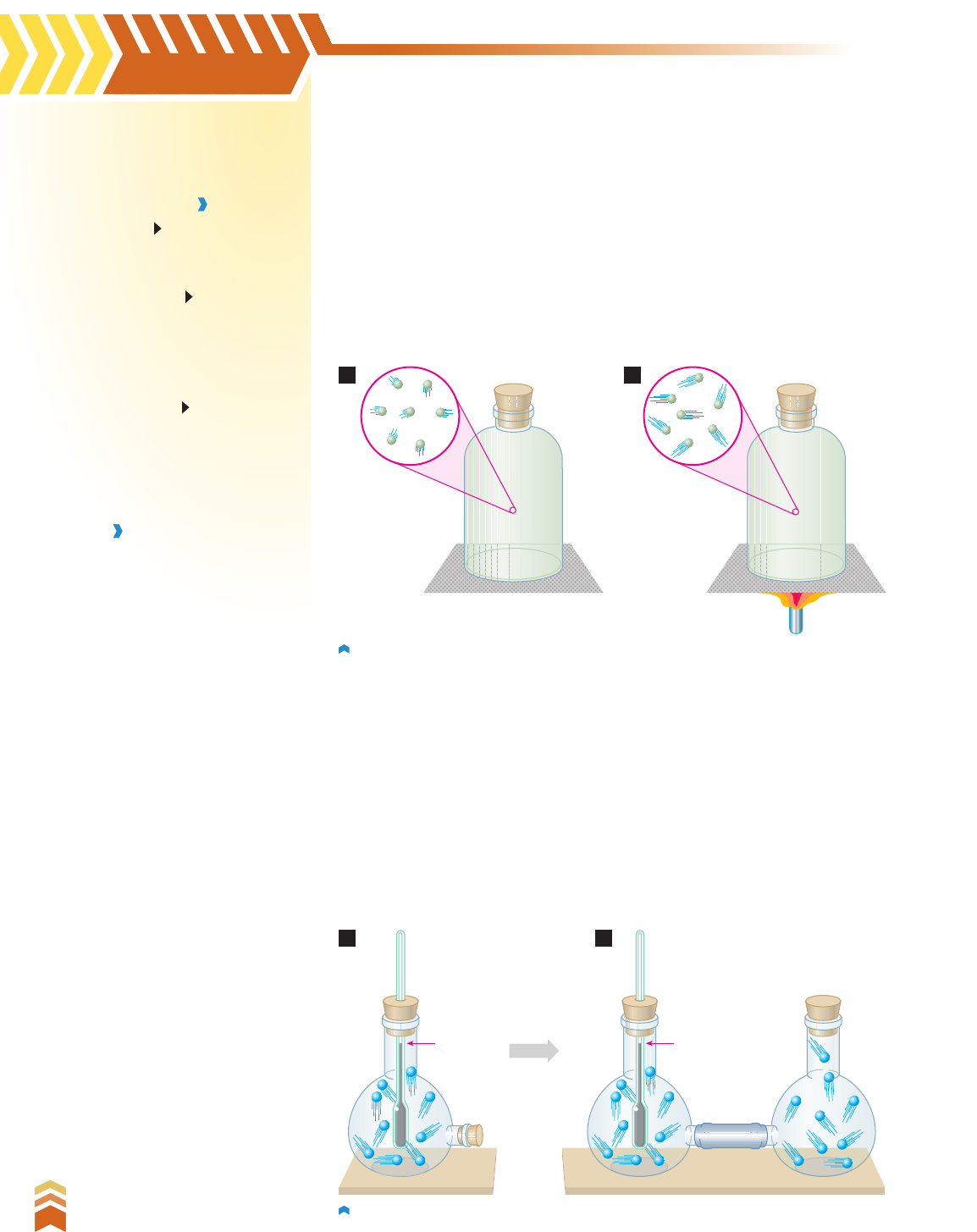 34 U n id a d e B • A t e m p e ra tu ra e s e u s e fe it o s 34 R ep ro d uç ão p ro ib id a. A rt .1 84 d o C ód ig o P en al e L ei 9 .6 10 d e 19 d e fe ve re iro d e 19 98 . A B θ A θ Objetivos Compreender os princípios da criação da escala Kelvin. Relacionar a temperatura na escala Kelvin com a temperatura na escala Celsius. Converter as variações de temperatura medidas nas escalas Celsius e Kelvin. Termos e conceitos • zero absoluto • energia do ponto zero Seção 2.3 O fato de haver um número maior ou menor de moléculas altera a energia tér mi ca total do corpo; no entanto, se cada molécula continua com a mesma energia cinética média que possuía, o grau de agitação é o mesmo e, consequentemente, a temperatura também é a mesma. Imaginemos, por exemplo, um recipiente A contendo um gás, no qual cada molécula tem uma energia cinética média de 4 3 10221 J (fig. 9A). Se o ligarmos a um recipiente B (fig. 9B) com o mesmo número de moléculas, tendo cada uma delas os mesmos 4 3 10221 J de energia cinética média, a energia térmica total do sistema formado será maior, mas a temperatura não irá se alterar. A temperatura como medida da agitação térmica. A escala absoluta Kelvin As partículas constituintes de um gás estão em movimento desor- denado. Esse movimento é denominado agitação térmica. Assim, cada partícula constituinte do gás é dotada de energia ci né tica própria. A soma das energias cinéticas individuais de todas as partículas constitui a energia térmica do gás. Quanto mais intensa a agitação térmica, maior será a energia cinética de cada molécula e, em consequência, maior a temperatura (fig. 8). Figura 8. Ao se aquecer o gás, suas moléculas se agitam mais intensamente. Na situação (B), a temperatura é maior que na situação (A). A B Figura 9. O sistema (A 1 B) possui maior energia térmica que o sistema A, mas a temperatura é a mesma. A B V2_P1_UN_B_CAP_02.indd 34 22.08.09 08:48:43 35 C a p ít u lo 2 • Te rm o m e tr ia 35 R ep ro d uç ão p ro ib id a. A rt .1 84 d o C ód ig o P en al e L ei 9 .6 10 d e 19 d e fe ve re iro d e 19 98 . No Capítulo 8 (Estudo dos gases) voltaremos a discutir a relação entre temperatura e agi- tação térmica. Por ora, podemos concluir: Experimentalmente, o físico irlandês William Thomson (lorde Kelvin*) verificou que a pressão de um gás rarefeito diminuía 1 _______ 273,15 do valor inicial, quando resfriado a volume constante, de 0 wC para 21 wC. Por extrapolação, concluiu que, se o gás não mudasse de estado, sua pressão seria nula na temperatura de 2273,15 wC (que se costuma aproximar para 2273 wC). A esse estado térmico, em que se anularia a pressão do gás, foi dado o nome de zero absoluto — o limite inferior de temperatura. Todas as tentativas para alcançar o zero absoluto falharam. Ele é inatingível, embora seja possível aproximar-se dele indefinidamente. À medida que a temperatura de um cor- po se aproxima do zero absoluto, a energia cinética de suas moléculas tende para um valor finito que se denomina energia do ponto zero — que, apesar do nome, não é nula. Com base nesse estado térmico, lorde Kelvin estabeleceu, em 1848, a escala absoluta que hoje leva o seu nome. A origem (zero) da escala Kelvin é o zero absoluto e a unidade adotada é o kelvin** (símbolo K), cuja extensão é igual à do grau Celsius (wC). Assim, uma variação de temperatura de 1 wC corresponde a uma variação de temperatura de 1 K. Generalizando, qualquer variação de temperatura na escala Celsius (SJC) é numericamente igual à variação de temperatura correspondente na escala Kelvin (ST): * LORDE KELVIN é o título de nobreza que o célebre físico irlandês William Thomson (1824-1907) recebeu em 1892 da rainha Vitória. Aos 34 anos, ao instalar o primeiro cabo telegráfico sob o Oceano Atlântico, foi sagrado cavaleiro, rece- bendo o título de Sir. Ao morrer, foi enterrado ao lado da sepultura de Newton, na Abadia de Westminster, Londres. ** A unidade de temperatura termodinâmica (absoluta) do Sistema Internacional de Unidades é o kelvin (K), não se utilizando mais o grau Kelvin (wK) como era feito antigamente. A temperatura pode ser entendida como uma medida do nível energético de um sistema. Dois corpos podem apresentar temperaturas iguais (mesmo nível energético), mas possuir energias térmicas totais diferentes. No endereço eletrônico http://www.sc.ehu.es/sbweb/fisica/estadistica/otros/cero/cero.htm (acesso em julho/2009), você poderá simular uma experiência na qual certo volume de ar é aquecido desde 0 wC até 100 wC. A variação de pressão do ar é analisada graficamente, verificando-se por extrapolação que se anula no zero absoluto (2273 °C). Entre na redeEntre na rede Observe que as indicações que se correspondem nas es- calas Celsius (JC) e Kelvin (T) nunca coincidem. Realmente, o ponto de congelamento da água (0 wC) corresponde a 273 K (que se lê 273 kelvins) e o ponto de ebulição da água (100 wC) corresponde a 373 K. Assim, comparando as indicações da escala Celsius e da escala absoluta Kelvin, para um mesmo estado térmico (fig. 10), notamos que a temperatura absoluta (T) é sempre 273 unidades mais alta que a correspondente temperatura Celsius (JC). SJC5 ST T 5 JC 273 Figura 10. A temperatura absoluta T é igual à temperatura Celsius JC somada a 273. θ C T 0 °C 100 °C373 K 273 K 0 K –273 °C Retrato de William Thomson, lorde Kelvin. V2_P1_UN_B_CAP_02.indd 35 24.08.09 13:23:57 36 U n id a d e B • A t e m p e ra tu ra e s e u s e fe it o s 36 R ep ro d uç ão p ro ib id a. A rt .1 84 d o C ód ig o P en al e L ei 9 .6 10 d e 19 d e fe ve re iro d e 19 98 . Temperaturas absolutas notáveis Apresentamos, a seguir, algumas temperaturas notáveis, expressas em kelvin, desde o interior das estrelas mais quentes até o zero absoluto, que representam os dois extremos conhecidos. Está no Guinness De acordo com o Gui