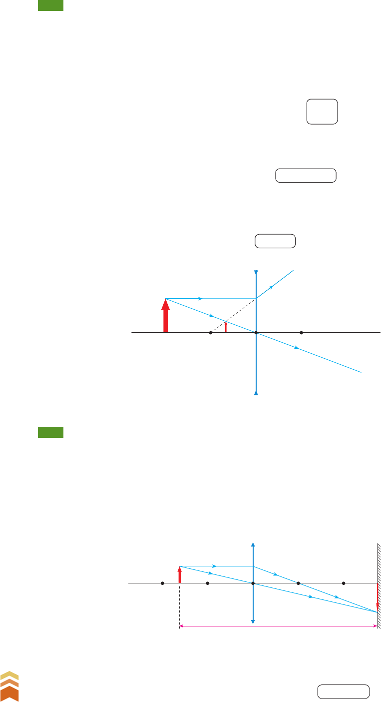338 U n id a d e E • Ó p ti ca G e o m é tr ic a 338 R ep ro d uç ão p ro ib id a. A rt .1 84 d o C ód ig o P en al e L ei 9 .6 10 d e 19 d e fe ve re iro d e 19 98 . R. 102 Um objeto real de 6 cm de altura é colocado perpendicularmente ao eixo principal de uma lente di ver gente de distância focal de módulo igual a 150 cm. Estando o objeto a 300 cm do centro óptico da lente, de ter mine: a) o aumento linear transversal da imagem; b) a posição e o tamanho da imagem. Mas: f 5 150 cm (lente divergente) e p 5 300 cm; logo: A 5 150 ____________ 150 300 ] A 5 150 ______ 450 ] A 5 1 __ 3 Esse resultado significa que a imagem é direita (aumento positivo) e 3 vezes menor que o objeto. b) Podemos calcular a abscissa pe da imagem pela equação dos pontos conjugados ou pela outra fórmula do aumento linear transversal. Utilizando esta segunda possibilidade, temos: A 5 pe __ p ] 1 __ 3 5 pe ____ 300 ] pe 5 100 cm Esse resultado significa que a imagem é virtual e está a 100 cm da lente. Cálculo do tamanho da imagem: De A 5 i __ o , sendo A 5 1 __ 3 e o 5 6 cm, resulta: 1 __ 3 5 i __ 6 ] i 5 2 cm Esquematicamente, a formação da imagem se verifica do seguinte modo: OF' F o i Respostas: a) 1 __ 3 ; b) pe 5 100 cm e i 5 2 cm Solução: a) O aumento linear transversal da imagem pode ser calculado pela fórmula: A 5 f _____ f p O aumento linear transversal vale: A 5 4 (imagem invertida, quatro vezes maior) Mas: A 5 pe __ p ] 4 5 pe __ p ] p 5 pe __ 4 Sendo p 1 pe 5 2, temos: pe __ 4 1 pe 5 2 ] 5pe ____ 4 5 2 ] pe 5 8 __ 5 ] pe 5 1,6 cm R. 103 Uma lente convergente fornece de um objeto real uma imagem quatro vezes maior, projetada numa te la situada a 2 m do objeto. Determine: a) a natureza e a posição da imagem; b) uma segunda posição da lente entre esse objeto e essa tela em que há projeção de outra imagem nítida do objeto; c) a posição e a natureza da imagem na nova situação; d) a distância focal da lente. Solução: a) A imagem projetada é real. Sendo objeto e imagem ambos reais, a imagem é invertida. Es- que ma ticamente, temos: O F' F C' i C o Tela p + p' = 2 m V2_P2_UN_E_CAP_14b.indd 338 29.08.09 11:26:55 339 C a p ít u lo 1 4 • Le n te s e sf é ri ca s d e lg a d a s 339 R ep ro d uç ão p ro ib id a. A rt .1 84 d o C ód ig o P en al e L ei 9 .6 10 d e 19 d e fe ve re iro d e 19 98 . b) Se a lente for movimentada entre o objeto e a tela, uma nova imagem nítida será obtida quan- do as abscissas de objeto e imagem forem trocadas, isto é, quando o objeto estiver a 1,6 m da len te. Es quematicamente: c) Como a abscissa do objeto é q 5 1,6 m, a abscissa qe da imagem será: O F' F C'iC o Tela q' = 0,4 m q + q' = 2 m q = 1,6 m q 1 qe 5 2 ] qe 5 2 q ] qe 5 2 1,6 ] qe 5 0,4 m Observe que essa abscissa da imagem é igual à abscissa do objeto no item a, ou seja: p 5 2 pe ] p 5 2 1,6 ] p 5 0,4 m O aumento linear transversal será: A 5 qe __ q ] A 5 0,4 ___ 1,6 ] A 5 1 __ 4 A imagem formada é real (projetada), invertida (aumento negativo) e quatro vezes menor que o objeto, situada a 0,4 m da lente. d) A distância focal da lente para q 5 1,6 m e qe 5 0,4 m é dada por: Respostas: a) imagem real e invertida, situada a 1,6 m da lente; b) lente a 1,6 m do objeto e a 0,4 m da tela; c) imagem real, invertida e quatro vezes menor, situada a 0,4 m da lente; d) 0,32 m 1 __ f 5 1 __ q 1 1 __ qe ] 1 __ f 5 1 ___ 1,6 1 1 ___ 0,4 ] 1 __ f 5 1 1 4 ______ 1,6 ] 1 __ f 5 5 ___ 1,6 ] f 5 1,6 ___ 5 ] f 5 0,32 m R. 104 Coloca-se um objeto luminoso de tamanho o a certa distância de um anteparo. Verifica-se que há duas posições distintas de uma lente convergente que, colocada entre o objeto e o anteparo, produz neste imagens nítidas. Na primeira posição, a imagem formada tem 2 cm de tamanho e, na segunda posição da lente, o tamanho da imagem é 8 cm. Determine o tamanho do objeto. Tem-se: p 5 qe e pe 5 q Aplicando a fórmula que relaciona os tamanhos e as abscissas de objeto e imagem, obtemos: No caso deste problema, temos: i1 5 2 cm e i2 5 8 cm; portanto: il __ o 5 pe __ p i2 __ o 5 qe __ q Multiplicando membro a membro as equações e , obtemos: il __ o 3 i2 __ o 5 @ pe __ p # 3 @ qe __ q # ] ili2 ___ o2 5 1 ] o2 5 ili2 ] o 5 dlll ili2 Consideramos como resposta apenas a raiz positiva, admitindo o objeto “acima” do eixo principal da lente. i1 o Anteparo p'p i2 o Anteparo q'q Solução: As duas posições da lente correspondem a uma troca entre as abscissas de objeto e imagem. Es que ma ticamente, temos: o 5 dllll 2 3 8 ] o 5 dlll 16 ] o 5 4 cm Resposta: 4 cm V2_P2_UN_E_CAP_14b.indd 339 29.08.09 11:26:56 340 U n id a d e E • Ó p ti ca G e o m é tr ic a 340 R ep ro d uç ão p ro ib id a. A rt .1 84 d o C ód ig o P en al e L ei 9 .6 10 d e 19 d e fe ve re iro d e 19 98 . exercícios propostos P. 348 Uma lente convergente fornece, de um objeto si- tuado a 20 cm de seu centro óptico, uma imagem real a 60 cm da lente. Determine: a) a distância focal e a vergência da lente; b) o aumento linear transversal da imagem. P. 349 Uma vela de 10 cm de altura está a 50 cm de uma lente. A imagem é projetada sobre uma tela situa da a 2 metros da lente. Determine: a) o tipo de lente, sua distância focal e sua vergência; b) o aumento linear transversal da imagem; c) o tamanho da imagem. P. 352 Uma lente divergente, de distância focal de módulo igual a 100 cm, fornece uma imagem virtual de 2 cm de altura e situa da a 20 cm da lente. Determine: a) a posição e o tamanho do objeto; b) o aumento linear transversal da imagem. P. 351 Quer-se projetar a imagem de um objeto luminoso sobre um anteparo situado a 2 m do objeto, com o au xílio de uma lente delgada, cuja convergência é igual a 2 dioptrias. Determine: a) quantas soluções admite o problema e esque- matize; b) o aumento linear transversal da imagem em cada caso. P. 350 (UFG-GO) Um objeto fixo está a uma distância D 5 2,0 m de um anteparo, também fixo. Há duas po si ções, entre o objeto e o anteparo, em que se pod
