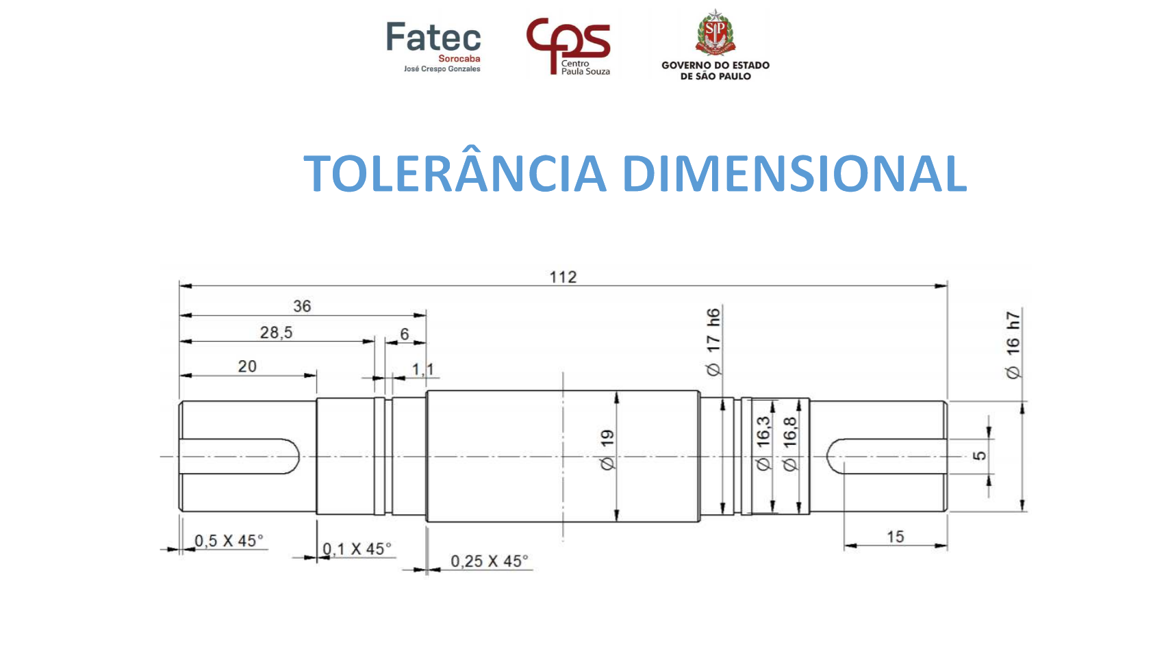 1 2 Tolerância dimensional é o valor da variação permitida na dimensão de uma peça. Em termos práticos é a diferença tolerada entre as dimensões máxima e mínima de uma dimensão nominal. A tolerância é aplicada na execução de peças em série e possibilita a intercambiabilidade delas. Todo processo de fabricação está sujeito a variações: variação do material, variação da máquina, temperatura, procedimentos inadequados, entre outros fatores. Em função destes fatores, não é possível produzir peças iguais (exatas), ou seja, ocorrem desvios. Para que estes desvios ocorram dentro de uma faixa conhecida, foram estabelecidas as tolerâncias. 3 Tolerância Dimensional As tolerâncias vêm indicadas, nos desenhos técnicos, por valores e símbolos apropriados. Por isso, você deve identificar essa simbologia e também ser capaz de interpretar os gráficos e as tabelas correspondentes. As peças, em geral, não funcionam isoladamente. Elas trabalham associadas a outras peças, formando conjuntos mecânicos que desempenham funções determinadas. https://www.youtube.com/watch?v=t-vlTyUQ5Dk Exemplo: 4 ABNT NBR 6158 de junho de 1995 Sistema de Tolerâncias e Ajustes 1.1 Esta Norma fixa o conjunto de princípios, regras e tabelas que se aplicam à tecnologia mecânica, a fim de permitir escolha racional de tolerâncias e ajustes, visando a fabricação de peças intercambiáveis. 1.2 O campo de aplicação desta Norma abrange dimensões nominais de até 3150 mm de peças intercambiáveis. Esta Norma, embora preparada para utilização em peças cilíndricas, aplica-se a outras formas, visto que os termos "furo" e "eixo" nela empregados têm significados convencionais. Em particular, o termo "furo" ou "eixo" pode referir-se a uma dimensão interna ou externa de duas faces paralelas ou planos tangentes de qualquer peça, como a largura de um rasgo ou a espessura de uma chaveta. O sistema prescrito nesta Norma também estabelece ajustes entre elementos cilíndricos conjugados e ajustes entre peças que tenham elementos com faces paralelas. 5 Eixo: Termo convencional utilizado para descrever uma característica externa de uma peça, incluindo também elementos não cilíndricos. Eixo-base: Eixo cujo afastamento superior é zero. Furo: Termo convencional utilizado para descrever uma característica interna de uma peça, incluindo também elementos não cilíndricos. Furo-base: Furo cujo afastamento inferior é zero. Dimensão nominal: Dimensão a partir da qual são derivadas as dimensões limites pela aplicação dos afastamentos superior e inferior. Dimensão efetiva: Dimensão de um elemento obtido pela medição. Dimensão máxima: A maior dimensão admissível de um elemento. Dimensão mínima: A menor dimensão admissível de um elemento. 6 Afastamento superior: (ES, es) – Diferença entre a dimensão máxima e dimensão nominal. As letras “ES” são designadas para afastamentos em furos e as letras “es” para afastamentos em eixos. Afastamento inferior: (EI, ei) – Diferença entre a dimensão mínima e dimensão nominal. As letras “EI” são designadas para afastamentos em furos e as letras “ei” para afastamentos em eixos. Tolerância: Diferença entre a dimensão máxima e a dimensão mínima, ou seja, diferença entre o afastamento superior e o afastamento inferior. Campo de tolerância: É uma representação gráfica de tolerâncias, onde campo compreendido entre duas linhas, entre as dimensões máxima e mínima, é definido pela magnitude da tolerância e sua posição relativa em relação à linha zero. 7 Tolerância (t) T = D máx – d mín t = As + Ai D m á x D m in T o le râ n c ia 8 Afastamento (A) • Inferior (Ai) Ai = D min – D nom As = D máx – D nom • Superior (As) D n o m in a l D m in A i D n o m D m á x A s 9 Linha Zero Linha Zero Nominal Ajustes 10 Jogos e Interferências F máx = D máx – d min I máx = d máx – D min F min = d min – D máx As = D máx – D nom I máx = (as+D) – (Ai+D) Ai = D min – D nom D máx = As + D nom I máx = as – Ai D min = Ai + D ai = d min – D nom I min = d min – D máx as = d máx – D d min = ai + D nom I min = (ai+D) – (As+D) F min = (Ai+D) – (as+D) F máx = (As+D) – (ai+D) I min = ai – As F min = Ai – as F máx = As - ai 11 F máx = As – ai maiúscula = eixo F min = Ai – as minúscula = furo I máx = as – Ai I min = ai - As F m in F m á x I m á x I m in 12 Ajustes Móvel Indeterminado Prensado Linha zero 13 Tabelas NBR 6158 Tabela 1: Valores de tolerância – padrão IT: Tabela 2: Valores dos afastamentos para eixo Afastamento h as = 0 Sistema Eixo – base Tabela 3: Valores dos afastamentos para furo Afastamento H ai = 0 Sistema Furo – base as ai as ai 14 Leitura das Tabelas NBR 6158 Tabela 2: Afastamentos para eixo • Afastamento superior para grau de tolerância js as = ai = IT 2 • Afastamento fundamental para eixo ai = afastamento fundamental negativo (-) = ai = as – IT (a – h) ai = afastamento fundamental positivo (+) = as = ai + IT (até – hc) IT as ai IT 2 IT 2 Linha zero 15 Tabela 3: Afastamentos para furos • Afastamento inferior para grau de tolerância JS AS = AI = IT 2 • Afastamento fundamental para furo AI = afastamento fundamental positivo (+) AS = AI + IT (A-H) AS = afastamento fundamental negativo (-) AI = AS - IT (K-Zc) • Valores de Os valores de podem variar de acordo com o IT, estes valores são observados nas últimas colunas da Tabela 3. • Afastamento fundamental para grau de tolerância entre P e Zc e IT até IT7. • Considerar os valores da tabela para medidas acima de IT7 e somar o valor de Exemplo: 56 na faixa de 18mm a 30mm: = 4 µm AS = - 35 + 4 = - 31 µm a s a i a s a i Ø 5 0 A i A S A S A i 16 Afastamento para eixo Afastamento para furos a até h i até zc Linha de zero ai = ( - ) ai = as - IT ai = ( + ) as = ai + IT A até H K - ZC AI = ( + ) AS = AI + IT AS = ( - ) AI = AS - IT Furo Eixo IT Afastamento