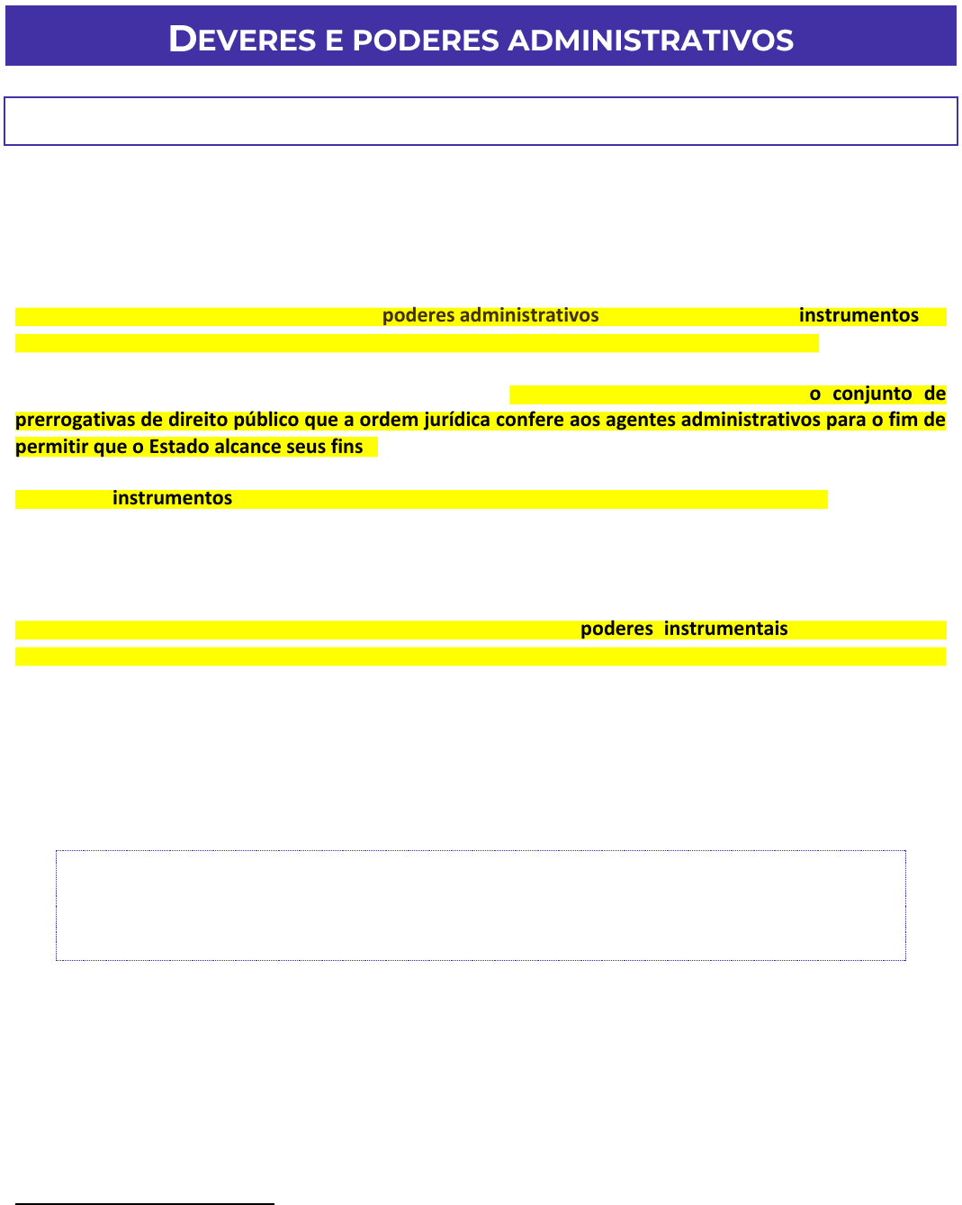 Introdução O regime jurídico administrativo é formado por um conjunto de prerrogativas e sujeições próprias que colocam a Administração Pública em posição de superioridade na relação com os administrados, ao mesmo tempo em que limitam a sua esfera de liberdade para defender os direitos individuais e preservar o patrimônio público. Dentre as prerrogativas, encontram-se os poderes administrativos, que funcionam como instrumentos ou mecanismos por meio dos quais o Poder Público deve perseguir o interesse da coletividade. Nessa linha, José dos Santos Carvalho Filho define poderes administrativos como “o conjunto de prerrogativas de direito público que a ordem jurídica confere aos agentes administrativos para o fim de permitir que o Estado alcance seus fins”.1 Eles são os instrumentos pelos quais os órgãos públicos cumprem os seus deveres funcionais. Dessa forma, não há poder dissociado da função pública. Portanto, os poderes públicos devem ser utilizados para a realização do fim público que justificou a competência atribuída ao agente, ou seja, todo poder se vincula ao fim público. Além disso, os poderes que estamos abordando agora são poderes instrumentais, na medida que representem o instrumento, o meio, para que os agentes públicos possam fazer valer a vontade estatal. Por outro lado, não devemos confundi-los com os poderes políticos – Executivo, Legislativo e Judiciário, pois estes são estruturais, já que dizem respeito à estrutura do Estado. Embora o vocábulo poder dê ideia de faculdade, o certo é que se trata de um poder-dever, pois ao mesmo tempo em que representam prerrogativas próprias das autoridades, eles representam um dever de atuação, uma obrigação. Segundo Hely Lopes Meirelles,2 [...] o poder de agir se converte no dever de agir. Assim, se no Direito Privado o poder de agir é uma faculdade, no Direito Público é uma imposição, um dever para o agente que o detém, pois não se admite a omissão da autoridade diante de situações que exigem sua atuação. Eis porque a Administração responde civilmente pelas omissões lesivas de seus agentes. A partir desses ensinamentos, podemos discutir os poderes e deveres aos quais à Administração se submete. 1 Carvalho Filho, 2014, p. 51. 2 Meirelles, 2013, p. 112. Poder-dever de agir Os poderes administrativos são outorgados aos agentes públicos para que eles possam atuar em prol do interesse público. Logo, as competências são irrenunciáveis e devem obrigatoriamente ser exercidas. É por isso que o “poder tem para o agente público o significado de dever para com a comunidade e para com os indivíduos”3. Diz-se, portanto, que são poderes-deveres, pois envolvem simultaneamente uma prerrogativa e uma obrigação de atuação. O Prof. Celso Antônio Bandeira de Mello, buscando dar ênfase ao caráter impositivo de atuação, diz que o correto é falar em “deveres-poderes”, pois as prerrogativas devem ser vistas antes como um dever de atuação em busca da finalidade pública das competências administrativas. Vale lembrar que os agentes públicos submetem aos princípios da legalidade e da indisponibilidade do interesse público. Logo, são obrigados a seguir a lei e não dispõe (não são donos) do interesse público, motivo pelo qual não podem abrir mão de uma competência conferida pelo ordenamento jurídico. Nesse sentido, o art. 11 da Lei 9.784/1999 determina que a competência atribuída ao agente público “é irrenunciável e se exerce pelos órgãos administrativos a que foi atribuída como própria, salvo os casos de delegação e avocação legalmente admitidos”. Assim, se o administrador se omitir diante de uma situação que necessite de atuação, estará ele cometendo uma ilegalidade. Nesses termos, Marcelo Alexandrino e Vicente Paulo consideram as seguintes decorrências do poder-dever da Administração Pública:4 ✓ os poderes administrativos são irrenunciáveis, devendo ser obrigatoriamente exercidos; ✓ a omissão do agente, diante de situações que exigem sua atuação, caracteriza abuso de poder, podendo ensejar, inclusive, responsabilidade civil da administração pública pelos danos que porventura decorram da omissão ilegal. Apesar de os autores mencionarem apenas a responsabilidade civil, a omissão ilegal do agente público pode refletir na sua responsabilização nas esferas penal, civil e administrativa. 3 Meirelles, 2013, p. 112. 4 Alexandrino e Paulo, 2011, p. 212. Pela omissão ilegal, o agente público pode ser responsabilizado nas esferas penal, civil e administrativa. (TRT PE - 2017) Os poderes administrativos são facultados ao administrador, que pode ou não fazer-lhes uso, conforme critério subjetivo e as peculiaridades do caso concreto. Comentários: os poderes representam, na verdade, poderes-deveres. Logo, não tratam de uma mera faculdade, mas de uma obrigação, pois agente público não pode renunciar às suas competências legais. Gabarito: errado. Deveres administrativos Após a análise do aspecto básico do poder-dever de agir, Hely Lopes Meirelles apresenta os três principais deveres do administrador público: dever de eficiência, dever de probidade, e dever de prestar contas. Dever de eficiência O dever de eficiência representa a necessidade de atuação administrativa com qualidade, celeridade, economicidade, atuação técnica, controle, etc. Pode-se resumir, portanto, na “boa administração”. O dever de eficiência vai além da exigência de produtividade, abrange também a perfeição do trabalho, ou seja, a adequação técnica aos fins desejados pela Administração. Dessa forma, a atuação eficiente envolve aspectos quantitativos e qualitativos. Recentemente, com a Emenda Constitucional 19/1998, a eficiência foi elevada ao posto de princípio constitucional. Assim, a Reforma Administrativa realizou algumas modificações no texto constitucional para permitir a exigência de uma atua