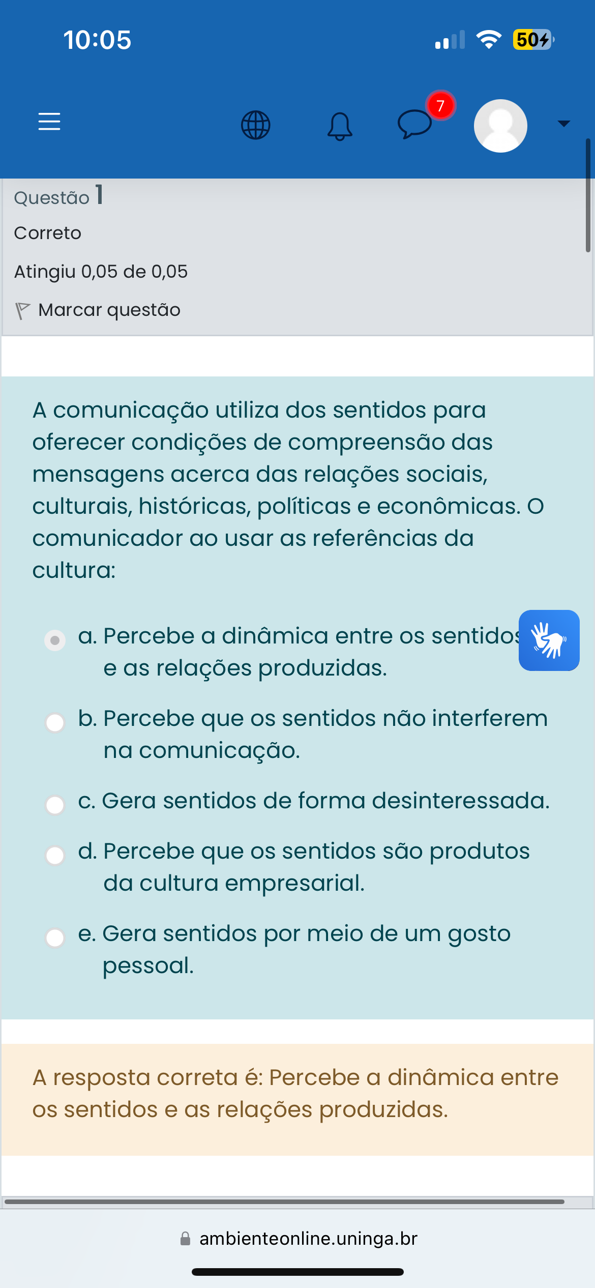 A comunicação utiliza dos sentidos para oferecer condições de compreensão das mensagens acerca das relações sociais, culturais, históricas, políticas e econômicas. O comunicador ao usar as referências da cultura: a. Percebe a dinâmica entre os sentidos e as relações produzidas. b. Percebe que os sentidos não interferem na comunicação. c. Gera sentidos de forma desinteressada. d. Percebe que os sentidos são produtos da cultura empresarial. e. Gera sentidos por meio de um gosto pessoal.
