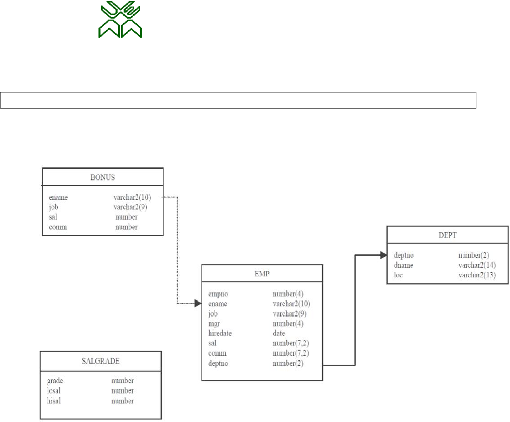 Universidade Eduardo Mondlane Faculdade de Ciências Departamento de Matemática e Informática Curso: Lic. em Informática Disciplina: Base de Dados I Ficha: 8 DML-SELECT - 1º Semestre - 2023 I. Considere o schema Scott e resolva os seguintes exercícios: 1. Mostre o nome, a função e o ID do departamento a que pertence dos empregados que têm a mesma função (JOB) do ‘BLAKE’. Ordene a saída pela ordem crescente do nome. 2. Mostre os empregados que ganham mais do que o salário mais baixo do departamento 30. Ordene os salários mostrados por ordem decrescente. 3. Mostre os departamentos que têm um salário médio superior ao do departamento 20. 4. Mostre os departamentos nos quais não existem quaisquer empregados. 5. Selecione o nome e o salário acrescido de 12.7% e expresso como um número inteiro de todos os empregados. 6. Mostre para cada empregado seu nome e data de admissão no formato DD/MM/YY HH:MI:SS cujo o nome não começa com a letra S. 7. Mostre para cada empregado o seu nome, salário e a sua comissão. Para o nome, apenas a primeira letra deve estar a Maiúscula e para o salário e a comissão onde o valor é nulo deve ser substituído por 0 (zero). 8. Mostre para todos empregados seu número, nome e nome do departamento. 9. Crie a frase seguinte: “ENAME” recebe “SAL” por mês, mas gostaria de receber SAL*3 para cada empregado. A nova coluna (SAL*3) deve chamar-se salário ambicionado. II. Considere o schema HR e resolva os seguintes exercícios: 1. Seleccione todos os dados dos empregados em que o last_name possua dois ‘s’ seguidos. Ex:‘Bissote’. 2. Mostre o número, nome e sobrenome dos empregados que ganham mais do que a média salarial da empresa e estão subordinados a um gerente que possua a letra A no nome. 3. Mostre para cada gerente, o seu número e o menor salário pago a um de seus subordinados. Não devem ser considerados os grupos cujos menor salário seja inferior a 12000. 4. Mostre os nomes e os locais (city) de todos os departamentos, além do número de funcionários que trabalham em cada departamento. Certifique-se de que os departamentos sem funcionários também sejam incluídos. 5. Mostre o nome, o salário, data de ingresso e a comissão dos empregados que foram admitidos após o ano 2005 e que recebem comissão. Classifique os dados por salário em ordem decrescente. 6. Mostre os sobrenomes de todos os empregados juntamente com o número de anos e de meses completados em que eles estão empregados.