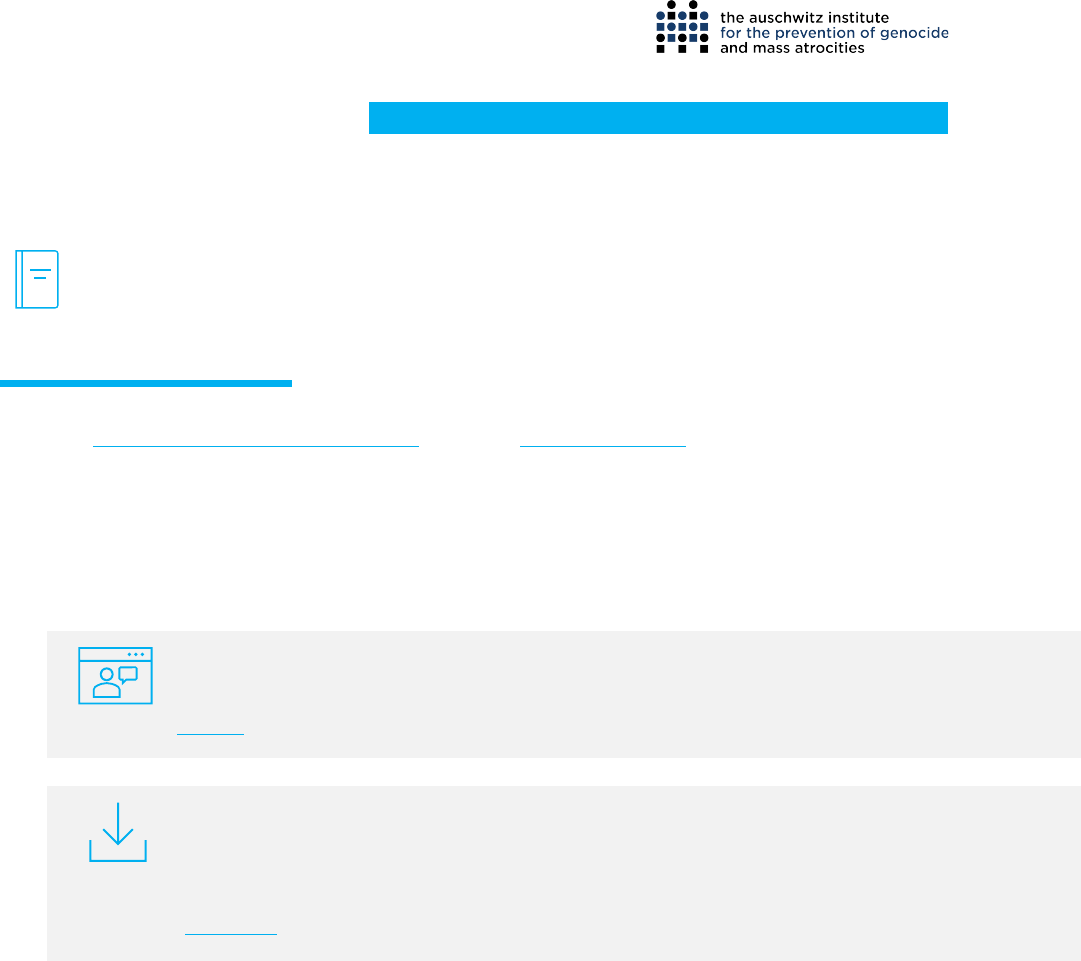 1 CURSO VIRTUAL Cidadania e democracia desde a escola Instituto Auschwitz para a Prevenção do Genocídio e Atrocidades Massivas Módulo 1 CIDADANIA E DEMOCRACIA DESDE A ESCOLA 1.1 CIDADANIA E DEMOCRACIA DESDE A ESCOLA O projeto Cidadania e democracia desde a escola e a eletiva Direitos e cidadania foram criados pelo Instituto Auschwitz para trabalhar na sala de aula com estudantes do 6º ano do Ensino Fundamental até 3º ano do Ensino Médio. A metodologia desta proposta tem como finalidade contribuir para o aprendizado de uma cultura de respeito aos direitos fundamentais e às responsabilidades cidadãs, a partir da criação no ambiente escolar de espaços para a convivência harmônica baseada na pluralidade, na tolerância e na cooperação. Neste vídeo, gravado após o piloto que foi realizado em 2018 em São Paulo e Brasília, poderá conhecer um pouco mais sobre a proposta metodológica do projeto. Assistir Antes de começar, recomendamos que faça o download do caderno do/a professor/a do projeto e os três cadernos do/a professor/a da eletiva que você precisará para acompanhar este curso e, mais tarde, para trabalhar na sala de aula. Baixe aqui 1.2 Metodologia A construção da cidadania é um processo permanente e de crescente importância no contexto de um mundo global e complexo. A escola, como espaço de encontro e convivência, é um lugar propício para a produção e o intercâmbio de novas formas de olhar e pensar. Ela adquire um papel chave na construção do sujeito social e é o primeiro laboratório de exercício da cidadania, em que o/a estudante aprende a se relacionar com o outro e a participar como indivíduo de espaços coletivos. Neste contexto, a educação, para além de sua função essencial de preparar os/as estudantes à vida profissional, atua no desenvolvimento do potencial humano dos/as jovens, para que possam escolher o seu projeto de vida e participar de forma positiva na construção de uma sociedade mais justa, inclusiva e solidária. O projeto Cidadania e democracia desde a escola e a eletiva Direitos e cidadania incidem nesse potencial da educação e auxiliam os/as estudantes a refletir e se posicionarem como cidadãos/ãs responsáveis em relação 2 ao mundo em que vivem. Ao mesmo tempo, permitem a melhora da convivência no ambiente escolar, não apenas entre os/as estudantes, como também na relação destes com o corpo docente e a direção. A proposta metodológica do projeto Cidadania e democracia desde a escola se divide em duas partes diferentes, a serem realizadas em paralelo, ao longo do semestre ou do ano escolar. A primeira parte, construída em torno de cinco eixos temáticos, propõe realizar uma série de atividades com o objetivo de problematizar diversos temas com os/as estudantes, adotando uma metodologia educativa aberta que busca estimular a participação e dos/as jovens em sala de aula. Neste momento, a ideia é estimular a reflexão e criatividade dos/as alunos/as utilizando recursos, tais como: leitura de textos, análise de notícias, reflexão sobre músicas e/ou vídeos, círculos de paz, rodas de conversa, discussão em grupos, breves encenações teatrais, jogos educativos, debates em sala de aula e atividades de pesquisa. Agora, assista ao vídeo com Clara Ramírez Barat, Diretora do Programa de Políticas Educacionais Warren do Instituto Auschwitz, que explica a sequência temática da primeira parte da proposta. Assistir 3 A segunda parte, correspondente ao eixo 6 do caderno, pretende estimular o aprendizado dos/as jovens mediante o desenvolvimento de projetos elaborados em equipe para que os/as estudantes possam explorar e desenvolver seus próprios interesses e inquietudes. A proposta de elaboração de projetos realizados em grupos, sobre a que voltaremos a falar com mais detalhe no módulo 5 do curso, busca promover a identificação e resolução de problemas de forma cooperativa. 1.3 Aplicação do projeto na sala de aula Em concordância com o calendário escolar, os cadernos metodológicos que você baixou anteriormente têm sido pensados para ajudá-lo/a a desenvolver, passo a passo, os conteúdos do programa ao longo do semestre ou do ano escolar. Assim como a proposta metodológica do projeto e da eletiva, cada caderno metodológico está dividido em 6 eixos: Os cinco primeiros eixos os eixos temáticos — estão organizados de modo similar. Primeiramente, cada unidade comporta uma introdução aos conteúdos a serem trabalhados com sugestões de leitura pensadas para ajudar o/a professor/a a preparar a aula. Seguindo esta introdução se propõem uma série de atividades de 45 a 50 minutos de duração cada uma, ou seja, pensadas, para serem feitas durante o período de uma aula. Cada atividade é introduzida por uma série de informações como o objetivo, a duração estimada e os materiais necessários para completar a atividade com sucesso (incluindo vídeos e textos, assim como fichas para os/as estudantes.) Mesmo que as atividades propostas deem conta do conteúdo do programa considerando os eixos temáticos, você também pode modificá-las e reforçá-las, e até mesmo considerar outras atividades que já conheça ou que sejam de sua preferência, para melhor satisfazer as necessidades específicas de sua turma e/ou proposta de ensino. Além das atividades, cada unidade contém dois tipos de sugestões: uma série de leituras da literatura universal para sugerir aos/às estudantes que estejam interessados em continuar aprofundando; e uma seleção de filmes que abordam as temáticas debatidas. Para ajudá-lo/a a preparar as aulas de maneira mais rápida e efetiva, o Instituto criou dois sites nos quais você poderá encontrar para download, organizados por ciclos, eixos, e atividades, todos os materiais de livre acesso que são sugeridos nos cadernos metodológicos, incluindo vídeos, textos de análise e leitura, bem como fichas para os/as estudantes e outros tipos de referências. 4 e