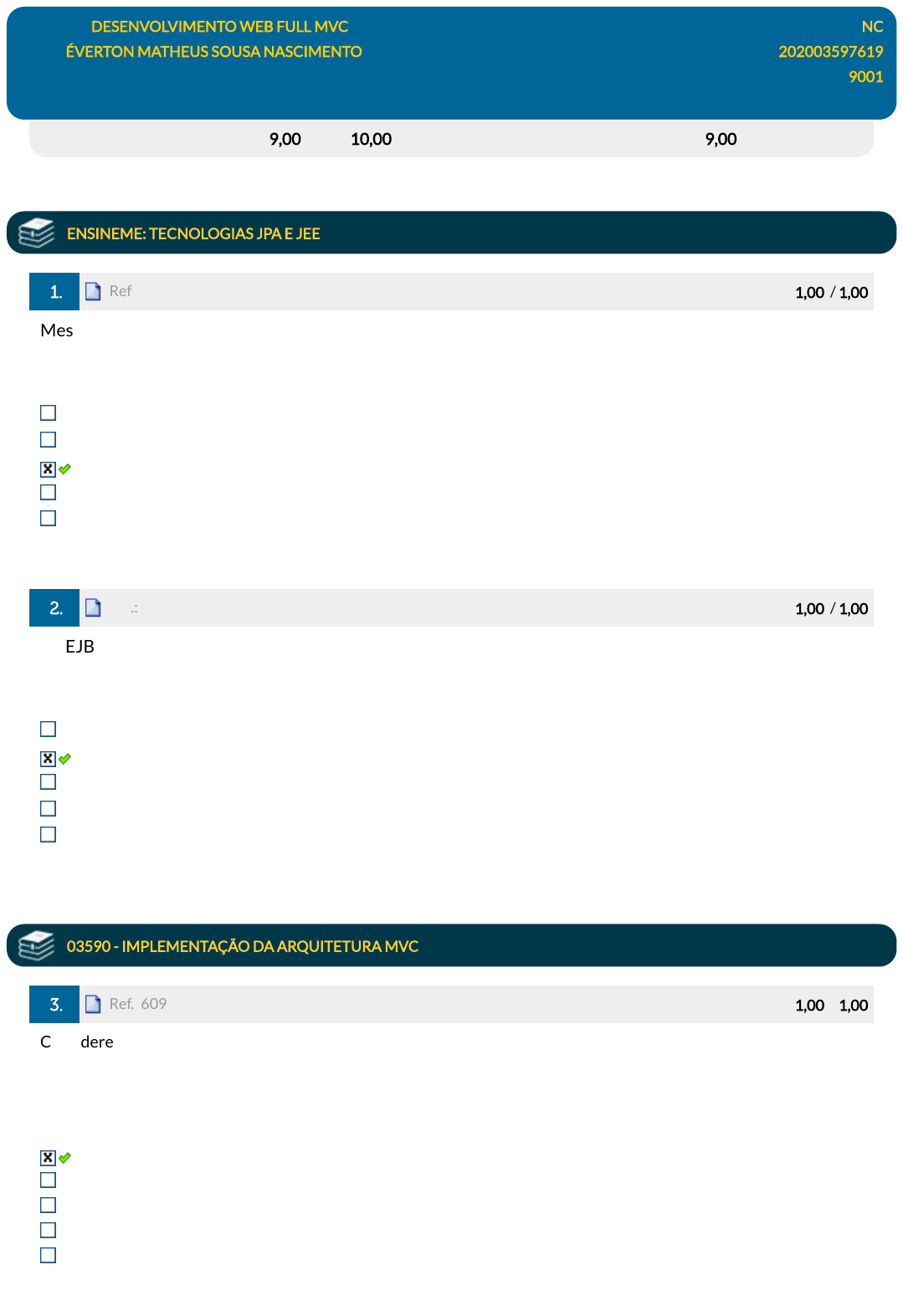 Avaliação: 9,00 pts de 10,00 Nota SIA: 9,00 pts