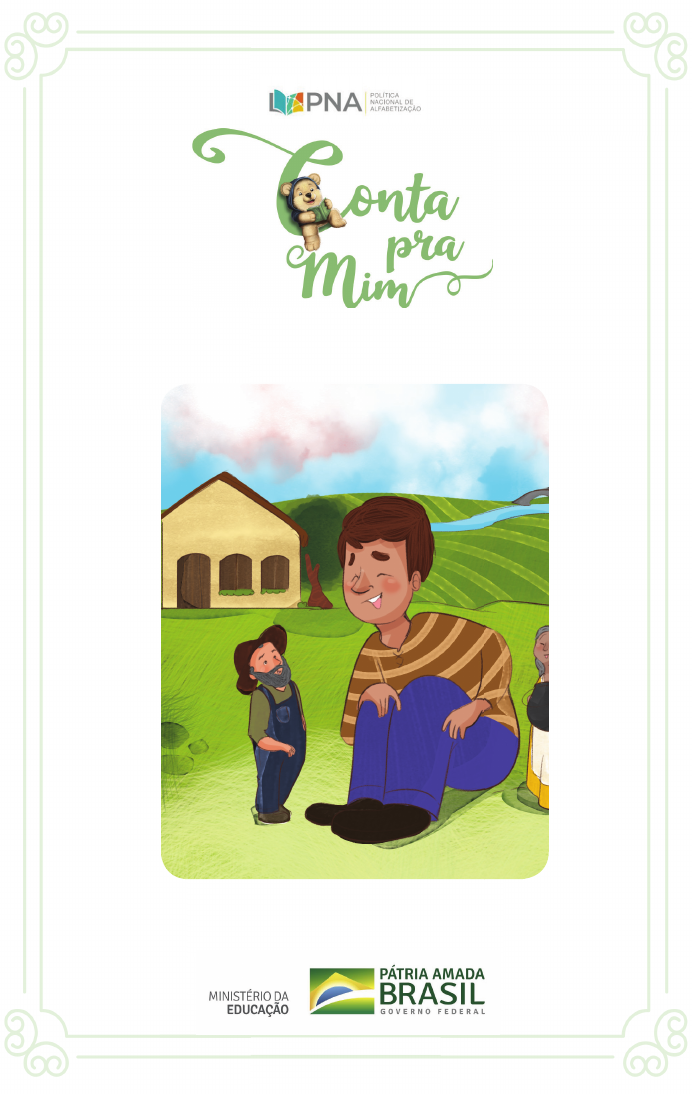 O Jovem Gigante Série Ficção Contos de Fadas O Jovem Gigante Coleção Conta pra Mim Série Ficção Contos de Fadas Dados Internacionais de Catalogação na Publicação (CIP) de acordo com ISBD J86 O jovem gigante [recurso eletrônico] / organizado por Ministério da Educação – MEC ; coordenado por Secretaria de Alfabetização - Sealf. – Brasília, DF : MEC/Sealf, 2020. 16 p. : il. ; PDF ; 15,2 MB. – (Coleção Conta pra Mim) ISBN: 978-65-87026-45-9 (Ebook) 1. Literatura infantil. I. Ministério da Educação – MEC. II. Secretaria de Alfabetização - Sealf. III. Título. IV. Série. 2020-1036 CDD 028.5 CDU 82-93 Elaborado por Vagner Rodolfo da Silva - CRB-8/9410 Índice para catálogo sistemático: 1. Literatura infantil 028.5 2. Literatura infantil 82-93 Autoria: Ricardo Moreira Figueiredo Filho Ilustrações: Vanessa Alexandre Edição: Marismar Borém Direção geral e curadoria: Wiliam Ferreira da Cunha Supervisão técnica e de conteúdo: Carlos Francisco de Paula Nadalim Revisão de texto: Felipe Salomão Cardoso e Adriana Araújo Figueiredo Publicado em 2020 pelo Ministério da Educação (MEC) em cooperação com a Editora Cora e com a Organização das Nações Unidas para a Educação, a Ciência e a Cultura (UNESCO), no âmbito do Projeto 914BRZ1074 - 914BRZ1074.3 sob o contrato ED00217/2020. © MEC 2020 Esta publicação está disponível em acesso livre ao abrigo da licença Atribuição 4.0 Internacional (CC BY 4.0) (https://creativecommons.org/licenses/by/4.0/deed.pt_BR). Ao utilizar o conteúdo da presente publicação, os usuários aceitam os termos de uso do Repositório de Domínio Público do MEC (http://www.dominiopublico.gov.br/pesquisa/PesquisaObraForm.jsp). A Coleção Conta pra Mim é dedicada à família — mães, pais, fi lhas, fi lhos, avós, avôs... Neste livro, vamos mergulhar no mundo mágico dos contos de fadas, com seus mistérios, desafi os e conquistas. Contos de fadas são uma ótima forma de estimular a imaginação da criança, ao apresentá-la a um universo em que a coragem, a solidariedade e o perdão são as grandes armas dos heróis. Viajar por esse universo na companhia da família será com certeza uma experiência que vocês guardarão por toda a vida. Sejam todos muito bem-vindos! Infância e leitura — o caminho de uma boa aventura. Era uma vez um fi lho de campone- ses que não crescia mais do que sete centímetros. Um dia, como era habitu- al, o pai o levou para passear no campo. Uma forte ventania, entretanto, carregou o pequenino para bem longe, até a porta de um castelo. 3 4 Ali, um casal de gigantes passou a cuidar do menino, que cresceu rapi- damente e fi cou enorme. Passados três anos, levaram o rapaz para a fl o- resta, avistaram uma fi gueira e deter- minaram: — Arranque aquela árvore! O garoto conseguiu, mas com difi - culdade. 5 Dois anos depois, porém, voltou à mata e ergueu um jequitibá, como quem tira uma fl or do jardim. A partir desse dia, o jovem decidiu sair à procura dos pais. Quando encon- trou a casa de infância, abriu a porta e falou emocionado: 6 — Papai! Mamãe! Que saudade! Vejam como eu cresci! Os lavradores se espantaram: — Deve ser um engano... Você não é nos- so fi lho. Mesmo assim, agindo com hospitali- dade, os moradores o convidaram para o almoço. O apetite do visitante parecia não ter fi m. 7 Foram servidos um porco, dez quilos de arroz, cinco quilos de feijão e quaren- ta batatas assadas. Concluída a longa refeição, o moço foi embora cabisbaixo, porque percebeu que seus pais não o reconheciam como verdadeiro fi lho. 8 No dia seguinte, vagou pelas estradas, até encontrar um ferreiro, a quem pediu um emprego de ajudante. 9 Após trabalhar muitas horas na for- ja, o gigante resolveu buscar outra ocupação. Agradeceu ao artífi ce, des- pediu-se e foi embora entristecido... 10 Pouco depois, deparou-se com um fazendeiro, pedindo-lhe um trabalho de camponês. Após bastante tempo lavrando a terra, o jovem resolveu procurar outro serviço. Agradeceu ao agricultor, cum- primentou-o e partiu desolado. 11 Logo ao nascer do sol, achou um pa- deiro, que o contratou como auxiliar. No dia seguinte, o patrão percebeu algo estranho: — Meu fi lho, por que você está tão triste? 12 E o pobrezinho contou a sua história: — Eu era uma criança muito pequena, cabia na palma da mão da minha mãe, e meu pai me colocava no bolso, para passear no campo. Certa vez, eu me perdi e fui cri- ado por gigantes, que me transformaram em um deles. Por causa disso, meus pais já não me reconhecem... 13 Ao escutar a narrativa, o padeiro se admirou, porque ele conhecia os pais e se lembrava daquele menininho minúsculo. Rapidamente, o dono da padaria pe- diu que chamassem o casal... 14 Diante do testemunho do padeiro, os pais, fi nalmente, acreditaram que ali estava o fi lho querido, há tanto tem- po perdido. A alegria tomou conta de todos, especialmente do jovem gi- gante. Eles nunca mais se separaram e viveram felizes para sempre. Conversa entre adultos e crianças antes, durante e depois da leitura em voz alta. Leitura Dialogada O que é? Fortalecer os laços afetivos entre pais e fi lhos. Quais são os benefícios? Contribuir para a alfabetização e reforçar a aprendizagem escolar das crianças. Como praticar? Escolha um momento tranquilo para iniciar a leitura dialogada. Leia com calma. Pronuncie bem as palavras, cuidando com carinho do tom de voz. Deslize o dedo indicador sob as palavras durante a leitura. Nomeie as ilustrações e dê tempo para seu fi lho apreciá-las. Valorize os comentários de seu fi lho, explorando outros aspectos das histórias. Ao sair de casa, leve sempre livros para ler com seu fi lho. Aproveite todas as oportunidades! 1. Trate seu fi lho com muito amor e carinho. 2. Converse com seu fi lho. 3. Valorize e respeite o que seu fi lho tem a dizer. 4. Leia em voz alta para seu fi lho. 5. Conte histórias para seu fi lho. 6. Dê livros de presente para seu fi 
