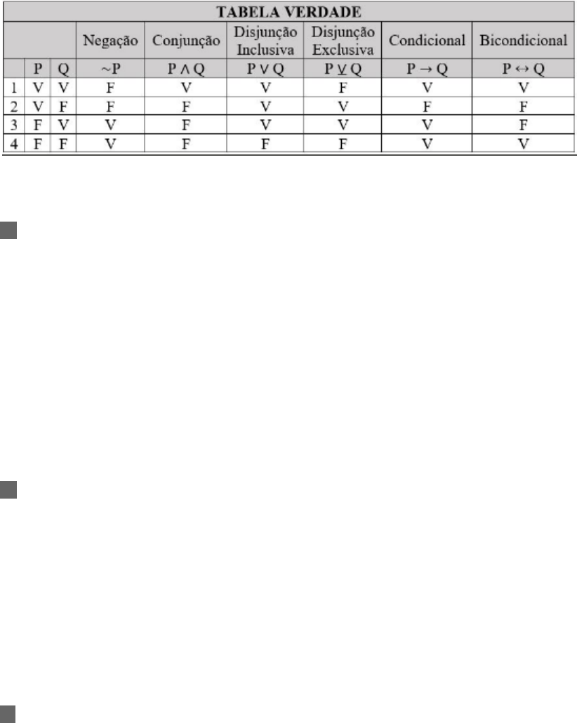 1 - A tabela-verdade é usada para determinar o valor lógico de uma proposição composta, sendo que os valores