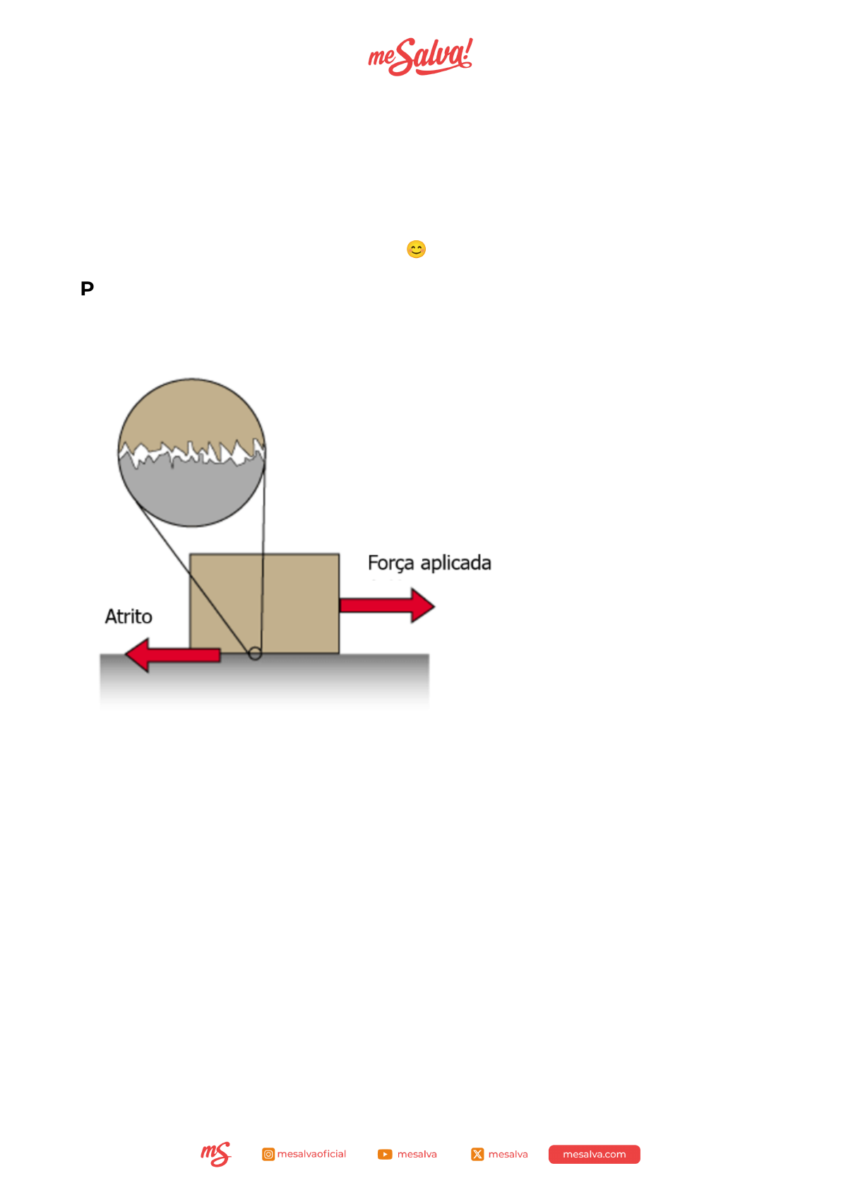 Dinâmica II: Forças, Tensão e Polias Prof. Érick Barcelos – 20/05/2024 Fala galera do MeSalva! Nesta aula, vamos aprender um pouco mais sobre dinâmica! Mais especificamente, vamos estudar a força de atrito, força de tensão e polias. Vem com a gente e vamos desmistificar a física juntos😊 Parte I – Força de Atrito A força de atrito surge graças as irregularidades entre duas superfícies. Existem dois tipos de força de atrito, que são: - - Característica Atrito Estático Atrito Cinético Quando atua Sentido Intensidade Valor máximo Parte II – Exemplo: Um corpo de 10 kg de massa é submetido a uma força F. Supondo os coeficientes de atrito estático e cinético iguais a 0,2 e 0,1, respectivamente, calcule a força de atrito e a aceleração do corpo supondo que a força F vale: a) 10 N b) 20 N c) 30 N Parte III – Exemplo ENEM Com o objetivo de revestir o piso de uma rampa de acesso para cadeiras de rodas, determina-se que, sob a aplicação de uma força motora de até 200 N, não ocorra deslizamento dos pneus em relação à superfície de contato. Considera-se que a força normal que atua sobre o conjunto cadeira e cadeirante é de 800 N. O quadro a seguir indica alguns materiais, seus respectivos coeficientes de atrito estático com a borracha dos pneus e seus custos referentes ao metro quadrado instalado. Cada cifrão ($) indica uma unidade monetária genérica. Qual revestimento apresenta o menor custo, além de garantir que cadeiras de rodas passem pela rampa sem risco de escorregamento? a) Cimento. b) Mármore. c) Madeira. d) Carpete. e) Lona. Parte IV – Força de Tensão A tensão é uma força que existe quando um corpo está em contato com o fio. Seu sentido é sempre de “puxar o corpo” na direção do fio! OBS: Não existe uma fórmula única para calcular a tensão no fio! Veja outras situações que envolvem a força de tensão: Parte IV – Polias Primeiramente, vamos estudar um sistema com uma única polia fixa: Agora, vamos estudar um sistema com uma polia fixa e uma polia móvel: Generalizando para um sistema com n polias móveis: Parte V – Questão ENEM Uma invenção que significou um grande avanço tecnológico na Antiguidade, a polia composta ou a associação de polias, é atribuída a Arquimedes (287 a.C. a 212 a.C.). O aparato consiste em associar uma série de polias móveis a uma fixa. A figura exemplifica um arranjo possível para esse aparato. É relatado que Arquimedes teria demonstrado para o rei Hierão um outro arranjo desse aparato, movendo sozinho, sobre a areia da praia, um navio repleto de passageiros e cargas, algo que seria impossível sem a participação de muitos homens. Suponha que a massa do navio era de 3 000 kg, que o coeficiente de atrito estático entre o navio e a areia era de 0,8 e que Arquimedes tenha puxado o navio com uma força F, paralela à direção do movimento e de módulo igual a 400 N. Considere os fios e as polias ideais, a aceleração da gravidade igual a 10 m/s² e que a superfície da praia é perfeitamente horizontal. O número mínimo de polias móveis usadas, nessa situação, por Arquimedes foi a) 3. b) 6. c) 7. d) 8. e) 10. Tarefa De Casa: Listas 1 e 2 de exercício. Disponível em: Tarefa de Casa (20/05) https://www.mesalva.com/app/exercicio/idinex5-47711?contexto=exercicios-e-provas%2Ffisica-1836&lista=mecanica-dinamica-de-newton-lista-1-66704&modulo=mecanica-dinamica-de-newton-8460