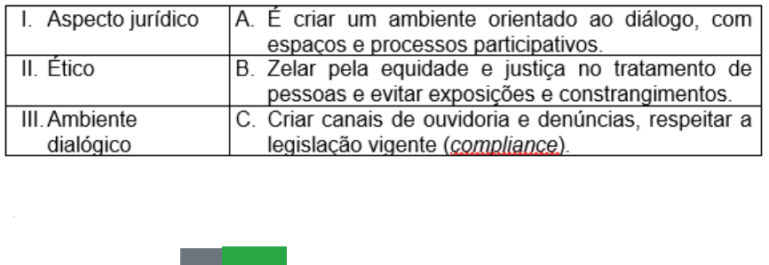 Sobre os pilares de uma política de Gestão Humanizada de Gente, leia e associe as duas colunas: Assinale a alternativa que traz a associação correta entre as duas colunas: · I-C; II-B; III-A. checkCORRETO image1.png