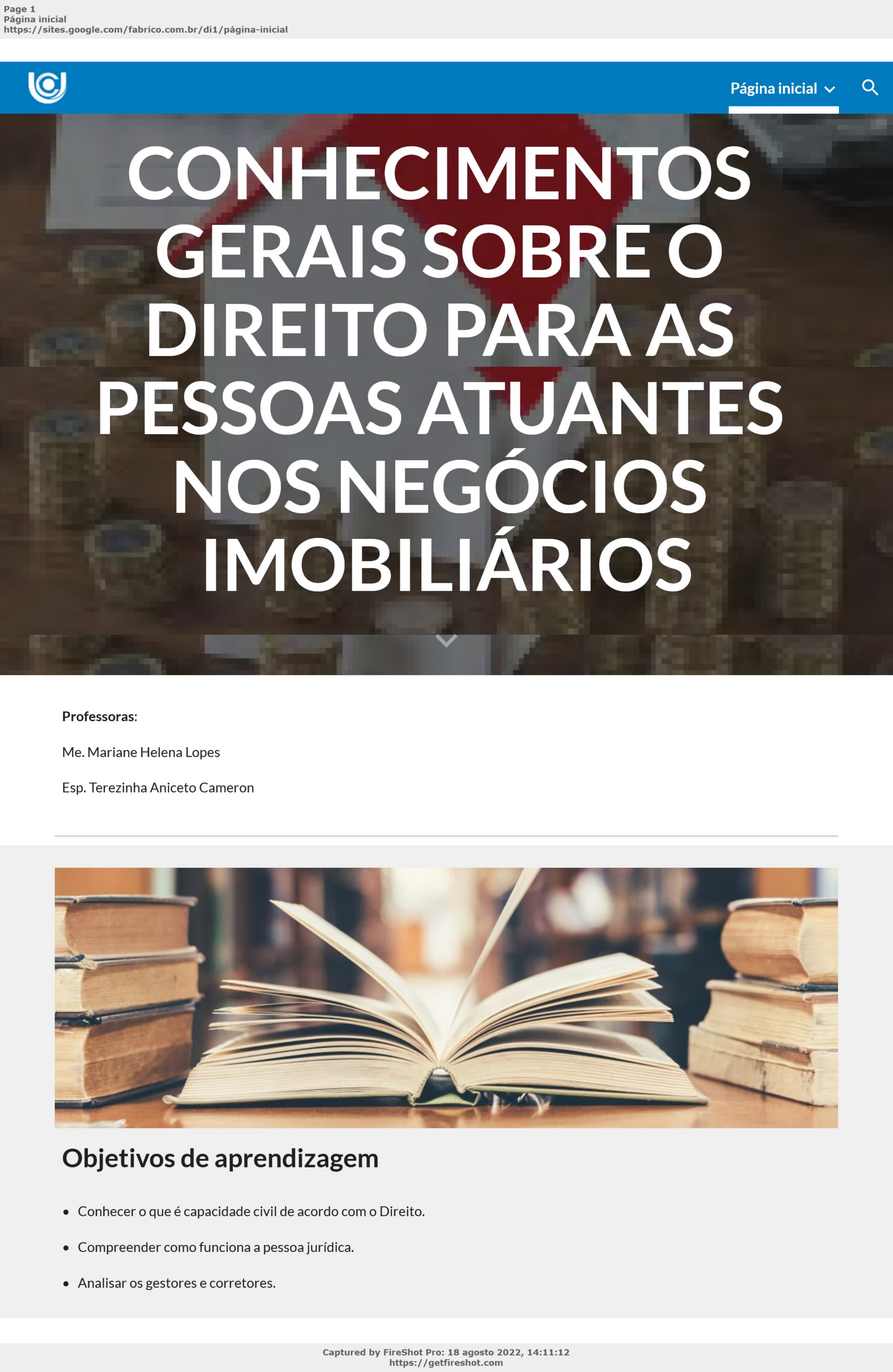 Página inicial Pular para o conteúdo principal Pular para a navegação CONHECIMENTOS GERAIS SOBRE O DIREITO PARA AS PESSOAS ATUANTES NOS NEGÓCIOS IMOBILIÁRIOS Professoras : Me. Mariane Helena Lopes Esp. Terezinha Aniceto Cameron Objetivos de aprendizagem • Conhecer o que é capacidade civil de acordo com o Direito. • Compreender como funciona a pessoa jurídica. • Analisar os gestores e corretores. https://sites.google.com/fabrico.com.br/di1/p�gina-inicial https://getfireshot.com https://sites.google.com/fabrico.com.br/di1/p%C3%A1gina-inicial https://sites.google.com/fabrico.com.br/di1/p%C3%A1gina-inicial Plano de estudo A seguir, apresentam-se os tópicos que você estudará nesta unidade: • Capacidade Civil • Pessoa Jurídica • Gestores Imobiliários e Corretores Introdução Nesta unidade iremos estudar tópicos introdutórios do Direito, com o intuito de facilitar o conhecimento sobre a área que será estudada nesta disciplina. Inicialmente é preciso falar o que é a capacidade civil. Esta está diretamente atrelada à personalidade da pessoa. Dessa forma, antes de se falar propriamente na capacidade do indivíduo é preciso compreender o que vem a ser a personalidade para o Direito. Após essa conceituação, falaremos de cada uma das formas de capacidade civil. Por ela será possível classificar os sujeitos, bem como se os mesmos podem ou não realizar negócios sozinhos. É a partir desse tópico que poderemos entender melhor como funcionam os casos de interdição, ou seja, quando posso solicitar que o juiz determine que uma pessoa não pode realizar nenhum ato da vida civil. Feito o estudo sobre a pessoa física, iremos estudar a pessoa jurídica. Como veremos, a pessoa jurídica é uma ficção, criada pelos indivíduos com o intuito de limitar a responsabilidade, bem como o patrimônio da pessoa física e da pessoa jurídica. Após, a análise das pessoas jurídicas, passaremos a estudar a incapacidade das pessoas civis, ou seja, de que forma uma pessoa deixará de responder pelos atos da vida civil e quem poderá responder pelo o mesmo. Feita essa introdução, verificaremos quais os documentos necessários para que uma pessoa possa ser vendedor, ou melhor, corretor de imóveis. Além disso, analisaremos que a profissão ainda não é reconhecida, não existindo uma regulamentação específica sobre a mesma. De fato, o COFECI acaba regulamentando a atividade, mas nada que seja reconhecido. Dessa forma, fica evidente a importância no tema estudado para o contrato de corretagem, que é aquele realizado entre o interessado (cliente) e o corretor (mediador). https://sites.google.com/fabrico.com.br/di1/p�gina-inicial https://getfireshot.com Assim, nesta unidade trataremos de conceitos introdutórios com o intuito de conhecer melhor o direito, bem como o funcionamento do mesmo para regulamentação da atividade na sociedade. Além disso, poderemos perceber de que forma o próprio indivíduo é protegido pelo nosso ordenamento jurídico. Avançar DOWNLOAD PDF UNICESUMAR | UNIVERSO EAD https://sites.google.com/fabrico.com.br/di1/p�gina-inicial https://getfireshot.com https://sites.google.com/fabrico.com.br/di1/p%C3%A1gina-inicial/unidade-1 https://drive.google.com/file/d/1ahMZNy7DZBWp-SJLKzdg-yHsND_yC72x/view?usp=sharing Página inicial Pular para o conteúdo principal Pular para a navegação CAPACIDADE CIVIL O Art. 1º do Código Civil dispõe que: “todo homem é capaz de direitos e deveres na ordem civil”. Os animais são excluídos de seu raio de ação. Existem leis específicas de proteção aos seres irracionais. Eles são tomados em consideração apenas para fins sociais, pela necessidade de se elevar o sentimento humano, evitando-se o espetáculo degradante de perversa brutalidade (O Art. 1º do Código Civil). Assim, a pessoa natural é o ser humano provindo da mulher e o início da personalidade civil pode começar de duas formas: 1º) do nascimento com vida; 2º) da concepção do feto, ou seja, da divisão celular. Dependerá do autor para saber como ele considera o início da personalidade. Independente de qual forma se entende o início da personalidade, o nascituro é um sujeito de direito, podendo, pelo Art. 2º do Código Civil, receber doações e legados, bem como ser adotado e legitimado. A partir do momento em que o indivíduo adquire personalidade, é sujeito de direitos e obrigações. Essa capacidade pode ser definida como “a aptidão determinada pela ordem jurídica para gozo e exercício de um direito por seu titular” (MARTINS, 2013, p. 224). O Art. 1º do Código Civil prevê que “toda pessoa é capaz de direitos e deveres na ordem civil”, implicando a capacidade de ser parte. Existem duas espécies de capacidade. São elas: a de gozo ou de direito e a de exercício ou de fato. A primeira é a aptidão da pessoa gozar seus direitos. Ela é inerente ao ente humano e toda pessoa a possui enquanto a segunda é a aptidão de exercitar direitos. A capacidade no Direito Civil é dividida em: 1) absolutamente incapazes; 2) relativamente capazes e; 3) plenamente capazes ou capacidade absoluta. Os absolutamente incapazes devem ser representados por seus pais ou guardiões e não podem exprimir sua vontade. De acordo com o Art. 3º do Código Civil, até o ano de 2015 eram os absolutamente incapazes: a. Os menores de 16 anos; b. Os que, por enfermidade ou deficiência mental, não tiverem o necessário discernimento para a prática desses atos; c. Os que, mesmo por causa transitória, não puderem exprimir sua vontade. É o que ocorre com a pessoa embriagada ou com alguém entorpecido por drogas alucinógenas. https://sites.google.com/fabrico.com.br/di1/p�gina-inicial/unidade-1 https://getfireshot.com https://sites.google.com/fabrico.com.br/di1/p%C3%A1gina-inicial https://sites.google.com/fabrico.com.br/di1/p%C3%A1gina-inicial Contudo, no ano de 2015, foi sancionada a Lei nº 13.146, que trouxe modificações com relação 