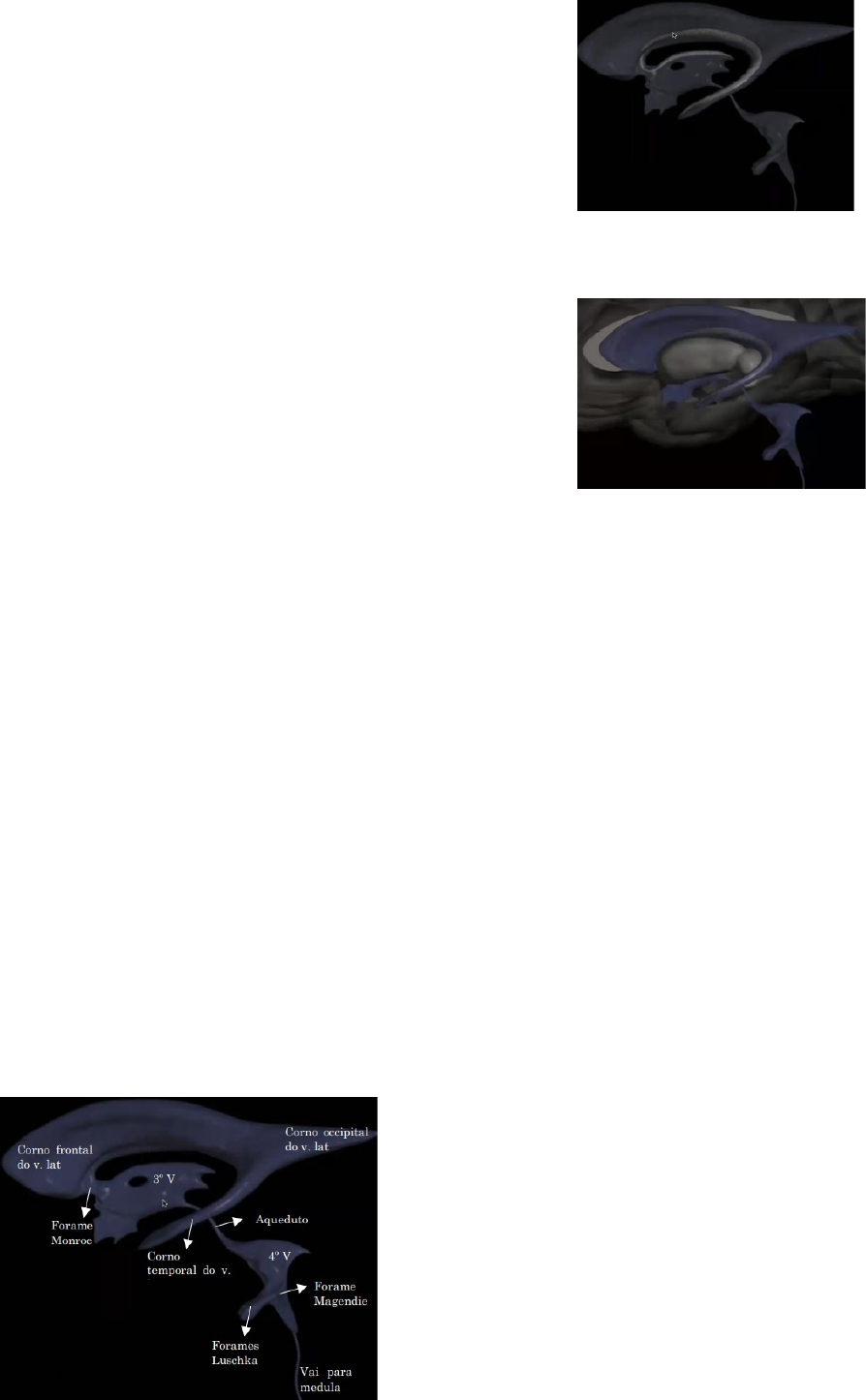 HIDROCEFALIA Dilatação ventricular associada a quadro de hipertensão intracraniana, devido ao desequilíbrio da produção e absorção do LCR · Aumento do perímetro cefálico (especialmente em crianças, por conta das fontanelas) · Aumento da produção de LCR: tumores de plexo coróide · Alteração da absorção: bloqueio nas granulações aracnóides · Alteração no fluxo do LCR: acumula nos ventrículos · Para ser hidrocefalia, precisa de dilatação ventricular + hipertensão intracraniana!! → nem toda dilatação ventricular é hidrocefalia DILATAÇÃO VENTRICULAR: · Pode ocorrer em idosos, pois ventrículo não dilata porque tem mais líquor, mas sim, porque o parênquima atrofia e o ventrículo se torna maior · TCE grave que faz uma atrofia cerebral e dilata o ventrículo, não obrigatoriamente isso tenha que ser uma hidrocefalia · Criança com hipóxia neonatal importante e que faz uma lesão cerebral difusa, a cabeça não cresce, faz uma microcefalia. Dilatação, então, não é por hipertensão do ventrículo, mas sim pois o cérebro é doente e faz uma atrofia ANATOMIA DO SISTEMA VENTRICULAR:: · Ventrículos laterais produz LCR, pois tem plexo coróide · Forame de Monro: 2 Monros fazem ligação entre os ventrículos laterais e o 3º ventrículo que é único · III ventrículo: produz LCR, pois tem plexo coróide · Aqueduto cerebral: fica dentro do tronco cerebral · IV ventrículo: fica na porção mediana do cerebelo · Forames de Luschka e Magendie: Luschka são dois laterais e Magendie é um media Plexo coróide destacado: Tálamo: lateral ao 3° ventrículo Corpo caloso: entre 2 ventrículos laterais FISIOLOGIA DO LCR: · Líquor é o que circula dentro do sistema ventricular, por toda a medula espinhal e até o encéfalo, no espaço subaracnóide · Tem uma constituição de água, íons (Na/K), glicose e proteínas, sendo sua coloração normal conhecida como “cor de água de rocha”, ou seja, é transparente · Celularidade, aumento de proteínas e alteração da glicose são patológicos, como acontece nas meningites · Adultos produzem cerca de meio litro de LCR por dia (400- 600 ml/dia), nos plexos coróides, o que equivale a uma produção de 15-25 ml/ hora · A cada 24 horas esse LCR é renovado, ou seja, acontecem ciclos de produção e absorção · *Absorção acontece nas vilosidades aracnóides (granulações de Pacchioni), por gradiente de pressão hidrostática (ocorre através do endotélio das vilosidades coroideas) e pela reabsorção linfática · Sistema de pressão hidrostática dependente entre o LCR e o seio venoso, com formação transitória de vacúolos no epitélio aracnóide para transportar o LCR através da barreira hematoencefálica (tight junctions) ** em HSA ou meningite → bloqueia granulações aracnóideas → dificulta absorção do líquor → hidrocefalia → isso vai aumentando dentro do cérebro, pode fazer um quadro de aumento da PIC, lesiona o doente e muitas vezes pode ser fatal DINÂMICA LIQUÓRICA: Produção no plexo coróide, nos ventrículos laterais → forame Monroe → terceiro ventrículo → aqueduto (dentro do tronco cerebral) → 4º ventrículo → forames de Luschka e de Magendie → medula E espaço subaracnóide → reabsorção nas granulações aracnóideas → sistema venoso FISIOPATOLOGIA: · Na hidrocefalia há um desequilíbrio entre produção/absorção OU desequilíbrio do fluxo do LCR dentro do sistema ventricular · Associado a isso, uma complacência cerebral limitada = não suporta grandes inchaços → aumento da pressão intracraniana Causas: Dentro do sistema ventricular: · Estenose aqueduto · Tumores intraventriculares Fora do sistema ventricular · Tumores medulares = líquor não vai para baixo · Chiari tipo I = alteração da fossa posterior → invaginação da base do crânio, o que causa deformidade do tronco e pode fazer hidrocefalia · Bloqueio dos espaços liquóricos → ex: meningite Restrição do volume dos espaços meníngeos/ perda da elasticidade meníngea · Meninge mais endurecida · Cranioestenoses complexas = solidificação de crânio de criança e não deixa a cabeça crescer, faz restrição do volume do espaço meníngeo e acumula líquor · Hipoplasia craniana: crânio que não desenvolve · Inflamação: doentes que fazem processo inflamatório tão grande que o espaço meníngeo é limitado por cicatrização Alteração dos gradientes de pressão: · Hipertensão venosa - não se consegue fazer a troca entre a veia e o plexo coróide e, pela maior pressão, dilata · **sempre se entendeu hidrocefalia como: alteração do fluxo de líquor OU aumento da produção (tumor de plexo coróide) OU diminuição da absorção (HSA, meningite) · Novos estudos falam que a hidrocefalia é uma doença causada por distúrbios do LCR nos diversos compartimentos que existem no SNC → alteração da migração do líquor para o sistema ventricular e espaço subaracnóide → não apenas relacionado a circulação do líquor · Alguns fatores que indicam que isso pode acontecer: o LCR pode ser produzido e reabsorvido através da relação LCR com fluido intersticial (ou seja, pode acontecer em todas as partes do SNC) → como a relação com o sistema linfático, absorção do líquor nos capilares nas paredes do SNC (não só nas granulações aracnóideas) · Assim, o deslocamento do LCR nos espaços liquóricos pode não ocorrer num fluxo unidirecional e sim, pelos movimentos que ocorrem entre os diversos compartimentos anatômicos que contém LCR Por que a hidrocefalia causa problema? Distorção das relações anatômicas normais entre as estruturas cerebrais: Ventrículo dilatado → comprime todo o parênquima cerebral: · Ocorre compressão da dura-máter (dor) · De pares cranianos (VI par) · Tronco cerebral (compressão do SRAA – sistema reticular ativador ascendente) · Pode fazer herniação → coma e alteração dos níveis de consciênci