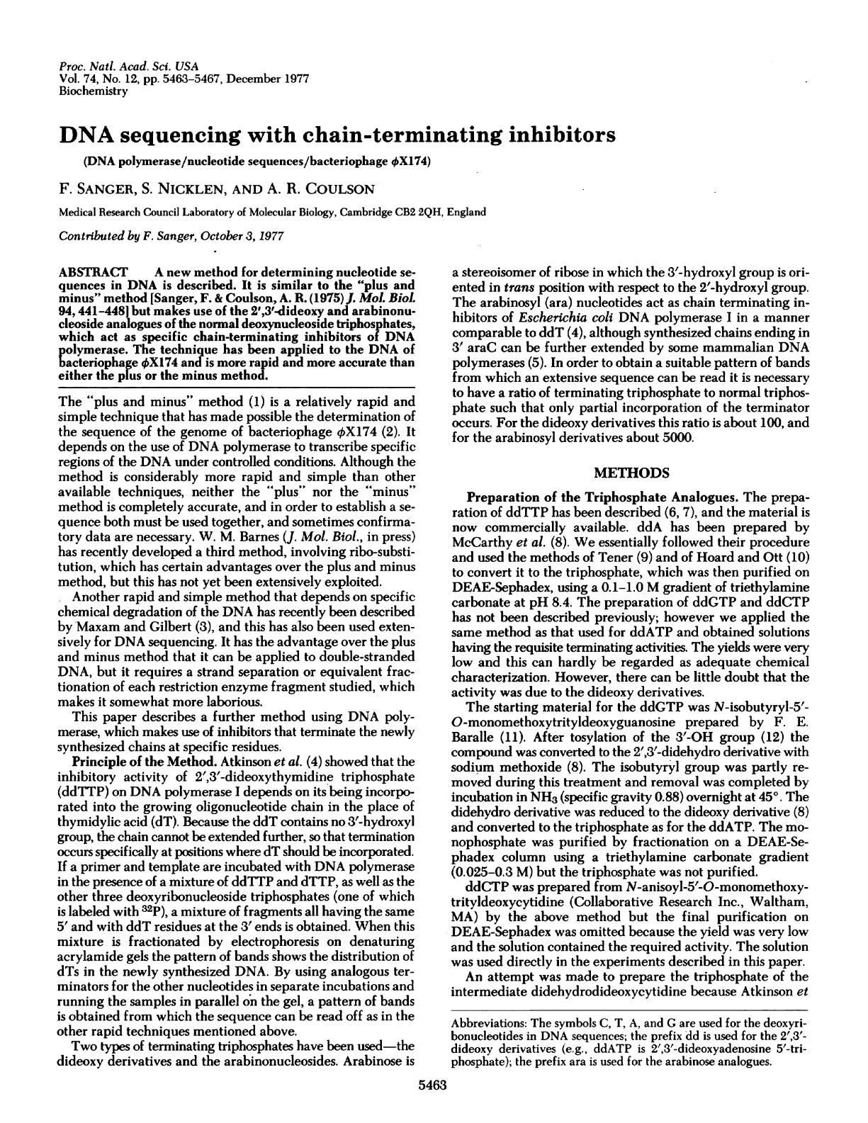 F. SANGER, S. NICKLEN, AND A. R. COULSON