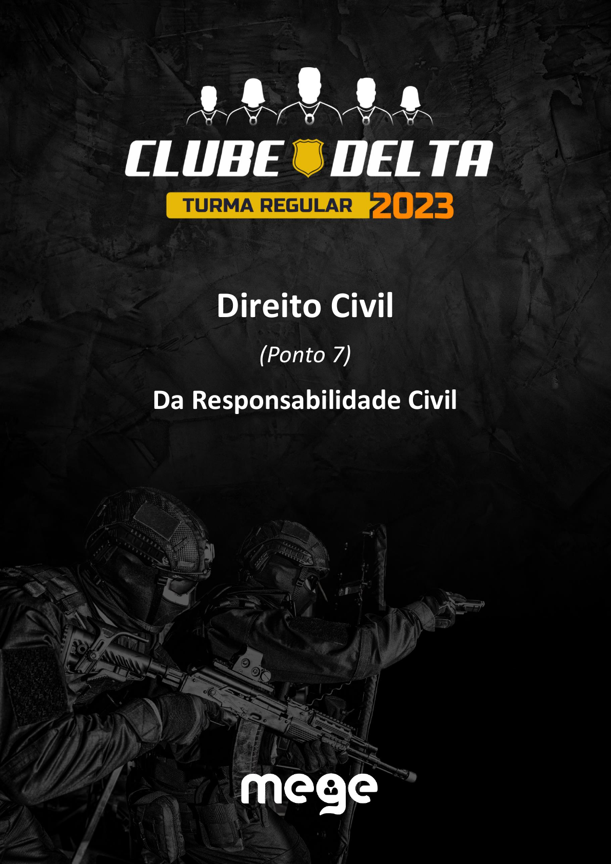 CPF: 860.542.154-18 PACHEGO GONÇALVES | 9999999999 | alesantosf2020@gmail.com | CPF: 860.542.154-18 É proibida a reprodução deste material sem a devida autorização, sob pena da adoção das medidas cabíveis na esfera cível e penal. 1 1 Direito Civil (Ponto 7) Da Responsabilidade Civil CPF: 860.542.154-18 PACHEGO GONÇALVES | 9999999999 | alesantosf2020@gmail.com | CPF: 860.542.154-18 É proibida a reprodução deste material sem a devida autorização, sob pena da adoção das medidas cabíveis na esfera cível e penal. 2 2 CURSO MEGE Site para cadastro: www.mege.com.br Celular / Whatsapp: (99) 98262-2200 (Tim) Turma: Clube Delta Material: Direito Civil (Ponto 7) Direito Civil (Ponto 7) Da Responsabilidade Civil CPF: 860.542.154-18 PACHEGO GONÇALVES | 9999999999 | alesantosf2020@gmail.com | CPF: 860.542.154-18 É proibida a reprodução deste material sem a devida autorização, sob pena da adoção das medidas cabíveis na esfera cível e penal. 3 3 SUMÁRIO CONTEÚDO PROGRAMÁTICO DA RODADA ...................................................................... 4 1. DOUTRINA (RESUMO) ................................................................................................... 5 1.1. CONCEITO DE RESPONSABILIDADE CIVIL .................................................................. 5 1.2. ELEMENTOS DA RESPONSABILIDADE CIVIL ............................................................... 8 1.3. RESPONSABILIDADE CIVIL INDIRETA ....................................................................... 22 1.4. RESPONSABILIDADE CIVIL PELO FATO DA COISA .................................................... 23 1.5. RESPONSABILIDADE OBJETIVA SOBRE O ANIMAL (ART. 936) ................................. 24 1.6. RESPONSABILIDADE OBJETIVA POR RUÍNA DO EDIFÍCIO (ART. 937) ...................... 24 1.7. RESPONSABILIDADE POR OBJETO CAÍDO OU LANÇADO DE PRÉDIO (ART. 938)..... 24 1.8. ANALOGIA DA JURISPRUDÊNCIA PARA TODAS AS HIPÓTESES DE COISAS PERIGOSAS ...................................................................................................................... 24 1.9. RESPONSABILIDADE CIVIL NO CONTRATO DE TRANSPORTE .................................. 25 1.10. EXCLUDENTES DA RESPONSABILIDADE CIVIL ........................................................ 25 1.11. VALOR DA INDENIZAÇÃO E A QUANTIFICAÇÃO DO DANO ................................... 28 2. JURISPRUDÊNCIA ........................................................................................................ 30 3. QUESTÕES ................................................................................................................... 42 4. GABARITO COMENTADO ............................................................................................ 49 CPF: 860.542.154-18 PACHEGO GONÇALVES | 9999999999 | alesantosf2020@gmail.com | CPF: 860.542.154-18 É proibida a reprodução deste material sem a devida autorização, sob pena da adoção das medidas cabíveis na esfera cível e penal. 4 4 CONTEÚDO PROGRAMÁTICO DA RODADA (Conforme Edital Mege) DIREITO CIVIL Da Responsabilidade Civil. CPF: 860.542.154-18 PACHEGO GONÇALVES | 9999999999 | alesantosf2020@gmail.com | CPF: 860.542.154-18 É proibida a reprodução deste material sem a devida autorização, sob pena da adoção das medidas cabíveis na esfera cível e penal. 5 5 1. DOUTRINA (RESUMO) 1.1. CONCEITO DE RESPONSABILIDADE CIVIL Surge em face do descumprimento obrigacional, pela desobediência de uma regra estabelecida em um contrato ou por deixar determinada pessoa de observar um preceito normativo que regula a vida. Em sua origem, não havia distinção entre a responsabilidade penal e a responsabilidade civil. Nos primórdios do desenvolvimento da noção de responsabilidade, o dano era suficiente para justificar a reação do ofendido, que não conhecia limites e se baseava na vingança privada. O mal reparava-se com o mal, segundo a apelidada Lei do Talião. Mais tarde, a vingança foi substituída pela composição econômica, mas ainda não se cogitava a culpa, bastando o dano para justificar o direito à indenização. Foi assim que se chegou à Lei das XII Tábuas, no Direito Romano. Posteriormente, surge a ideia de distinção entre os delitos públicos mais graves e perturbadores da ordem pública e os delitos privados, que atingiam predominantemente a esfera do particular. Atualmente, é possível distinguir a responsabilidade penal da responsabilidade civil a partir de algumas de suas principais características, conforme descrito no quadro a seguir: Responsabilidade Penal Responsabilidade Civil Pressupõe uma turbação social, determinada pela violação de norma penal. Predomínio do dano privado, embora também haja perturbação de ordem social. Do ilícito penal decorre a pena. Do ilícito civil decorre o dever de indenizar. A sanção tem por fim predominante restabelecer a ordem social. A reparação tem por fim preponderantemente reintegrar o prejudicado na situação patrimonial anterior, tanto quanto possível. O ilícito penal acarreta a coação pessoal. O ilícito civil acarreta a coação patrimonial. O ilícito penal deve estar tipificado para que seja apto a gerar a responsabilidade do agente. O ilícito civil é aberto, a depender do caso concreto. Segundo Sérgio Cavalieri Filho, a responsabilidade civil é um dever jurídico sucessivo que surge para recompor o dano emergente da violação de um dever jurídico originário. CPF: 860.542.154-18 PACHEGO GONÇALVES | 9999999999 | alesantosf2020@gmail.com | CPF: 860.542.154-18 É proibida a reprodução deste material sem a devida autorização, sob pena da adoção das medidas cabíveis na esfera cível e penal. 6 6 O termo “dever jurídico sucessivo” é utilizado por Cavalieri Filho para esclarecer que há um dever jurídico originário (ou primário), que é o de não lesar a ninguém, cuja violação gera um dever jurídico sucessivo (ou secundário), que é a obrig
