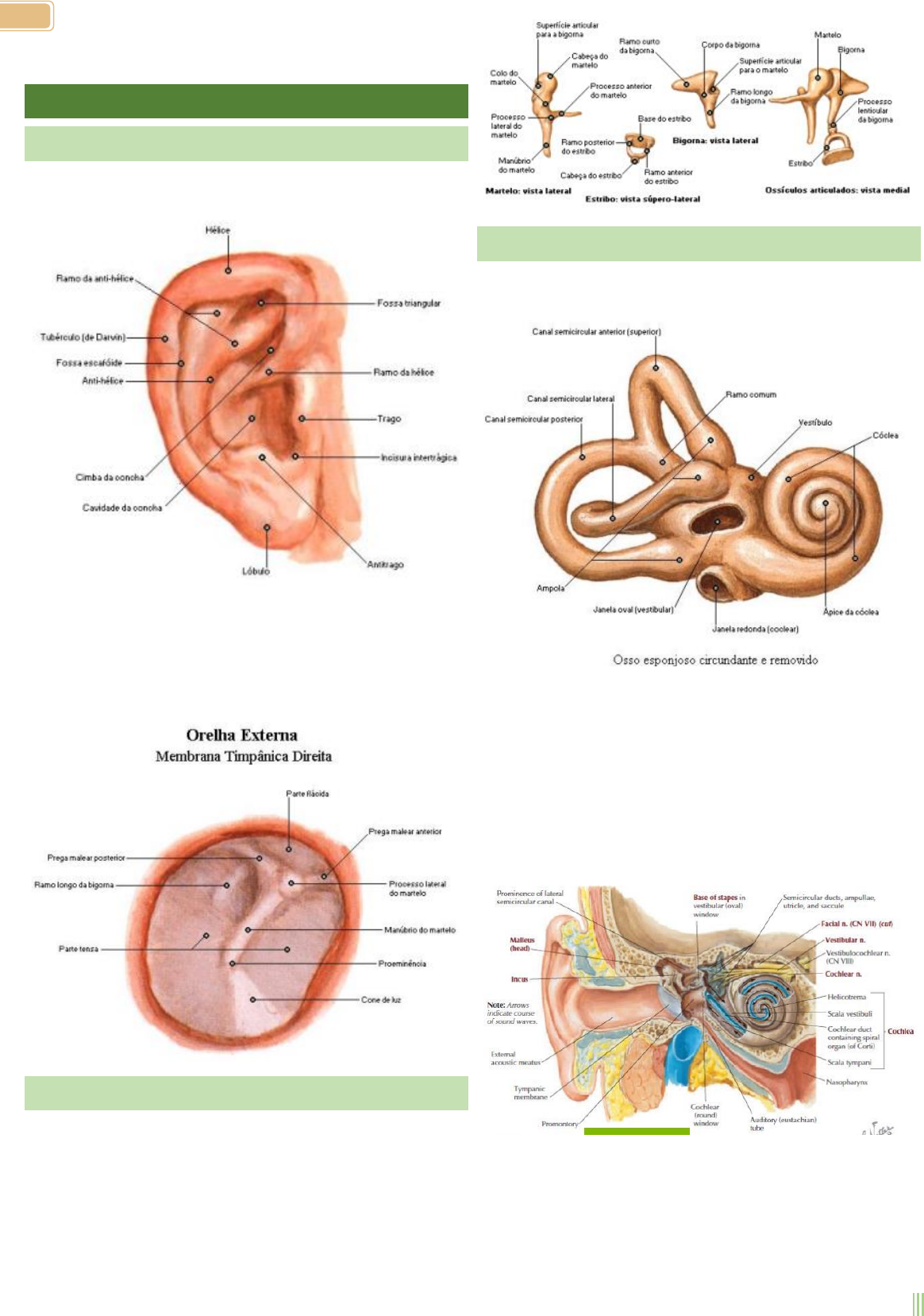 STABACH, Thiago 1 M1 OTORRINOLARINGOLOGIA REVISÃO DE ANATOMIA ORELHA ORELHA EXTERNA Orelha externa → pavilhão e conduto auditivo externo até chegar ao tímpano (parte externa) Membrana timpânica: • Translúcida, maleável, côncava • Martelo e bigorna são ossículos possíveis de ver na otoscopia ORELHA MÉDIA Orelha média → atrás dos tímpanos, contendo os ossículos • Martelo, bigorna e estribo ORELHA INTERNA Orelha interna → Cóclea (faz duas voltas e meia) e labirinto • Nervo facial passa acima do labirinto. • Nervo vestibulococlear se divide em ramo vestibular (inerva labirinto) e coclear (inerva a cóclea) Se tem problema de audição investiga também o labirinto e vice versa • Tuba auditiva ou tuba de Eustáquio Vestibulopatia ou labirintopatia é o nome verdadeiro da famosa “labirintite”. Não devemos falar labirintite pois se trata de uma infecção grave que geralmente leva a morte STABACH, Thiago 2 NARIZ • Osso nasal • Septo nasal (cartilagem no terço anterior e osso no terço posterior) • Corneto inferior, médio e superior (algumas pessoas não tem o superior) • Os cornetos filtram, aquecem e umidificam o ar • Vibrissas • Vestibulite → alteração na entrada do nariz • Meato nasal inferior e médio • Rinofaringe • Óstio da tuba auditiva • Adenoide • Adenoide aumentada tampa o canal da tuba auditiva, diminuindo a audição Doença de hipófise (adenoma por exemplo) pode fazer cirurgia através do nariz com abertura no seio esfenoidal • Palato duro e palato mole • Seio maxilar, etmoidal, frontal e esfenoide Os seios da face servem para ajudar na sustentação da cabeça, diminuindo o peso • O ar passa pelos seios PESCOÇO • Músculos • Glândula submandibular • Parótida • Vasos • Cartilagem tireoide • Cartilagem cricóide • Glândula tireoide • Cartilagem epiglótica STABACH, Thiago 3 Supraglote / glote (região de pregas vocais) / subglote • Abaixo da cricoide já temos traqueia STABACH, Thiago 4 EXAME FÍSICO GARGANTA, NARIZ, OUVIDO EXAME DA OROFARINGE • Abre a boca, coloca o palito e pede para falar “éééé” • Não se coloca a língua para fora • Observa a língua, mucosa, palatos, úvula, bem como faz avaliação da mordida • Amigdalas (entre o palatoglosso e o palatofaríngeo). Divididas em graus I, II, III e IV • ANEL DE WALDEYER (conjunto das tonsilas: faríngea, palatina, lingual e tubária). A retirada de tonsilas palatinas não compromete a capacidade de proteção contra agentes estranhos, pois as outras tonsilas suprem esta falta EXAME DO NARIZ: • Espéculo e lanterna Em queixa de voz e rouquidão → devemos examinar a laringe ÁREAS DA OTORRINO • Otologia • Rinologia STABACH, Thiago 5 • Otorrinopediatria • Otoneurologia • Laringologia • Foniatria • Medicina do sono • Plástica facial LIVROS • Tratado de otorrino • Rotinas em otorrino • Seminários USP DISFONIA INTRODUÇÃO LARINGE • Órgão impar localizado na região cervical ventral mediana • Faz parte das vias aerodigestórias superiores A supraglote é composta pela epiglote, pelas pregas ariepiglóticas (que contêm os músculos ariepiglóticos e as cartilagens corniculadas e cuneiformes), pelas bandas ventriculares (falsas pregas vocais) e pelos ventrículos de Morgagni. A glote contém as pregas vocais, incluindo a comissura anterior e posterior, e divide-se em duas porções: a fonatória (porção intermembranosa ou anterior) e a respiratória (porção intercartilaginosa ou posterior). A porção fonatória se insere anteriormente na cartilagem tireóidea por meio do tendão da comissura anterior e a inserção posterior se dá no processo vocal da cartilagem aritenoide. O plano horizontal da glote possui aproximadamente 1 cm de altura. A subglote, por sua vez, é a região que compreende o limite inferior da glote até a borda inferior da cartilagem cricoidea. Inferiormente, este conjunto se conecta à traqueia. CARTILAGENS A laringe é formada por nove cartilagens unidas por membranas e ligamentos. Três são ímpares (epiglote, tireoide e cricoide) e três são pares (aritenoides, corniculadas e cuneiformes). • A epiglote tem a forma de uma folha e se localiza dorsalmente à base da língua e ventralmente ao ádito laríngeo, sendo fixada à porção mediana do osso hioide e à STABACH, Thiago 6 cartilagem tireoide pelos ligamentos hio- epiglótico e tireo-epiglótico. • A tireoide tem formato de escudo e é a maior cartilagem da laringe. Apresenta duas lâminas que se fundem ventralmente em ângulo diedro na linha média do pescoço, estabelecendo a proeminência laríngea, ou pomo de Adão. O conhecimento preciso da projeção da prega vocal sob a lâmina da cartilagem tireoide é de extrema importância para o sucesso da cirurgia de tireoplastia tipo I. • A cartilagem cricoide é um anel completo que se articula com as aritenoides pela articulação cricoaritenoidea e com a tireoide pela articulação cricotireoidea. • As aritenoides se situam sobre a borda posterior da lâmina da cricoide e exibem formato de uma pirâmide triangular. Apresentam duas projeções: uma apófise ventral ou interna, o processo vocal, onde se insere o ligamento vocal, e uma apófise dorsal ou externa, o processo muscular, onde se inserem os músculos cricoaritenoideos posterior e latera. • Sobre a aritenoide e a prega ariepiglótica encontram-se as cartilagens corniculadas e cuneiformes. O osso hioide, ímpar, em formato de ferradura, é quem exerce a função de suporte e suspensão de todo esse conjunto. MUSCULATURA Os músculos da laringe se dividem em extrínsecos (entre a laringe e os órgãos adjacentes) e intrínsecos (entre estruturas internas). Músculos extrínsecos: • Externamente ao arcabouço laríngeo estão os músculos tireohioideo, estilohioideo, milohioideo, digástrico, estilofaríngeo e palatofaríngeo, os quais são levantadores da laringe. • Dentre os abaixador