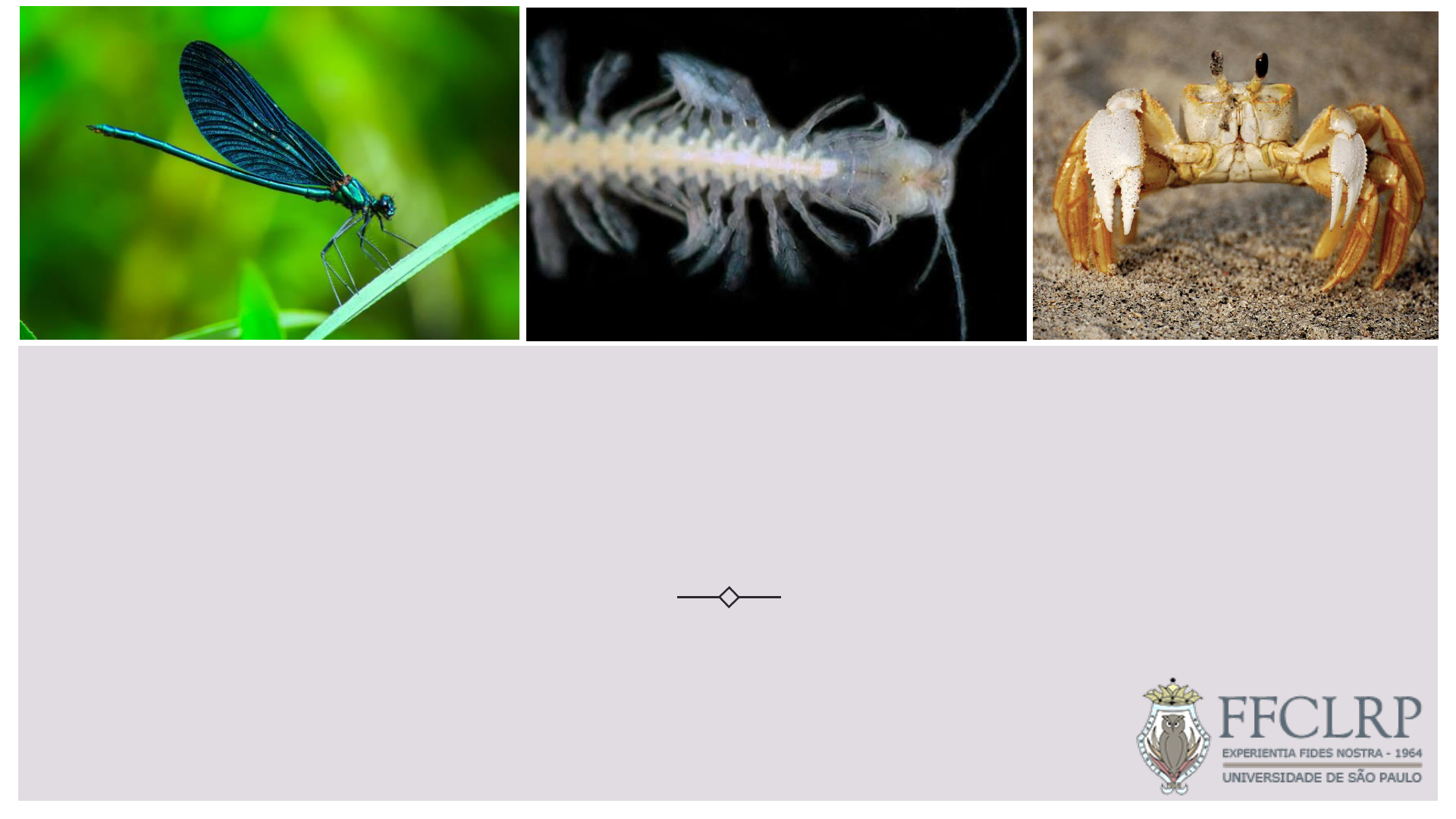 FILO ARTHROPODA Pancrustacea Zoologia II Docentes: Felipe B. Ribeiro e Régis A. Pescinelli Crustáceos x outros artrópodes Crustacea como subfilo de Arthropoda... Giribet & Edgecombe (2019) Subfilo Pancrustacea: Hexapoda + “Crustacea” Tetraconata: quatro células cone nos omatídeos + Neuroblastos e axonogênese 5Regier et al. (2005) “MAXILLOPODA” Richter (2002) Subfilo Pancrustacea: Hexapoda + “Crustacea” ou Tetraconata 6 Pancrustacea ou Tetraconata - Omatídeos compostos de duas células corneanas (duas células de pigmentos primários em hexápodes), quatro cones do cristalino (células de Semper) e oito células da retina e um número variável de células de pigmento acessórias cercam o omatídeo; SINAPOMORFIAS Pancrustacea ou Tetraconata - Presença de Neuroblastos e neurogênese similar SINAPOMORFIAS Pancrustacea ou Tetraconata - Semelhanças na Axonogênese; - A posição do corpo celular, direção e tempo relativo do crescimento do axônio, a morfologia e as ramificações podem ser indicadores de homologia; - Desenvolvimento prévio dos apêndices anteriores da cabeça durante o estágio de larva naupliar. SINAPOMORFIAS Subfilo Pancrustacea: Hexapoda + “Crustacea” ou Tetraconata 10 von Reumont et al. (2012) “Devido ao impacto de peixes predatórios, a linhagem ancestral se desloca até a zona litoral, ramificando-se, com os ancestrais de Branchiopoda evoluindo em locais de água doce efêmera, os ancestrais de Remipedia evoluindo em formações anquialinas, e os ancestrais de Hexapoda evoluindo em terra seca” Schwentner et al. (2017)Oakley et al. (2012) Giribet & Edgecombe (2019) Lozano-Fernandez et al. (2019) Bernot et al. (2023) PANCRUSTACEA Crustáceos 17 “Nenhum grupo de plantas ou de animais no planeta apresenta a amplitude de diversidade morfológica observada entre os crustáceos atuais.” (Martin and Davis, 2001) Riqueza Cephalocarida 13 Branchiopoda ±1180 Remipedia 27 Tantulocarida 36 Mystacocarida 13 Thecostraca ±1400 Copepoda ±16 000 Branchiura ±200 [Pentastomida 130] Ostracoda ±7600 Malacostraca ±40 000 30.000 spp. Forest (1969); 40.000 spp. Heywood & Watson (1995) 52.000 spp. Martin & Davis (2001) 68.000 spp. Brusca & Brusca (2003) 70.000 spp. Brusca et al. (2018) 72.000 spp. Brusca et al. (2022) - Cerca de 300 spp. descritas a cada ano; Os extremos: 1. Tamanho 0.1 mm = Stygotantulus stocki (Tantulocarida) ectoparasita de Copepoda Até 65 cm/20 kg = Homarus americanus (Decapoda – Astacidea) lagosta americana Até 50 cm/4kg = Astacopsis gouldi (Decapoda – Astacidea) lagostim da tasmânia Até 4m de extensão de pernas = Macrocheira kaempferi (Decapoda – Brachyura) Caranguejo-aranha japonês Os extremos: 2. Temperatura 0° ou abaixo: Aegla (Anomura) e Parastacus (Astacidea) Fontes hidrotermais: 150 – 400°C Animais: 10-50° Brachyura, Caridea e Anomura Aegla jarai Parastacus fluviatilis Os extremos: 3. Altitude x Profundidade Eucypris (Ostracoda) Hyalella curvispina (Amphipoda) - Acima de 4.000 m - Até 10.000 m; - Halice (Amphipoda) Branchinecta brushi Chile – 5930 m Os extremos: Artemia salina (Branchiopoda – Anostraca) 4. Salinidade Um pouco de história... Único grupo de artrópodes no mar, onde sua radiação foi tão extensiva como a dos outros grupos de artrópodes terrestres; Anfípodos marinhos x insetos; Colonização terrestre mais recente que os outros grupos de artrópodos; Nenhum fóssil de crustáceo terrestre foi encontrado datando de antes do Terciário (60Mia); (Hay, 1987; Alastair & Araujo, 2015) Habitats 1. O ambiente oceânico 1.1. Zona Costeira PRAIAS ROCHOSAS/RECIFES DE ARENITO/COSTÕES ROCHOSOS PRAIAS ARENOSAS Emerita (Anomura) Eurydice (Isopoda) Clibanarius antillensis (Anomura) Eriphia gonagra (Brachyura) Chtamalus (Cirripedia) MANGUEZAIS Ucides cordatus (Brachyura) Clibanarius symmetricus (Anomura) Habitats 1. O ambiente marinho 1.1. Zona Costeira FORMAS LIGNÍCOLAS E PETRÍCOLAS Sphaeroma terebrans (Isopoda – Sphaeromatidea) Cirripedia - Acrothoracica Schematic drawings of burrows of parental female Sphaeroma terebrans in aerial roots of Rhizophora mangle containing very young juvenile stages (A), older juvenile stages (B), and subadults remaining from a previous cohort (C). Limnoria lignorum (Isopoda – Limnoriidea) FORMAS OCUPANTES DE OBJETOS OU TUBÍCOLAS Tanaidacea - Pagurapseudidae Dardanus venosus (Diogenidae) ANOMURA – PAGUROIDEA - ermitões Porcellanopagurus (Paguridae) Discorsopagurus (Paguridae) Hypoconcha - Brachyura Pylopagurus (Paguridae) Tanaidacea Pylocheles (Pylochelidae) Habitats 1. O ambiente marinho 1.1. Zona Costeira ESCAVADORES Ocypode quadrata (Brachyura) Uca (Brachyura) Kornienko (2102) Axiidea e Gebiidea Habitats 1. O ambiente marinho 1.1. Zona Costeira MEIOFAUNA Mystacocarida Callinectes sapidus (Brachyura) Remipedia Copepoda - Harpacticoida ASSOCIADOS A ALGAS E MACRÓFITAS CAVERNAS ANQUIHALINAS Amphipoda Habitats 1. O ambiente marinho 1.1. Zona Costeira Mystacocarida Copepoda - Harpacticoida Bathynomus giganteus (Isopoda) Kiwa “yeti-crab” (Anomura) Pentacheles (Polychelida) Parapagurus (Anomura) Amphipoda Habitats 1. O ambiente marinho 1.2. Mar profundo Habitats 2. O ambiente dulcícola Hyalella azteca (Amphipoda) Parastacus (Astacidea) Macrobrachium (Caridea) A maioria das espécies de eglídeos vivem nos leitos de arroios, rios e lagos, sob pedras no substrato, em águas límpidas e bem oxigenadas. Também podem ser encontrados em cavernas e ambientes límnicos de altitude Evoluções independentes; Infraordem Brachyura: Caranguejos de água doce Trichodactylidae Trichodactylus sp. Pseudotelphusidae Pseudotelphusa sp. Potamonautidae Potamonautes sp. Gecarcinucidae Potamidae Cardisoma guanhumi Potamon sp. Tsang et al. (2014) 32 Metopaulias depressus caranguejo das bromélias Kingsleya attenboroughi – caranguejo do semi-árido Um pouco de história ... Embora aproximadamente 85% de todos os crustáceos sejam marinhos, muitos outros são adaptados a viver com