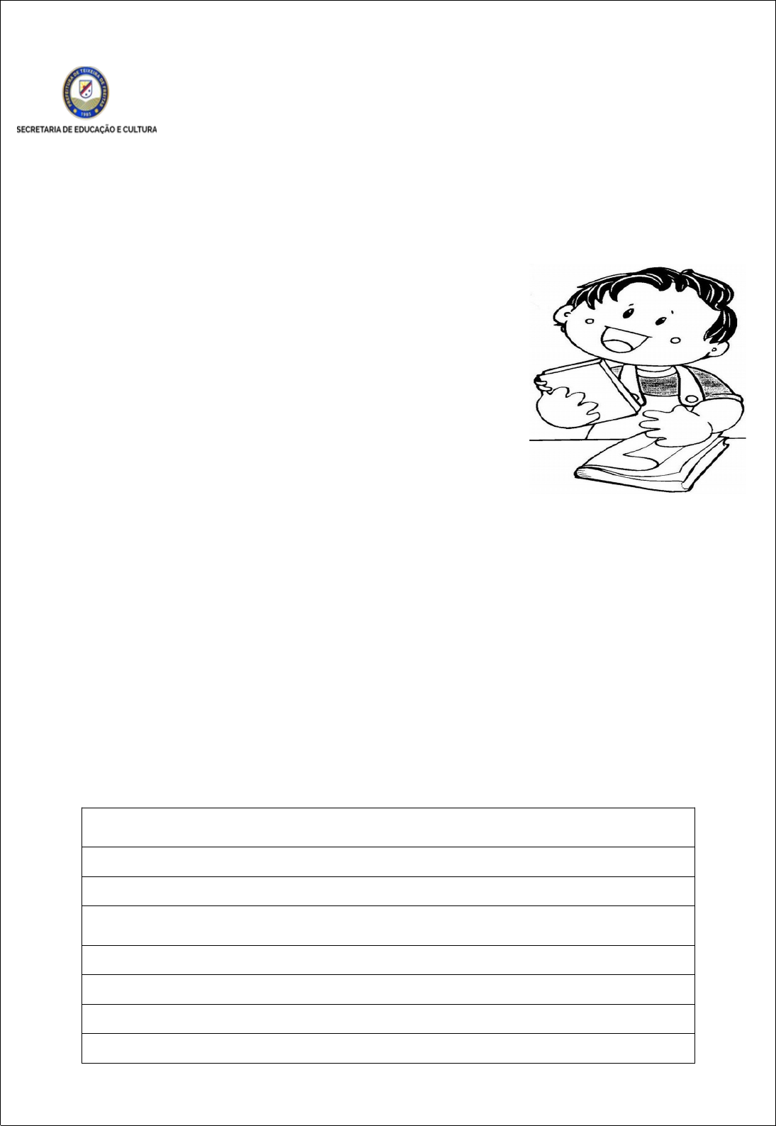 ESCOLA MUNICIPAL PROFESSOR MOABH CRISTAL FÉLIX ALUNO (a) __________________________________________ PROFESSORA: __________________DATA: ____/_____/2023 SENTIMENTO: EXPRESSÃO DE VIDA QUEM EU SOU: MINHAS EMOÇÕES Você tem um nome e um sobrenome que identificam. Esse nome é registrado em cartório, lugar onde se guardam documentos importantes. Ao sermos registrados em cartório, recebemos o nosso primeiro documento, que se chama Registro Civil ou Certidão de Nascimento. As certidões contêm dados importantes de nossa vida, como: nome, sobrenome, paternidade, local, data e hora de nascimento. As certidões podem dizer muita coisa, até sobre nossas características físicas, mas não há nenhum documento que fale de nossas emoções, sentimentos e valores. Vamo-nos conhecer melhor? Complete a ficha com seus dados: MEUS DADOS PESSOAIS Meu nome é: Sexo: Nasci no dia: do mês de do ano de , às horas. Na Cidade de: Filho(a) de: E Sendo avós paternos: e avós maternos: - 14 - ESCOLA MUNICIPAL PROFESSOR MOABH CRISTAL FÉLIX ALUNO (a) ___________________________________________ PROFESSORA: _____________________DATA: ______/_____/2023 Conhecendo-me como pessoa especial! Observe as afirmações e assinale as alternativas que lhe parecem mais corretas: PERGUNTAS SIM NÃO Estou sempre ouvindo as experiências dos mais velhos? Gosto de ajudar o próximo? Estou sempre buscando ser uma pessoa melhor? Quando me vejo em situação difícil, perco a cabeça? Colaboro com meus pais, sou obediente? Nos momentos difíceis, busco não perder a fé? A vida das pessoas é tomada de emoções a todo o momento. Isso é uma forma de representar os sentimentos da pessoa. Escreva no quadro abaixo coisas que deixam você feliz e coisas deixam você triste: O que me deixa triste O que me deixa feliz ESCOLA MUNICIPAL PROFESSOR MOABH CRISTAL FÉLIX ALUNO(a) ___________________________________________ PROFESSORA: _______________________DATA: ______/_____/2023 Como pessoa, devo buscar sempre melhorar, seja minha maneira de agir com os outros, seja meu jeito de pensar sobre mim mesmo, pois todos podemos melhorar e amadurecer em nossas atitudes. Eu penso que as pessoas podem... Eu posso melhorar, fazendo... - 14 - image3.jpeg image4.jpeg image5.jpeg image1.png image2.jpeg