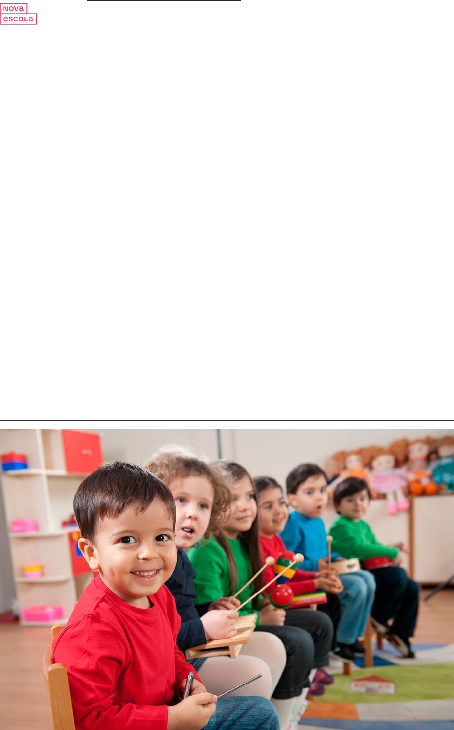 Endereço da página: https://novaescola.org.br/conteudo/17241/campos-de-experiencia-na- pratica-como-trabalhar-tracos-sons-cores-e-formas-na-educacao-infantil Publicado em NOVA ESCOLA 13 de Maio | 2019 Educação Infantil Campos de Experiência na prática: como trabalhar “traços, sons, cores e formas” na Educação Infantil Terceiro campo da BNCC instiga o uso de expressões artísticas para trabalhar olhar, coordenação motora e percepção dos pequenos Lucas Santana No Campo de Experiência Traços, sons, cores e formas, as crianças exploram https://novaescola.org.br/conteudo/17241/campos-de-experiencia-na-pratica-como-trabalhar-tracos-sons-cores-e-formas-na-educacao-infantil sonoridades de diferentes objetos Crédito: Getty Images Desde o primeiro rascunho até sua homologação, a Base Nacional Comum Curricular (BNCC) da Educação Infantil tem percorrido um longo caminho. Ainda muito recente, a BNCC está em fase de implementação nas redes públicas. Nas formações, é normal que surjam dúvidas à aplicação do que muitas professoras consideram “diferente”, como é o caso dos 5 Campos de Experiência. Faça nosso combo especial de cursos para BNCC da Educação Infantil Os Campos de Experiência despertam a reflexão de professores e coordenadores sobre quais são as experiências fundamentais para que a criança aprenda e se desenvolva integralmente. NOVA ESCOLA traz uma série dedicada aos 5 Campos de Experiência, com atividades práticas para explorar cada um – e que podem ser complementadas com curso sobre o tema e planos de atividade produzidos pelo nosso Time de Autores. CURSOS Grátis: Os Campos de Experiência na Educação Infantil Conheça os 5 Campos de Experiência Os 5 Campos de Experiência ocupam espaço importante do novo documento da Educação Infantil. São eles: O eu, o outro e o nós Corpo, gestos e movimentos Traços, sons, cores e formas Escuta, fala, pensamento e imaginação Espaço, tempo, quantidades, relações e transformações Já exploramos os campos "O eu, o outro e o nós" e "Corpos, gestos e movimentos". Desta vez, fomos buscar experiências e atividades pensadas e realizadas com base no Campo “Traços, sons, cores e formas”. PLANOS DE AULA Veja planos de aula que incluem Campos de Experiência CAMPO DE EXPERIÊNCIA: TRAÇOS, SONS, CORES E FORMAS Conviver com diferentes manifestações artísticas, culturais e científicas, locais e universais, no cotidiano da instituição escolar, possibilita às crianças, por meio de experiências diversificadas, vivenciar diversas formas de expressão e linguagens, como as artes visuais (pintura, modelagem, colagem, fotografia etc.), a música, o teatro, a dança e o audiovisual, entre outras. Com base nessas experiências, elas se expressam por várias linguagens, criando suas próprias produções artísticas ou culturais, exercitando a autoria (coletiva e individual) com sons, traços, gestos, danças, mímicas, encenações, canções, desenhos, modelagens, manipulação de diversos materiais e de recursos tecnológicos. Essas experiências contribuem para que, desde muito pequenas, as crianças http://basenacionalcomum.mec.gov.br/abase/#infantil /bncc/conteudo/58/o-que-sao-os-campos-de-experiencia-da-educacao-infantil https://cursos.novaescola.org.br/trilha/9/combo-bncc-na-educacao-infantil/resumo?&itm_campaign=trilhacursosbnccccomboei https://cursos.novaescola.org.br/curso/4469/os-campos-de-experiencias-na-bncc-da-educacao-infantil/resumo /plano-de-aula/busca https://cursos.novaescola.org.br/curso/4469/os-campos-de-experiencias-na-bncc-da-educacao-infantil/resumo /conteudo/17134/campos-de-experiencia-na-pratica-como-trabalhar-o-eu-o-outro-e-o-nos-na-educacao-infantil /conteudo/17184/campos-de-experiencia-na-pratica-como-trabalhar-corpo-gestos-e-movimentos-na-educacao-infantil /conteudo/17444/campos-de-experiencia-na-pratica-como-trabalhar-escuta-fala-pensamento-e-imaginacao-na-educacao-infantil /conteudo/17507/campos-de-experiencia-na-pratica-como-trabalhar-espaco-tempo-quantidades-relacoes-e-transformacoes-na-educacao-infantil /conteudo/17134/campos-de-experiencia-na-pratica-como-trabalhar-o-eu-o-outro-e-o-nos-na-educacao-infantil /conteudo/17184/campos-de-experiencia-na-pratica-como-trabalhar-corpo-gestos-e-movimentos-na-educacao-infantil /plano-de-aula/busca?query=campos de experiencia desenvolvam senso estético e crítico, o conhecimento de si mesmas, dos outros e da realidade que as cerca. Portanto, a Educação Infantil precisa promover a participação das crianças em tempos e espaços para a produção, manifestação e apreciação artística, de modo a favorecer o desenvolvimento da sensibilidade, da criatividade e da expressão pessoal das crianças, permitindo que se apropriem e reconfigurem, permanentemente, a cultura e potencializem suas singularidades, ao ampliar repertórios e interpretar suas experiências e vivências artísticas. Trecho extraído do documento Base Nacional Comum Curricular Crédito: Getty Images As artes e suas expressões podem ser aliadas das professoras em todos os momentos da vida de seus alunos. O Campo de Experiência “Traços, sons, cores e formas” implica essa possibilidade para a Educação Infantil. “Nesse campo, o foco são o convívio e a interação das crianças com diferentes materiais, instrumentos e manifestações expressivas. Elas são convidadas a conhecer e interagir com sons, cantos, cores, traços, luzes, cenários, imagens, gestos, movimentos, materiais e recursos tecnológicos”, explica o educador e autor Wagner Priante, especialista em Arte-Educação pela Universidade Estadual Paulista (UNESP). LEIA MAIS Baixe o PDF do livro digital da BNCC para Educação Infantil Esse contato pode ajudar a criança a desenvolver outras características. Para a especialista pedagógica Rebeca Veras, do SAS Plataforma de Educação, o contato de bebês e crianças com esses recursos expressivos gera impactos muito importante