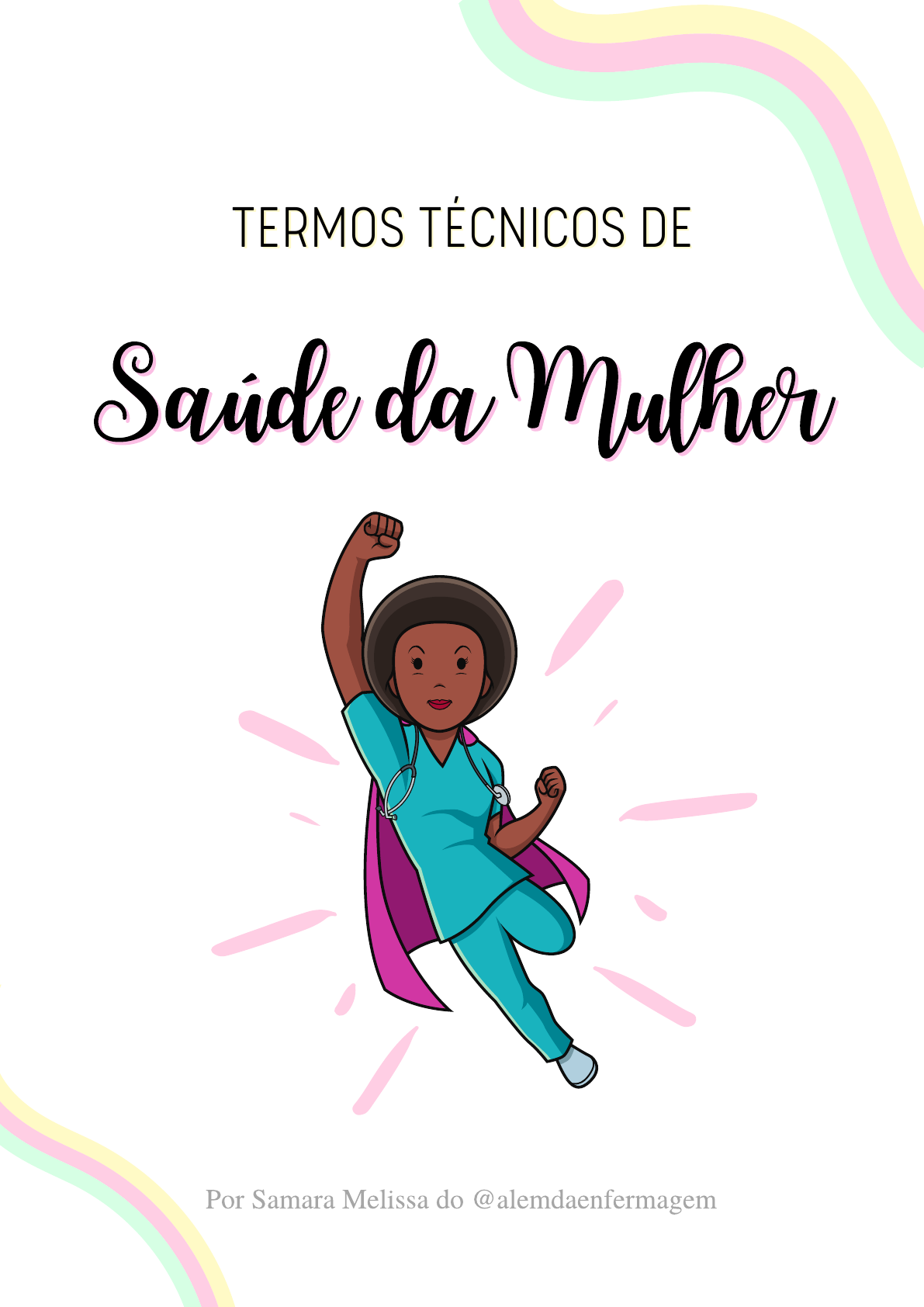 Saúde da MulherSaúde da Mulher TERMOS TÉCNICOS DETERMOS TÉCNICOS DE Por Samara Melissa do @alemdaenfermagem -Estagiários de enfermagem, fisioterapia, medicina e as demais áreas da saúde que abordam a saúde da mulher -Residentes e futuros residentes na área de saúde da mulher -Concurseiros -Estudantes de graduação/técnico que querem aprimorar sua escrita em saúde da mulher -Estudantes ou profissionais que desejam ampliar seus termos técnicos na hora de escrever suas anotações Me chamo Samara Melissa, sou dona do IG @alemdaenfermagem que tem o objetivo de repassar meus conhecimentos de saúde da mulher com materiais esquematizados e ilustrados que facilitam sua compreensão e memorização dos conteúdos. Pra quem serve esse material? Compartilhar esse material por google drive, whatsapp, instagram ou quaisquer outros meios se classificam como ato de pirataria, conforme o Art. 184 do Código Penal, com pena de 3 meses a 4 anos de reclusão ou multa de até 10x o valor do produto adquirido (Lei nº 9.610: Art.102) Vou amar receber seu feedback nas minhas redes sociais. Sua opinião é muito importante! Oi mana,Oi mana, Gostou do material?Gostou do material? Terminologia de saúde da mulherTerminologia de saúde da mulher Abasia: Impossibilidade de ficar em pé e andar Abcesso: Coleção de pus com dor e calor local que normalmente se forma devido a uma infecção por bactéria. Ablactação: Interrupção da amamentação Abrasão: Esfoladura, arranhão. Acinesia: Impossibilidade de movimentos voluntários, paralisia. Acromia: Ausência de cor por falta de melanina, pigmentação da pele. Adipsia/Aposia: Ausência de sede Aerofagia: Deglutição anormal de ar, provocando eructação frequente. Afagia: Impossibilidade de deglutir (diferente de disfagia). Afasia: Incapacidade de se expressar por palavras. Afebril/Apirético: Sem febre. Agalactia: Ausência de leite na puérpera. Algesia: Sensibilidade à dor. Algia: Dor em geral de origem subjetiva, sem lesão anatômica ou orgânica apreciável. Algidez: Resfriamento das extremidades. Alopécia: Queda de cabelo. Ambliopia: Diminuição da acuidade visual por intoxicação, alteração nervosa, avitaminose... Amenorreia: Ausência de menstruação por 3 ciclos menstruais ou 6 meses. Períodos inferiores, utiliza-se o termo atraso menstrual. Analgesia: Perda da sensibilidade a dor. Anidrose: Ausência ou diminuição de suor. Anisocoria: Pupilas desiguais. Anoperineal: Ânus e períneo. Anosmia: Diminuição ou perda completa do olfato. Anóxia: Redução do suprimento de oxigênio dos tecidos. Anticoncepção: Antes da gravidez. Anúria: Ausência da eliminação urinária. Apatia: Sem vontade ou interesse para efetuar qualquer esforço físico ou mental, indiferença. Apneia: Parada dos movimentos respiratórios. Apojadura: Subida do leite à glândula mamária. Aptialismo: Deficiência ou ausência da saliva. Arquejar: Respirar com dificuldade, dispneia intensa. Artralgia: Dor nas articulações. Ascite: Edema localizado na cavidade peritoneal com acúmulo de líquido. Asfixia: Sufocação, dificuldade da passagem do ar. Astenia: Fraqueza, cansaço. Atresia: Ausência ou fechamento de um orifício natural. AA @alemdaenfermagem BB Bartholinectomia: Remoção da glândula de Bartholin. Biópsia: Retirada de um fragmento de órgão ou tecido para análise. Blenorreia: Secreção abundante das mucosas, especialmente da vagina e uretra. Blenúria: Presença de muco na urina. Bradicardia: Diminuição dos batimentos cardíacos. Bradipneia: Movimento respiratório abaixo do normal. Braquialgia: Dor no braço. Brotoeja: Erupção cutânea com coceira. Cãibra: Contração muscular, espasmódica e dolorosa. Caquexia: Magreza extrema, perda de peso, sintomas de debilidade. Cauterização: Destruição do tecido por meio de agente caustico ou calor (bisturi elétrico) Cefaleia: Dor de cabeça Cerclagem: Sutura da cérvix do útero incapaz de reter o feto unido, as suturas são retiradas no final da gestação. Cervicite: Inflamação do colo uterino. Cianose: Coloração azulada das extremidades por falta de oxigênio. Cistite: Inflamação da bexiga. Claudicação: Fraqueza momentânea de um membro. Cloasma: Manchas escuras na pele, principalmente no rosto da gestante devido as modificações hormonais ou exposição solar. Cólica: Dor espasmódica no útero. Colpoperineoplastia: Correção do períneo e vagina. Colporrafia: Sutura da vagina. Colposcopia: Aparelho ótico pelo orifício vaginal para inspecionar a vagina. Constipação: Retenção de fezes. Cordialgia: Dor no coração. Coriza: Eliminação acentuada de secreções nasais. Curetagem Uterina: Raspagem e remoção do conteúdo uterino. Feita em casos de aborto. Dermatite: Inflamação da pele. Dermatose: Reação alérgica como bolhas, coceira, inflamação e descamação. Dermoabrasão: Procedimento cirúrgico para remoção das cicatrizes de acne, sinais e tatuagens. Diaforese: Sudorese excessiva. Disfagia: Dificuldade de deglutir. Disfonia: Alterações na voz. Dismenorreia: Menstruação difícil e dolorosa com dor pélvica. Dispareunia: Dor na relação sexual. Dispepsia: Dificuldade na deglutição de líquidos, dificuldade de matar a sede. Dispneia: Dificuldade de respirar. Disquesia: Evacuação difícil e dolorosa. Distensão: Estiramento de alguma fibra muscular, entumecimento ou expansão. Distrofia: Perturbação da nutrição. Disúria: Micção difícil e dolorosa. Diurese: Volume urinário coletado. @alemdaenfermagem CC DD EE Edema: Inchaço; retenção de líquido. Endometrite: Inflamação do endométrio. Enema: Clister, lavagem, introdução de líquidos no reto. Enteralgia: Dor intestinal. Enurese: Incontinência urinária geralmente noturna. Episiorrafia: Sutura do músculo perineal após o parto. Episiorragia: Hemorragia perineal. Episiotomia: Incisão perineal para evitar a ruptura do períneo durante o parto. Epistaxe: Hemorragia nasal. Equimose: 