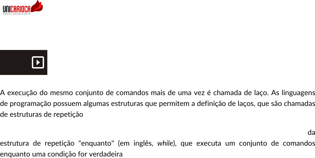 estrutura de repetição "enquanto" (em inglês, while), que executa um conjunto de comandos