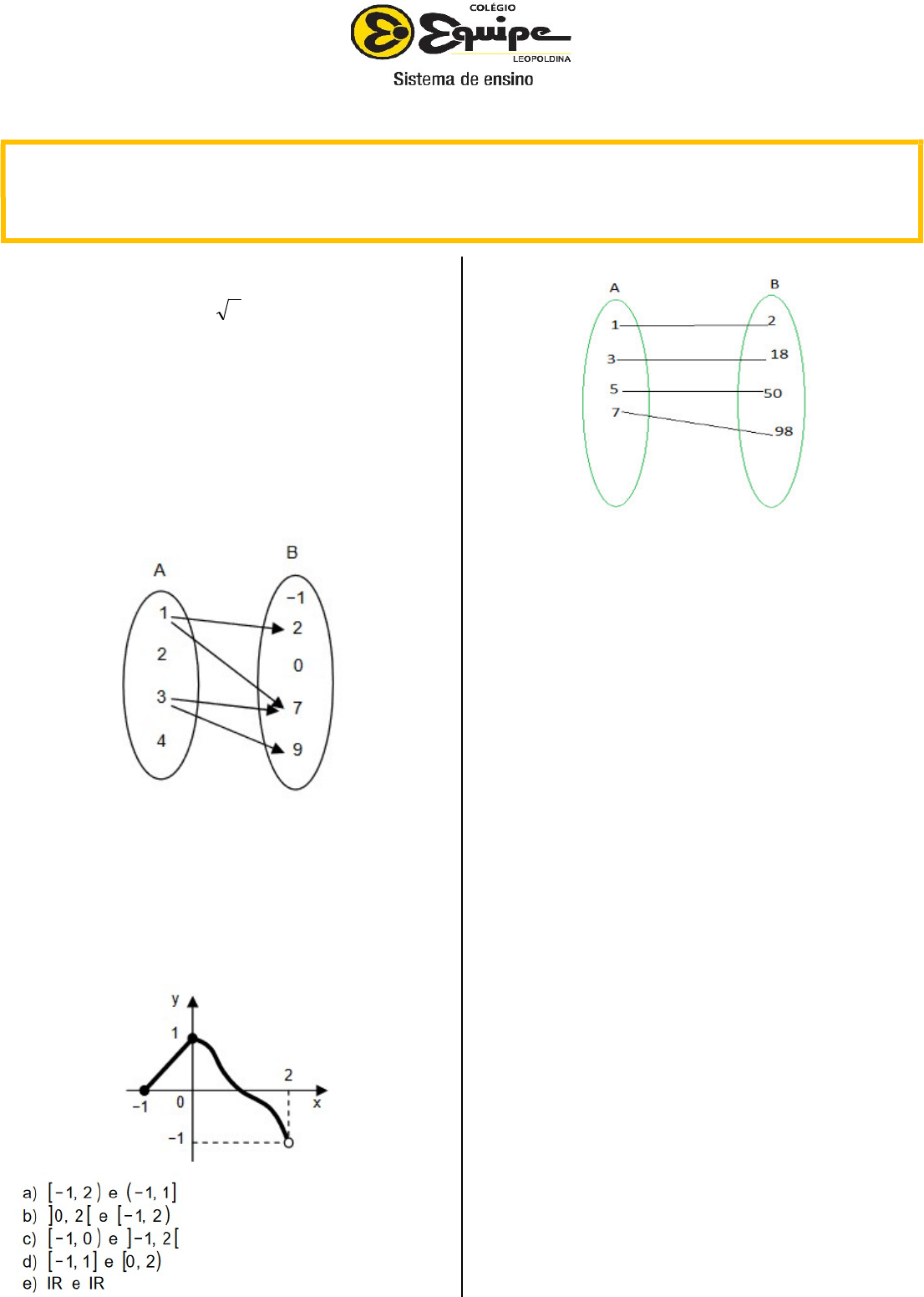 9) Sejam A = {−4, −1, 4, 6}, B = {−3, −2, 0, 2, 3} e a