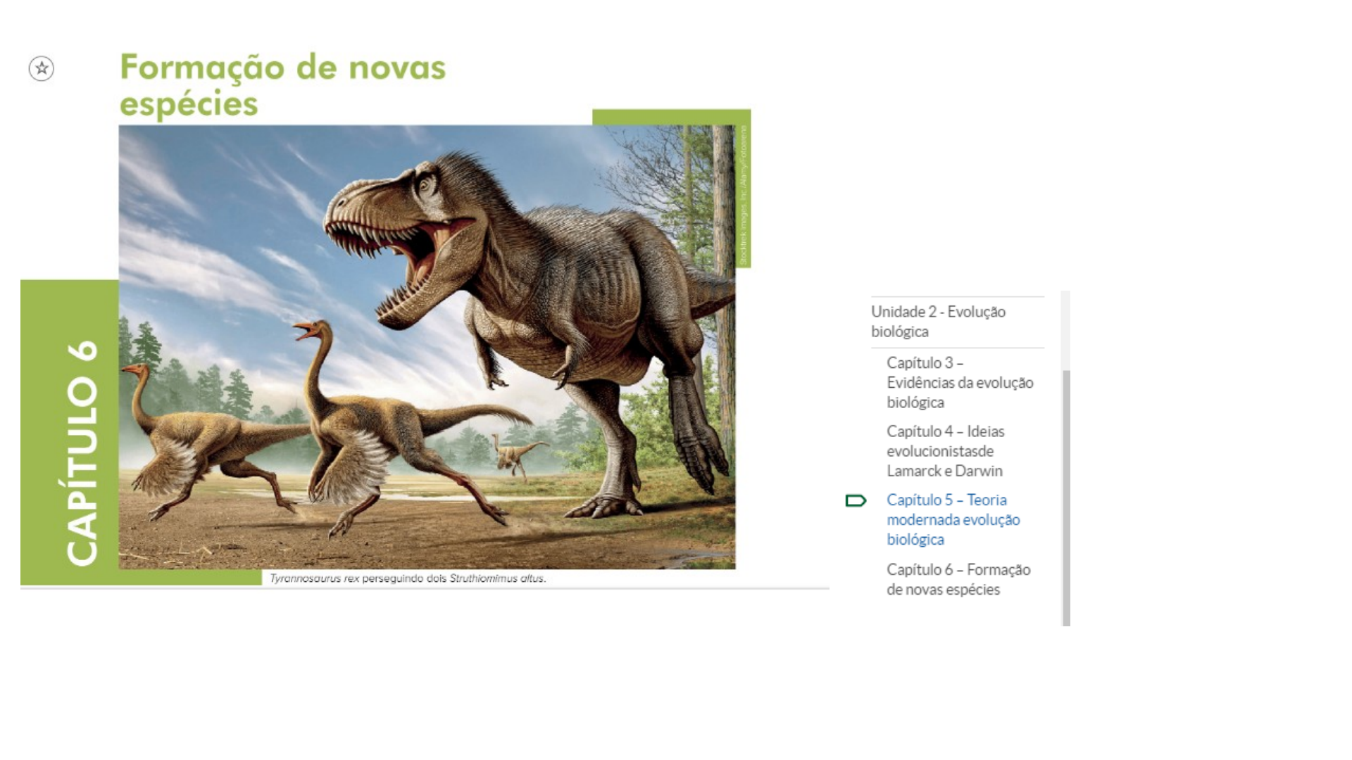 Especiação processo de formação de novas espécies, onde podem se formar grupos intermediários. Esse fenômeno só será possível se as duas populações estiverem de alguma forma separadas. Ao longo do tempo, novas espécies têm surgido, enquanto que outras se têm extinguido. O QUE SÃO ESPÉCIES? COMO SE FORMAM AS NOVAS ESPÉCIES? ESPÉCIE: conjunto de todos os indivíduos que, em condições naturais, são capazes de se reproduzir e gerar descendentes férteis. *NÃO SE APLICA A ORGANISMOS FÓSSEIS. *NÃO SE APLICA A ORGANISMOS COM REPRODUÇÃO ASSEXUADA. Este processo pode ser uma transformação gradual de uma espécie em outra (anagênese) ou pela divisão de uma espécie em duas por cladogênese. Há quatro modos principais de especiação: a especiação alopátrica, simpátrica, parapátrica e peripátrica. A especiação pode também ser induzida artificialmente, através de cruzamentos selecionados ou experiências laboratoriais. Tipos de especiação Especiação Alopátrica: (allo = diferente, patris = lugar) a nova espécie pode ocorrer quando uma barreira é imposta dentro da variação geográfica contínua da espécie ancestral; ou a nova espécie se origina a partir de populações periférica isoladas. Especiação Simpátrica (gr. syn = juntos): não ocorre isolamento geográfico entre populações com um mesmo ancestral. Os mecanismos envolvidos neste tipo de especiação ainda são pouco conhecidos. Uma hipótese são os casos de seleção disruptiva, em que novas espécies podem surgir em uma mesma região geográfica. Tipos de especiação Isolamento estacional ou sazonal: resulta de diferentes épocas de reprodução entre espécies. Aplica-se tanto para animais quanto para plantas. Isolamento de habitat ou ecológico: quando duas espécies não se cruzam por viverem em habitats diferentes. Isolamento etológico ou comportamental: resulta de diferentes padrões de comportamentos antes do acasalamento. Assim, impede-se que indivíduos de uma população não reconheçam os sinais de corte de uma população de outra espécie. Isolamento mecânico: ocorre quando diferentes espécies não apresentam compatibilidade quanto aos órgãos reprodutores. Aplica-se para animais e também para plantas. Mortalidade gamética: decorre da não-sobrevivência dos gametas masculinos de uma espécie dentro do sistema reprodutivo feminino de outra população. Isolamento Reprodutivo - São os mecanismos que impedem a formação do zigoto, visto que a fecundação também é impedida. Os principais tipos são: Mecanismos pós-zigóticos São os mecanismos que tornam inviáveis a sobrevivência do híbrido ou sua futura reprodução, ou seja, torna-o estéril. Entre esses, estão Mortalidade zigótica ou inviabilidade do híbrido: mesmo que haja a fecundação do zigoto, tal zigoto não é capaz de sobreviver devido a uma interrupção do desenvolvimento embrionário, pelo fato de os genes materno e paterno não serem compatíveis Esterilidade do híbrido: decorre do desenvolvimento normal do embrião após a fecundação entre duas espécies diferentes; no entanto, esse híbrido será infértil. A infertilidade pode resultar de gônadas ou meiose anormais. Deterioração da geração F2: ocorre quando a primeira geração de híbridos não é estéril. No entanto, os seus descendentes (indivíduos da geração F2) são frágeis e inférteis. Se por um acaso houver reprodução entre essa geração e indivíduos das espécies parentais, a inviabilidade do híbrido poderá ocorrer. image1.png image2.png image3.png image4.jpeg image5.png image6.png image7.jpeg image8.png image9.gif image10.jpeg image11.jpeg image12.png image13.png image14.png image15.png