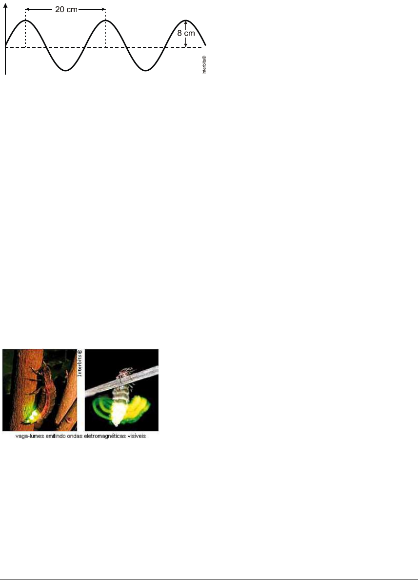 Prof. Luciano Soares Pedroso ### Página 1 de 6 Exercícios sobre ondulatória 1. Vulcões submarinos são fontes de ondas acústicas que se propagam no mar com frequências baixas, da ordem de 7,0 Hz, e comprimentos de onda da ordem de 220 m. Utilizando esses valores, calcule a velocidade de propagação dessas ondas. 2. A figura a seguir representa um trecho de uma onda que se propaga com uma velocidade de 320 m/s. A amplitude e a frequência dessa onda são, respectivamente: a) 20 cm e 8,0 kHz b) 20 cm e 1,6 kHz c) 8 cm e 4,0 kHz d) 8 cm e 1,6 kHz e) 4 cm e 4,0 kHz 3. A poluição sonora nas grandes cidades é tão intensa e constante que nem mais a percebemos, pois já nos habituamos. São motores de veículos, buzinas, sirenes, máquinas, todas fontes sonoras produzindo sons que vão do grave ao agudo. Com respeito aos sons agudos, podemos dizer que correspondem a sons de frequências a) altas e de grandes comprimentos de onda. b) altas e de pequenos comprimentos de onda. c) baixas e de pequenos comprimentos de onda. d) baixas e de grandes velocidades de propagação. e) baixas e de pequenas velocidades de propagação. 4. A luz visível é uma onda eletromagnética, que na natureza pode ser produzida de diversas maneiras. Uma delas é a bioluminescência, um fenômeno químico que ocorre no organismo de alguns seres vivos, como algumas espécies de peixes e alguns insetos, onde um pigmento chamado luciferina, em contato com o oxigênio e com uma enzima chamada luciferase, produz luzes de várias cores, como verde, amarela e vermelha. Isso é o que permite ao vaga-lume macho avisar, para a fêmea, que está chegando, e à fêmea indicar onde está, além de servir de instrumento de defesa ou de atração para presas. As luzes verde, amarela e vermelha são consideradas ondas eletromagnéticas que, no vácuo, têm a) os mesmos comprimentos de onda, diferentes frequências e diferentes velocidades de propagação. b) diferentes comprimentos de onda, diferentes frequências e diferentes velocidades de propagação. c) diferentes comprimentos de onda, diferentes frequências e iguais velocidades de propagação. d) os mesmos comprimentos de onda, as mesmas frequências e iguais velocidades de propagação. Prof. Luciano Soares Pedroso ### Página 2 de 6 e) diferentes comprimentos de onda, as mesmas frequências e diferentes velocidades de propagação. 5. Em um dia de chuva muito forte, constatou-se uma goteira sobre o centro de uma piscina coberta, formando um padrão de ondas circulares. Nessa situação, observou-se que caíam duas gotas a cada segundo. A distância entre duas cristas consecutivas era de 25 cm e cada uma delas se aproximava da borda da piscina com velocidade de 1,0 m/s. Após algum tempo a chuva diminuiu e a goteira passou a cair uma vez por segundo. Com a diminuição da chuva, a distância entre as cristas e a velocidade de propagação da onda se tornaram, respectivamente, a) maior que 25 cm e maior que 1,0 m/s. b) maior que 25 cm e igual a 1,0 m/s. c) menor que 25 cm e menor que 1,0 m/s. d) menor que 25 cm e igual a 1,0 m/s. e) igual a 25 cm e igual a 1,0 m/s. 6. A figura abaixo representa imagens instantâneas de duas cordas flexíveis idênticas, 1C e 2C , tracionadas por forças diferentes, nas quais se propagam ondas. Durante uma aula, estudantes afirmaram que as ondas nas cordas 1C e 2C têm: I. A mesma velocidade de propagação. II. O mesmo comprimento de onda. III. A mesma frequência. Note e adote: A velocidade de propagação de uma onda transversal em uma corda é igual a t , sendo T a tração na corda e , a densidade linear da corda. Está correto apenas o que se afirma em a) I. b) II. c) III. d) I e II. e) II e III. 7. Um concertista, ao tocar seu violão, executa as notas musicais com as durações e frequências que caracterizam a música tocada. As pessoas que estão na plateia, tanto as mais próximas quanto as mais distantes, escutam as mesmas notas, com as mesmas durações e frequências, ou seja, a mesma música. Esse fato pode ser atribuído a) à qualidade acústica da sala de concertos. b) à afinação do instrumento. c) ao fato de a velocidade do som ter o mesmo módulo para todas as frequências sonoras. d) ao fenômeno da reverberação. e) ao fenômeno da ressonância. 8. Tanto o eco sonoro como a visão são fenômenos explicados pelo estudo de Ondas. Os dois são manifestações de um dos fenômenos ondulatórios abaixo, a a) difração b) refração c) reflexão d) polarização e) ressonância TEXTO PARA A PRÓXIMA QUESTÃO: Dados: Prof. Luciano Soares Pedroso ### Página 3 de 6 Aceleração da gravidade: 210 m/s Densidade do mercúrio: 313,6 g/cm Pressão atmosférica: 5 21,0 10 N/m Constante eletrostática: 9 2 2 0 0k 1 4 9,0 10 N m C 9. Na figura abaixo, mostra-se uma onda mecânica se propagando em um elástico submetido a um certa tensão, na horizontal. A frequência da onda é f = 740 Hz. Calcule a velocidade de propagação da onda, em m/s. 10. Uma onda bidimensional se propaga em uma corda longa segundo um plano vertical. Os deslocamentos verticais, em relação à posição horizontal de repouso da corda, são dados em função do tempo por .t y 2.sen 6 em que y está em decímetros, e t, em segundos. A figura abaixo representa um trecho dessa onda. A velocidade de propagação da onda, em dm/s, é a) 2 3 b) 3 2 c) 3 4 d) 4 3 e) 4 9 11. A sirene de uma fábrica produz sons com frequência igual a 2640 Hz. Determine o comprimento de onda do som produzido pela sirene em um dia cuja velocidade de propagação das ondas sonoras no ar seja igual a 1188 km/h. 12. Um brinquedo muito divertido é o telefone de latas. Ele é feito com duas latas abertas e um barbante que tem suas extremidades presas às bases das latas. Para utilizá-lo, é necessário que uma pessoa fale na “boca” de uma das latas e uma outra pessoa ponha seu ouvido na “boca” da outra lata, mantendo os fios esticados. Como no caso do telefone comum, tam