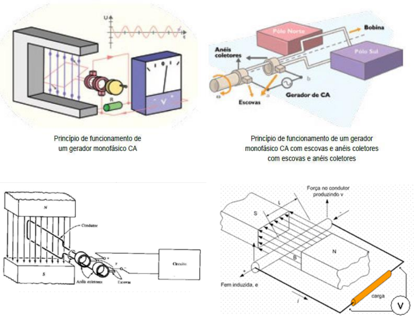 CURSO TÉCNICO EM ELETROTÉCNICA ATIVIDADE AVALIATIVA DE ELETRICIDADE II ELABORAÇÃO: PROF. CARLOS WESLEY DA MOTA BASTOS ALUNO(A): SIDICLEI TEIXEIRA TURMA:2ºL 1) As figuras abaixo mostram o básico de um gerador CA com um alternador para a geração de uma tensão senoidal. Diante disso, explique como ocorre todo o processo de geração da corrente alternada monofásica. Não se esqueça de abordar desde o início da geração de energia oriunda de uma central elétrica qualquer: A bobina ou condutor (chamado de enrolamento, na prática) girando no campo magnético sob ação de uma força externa (que pode ser água em movimento, turbina a vapor produzido pela queima de carvão ou mesmo produzido por um reator nuclear, motor diesel ou a gasolina, etc.) faz aparecer uma tensão induzida nos terminais da bobina, a qual está ligada a anéis coletores e escovas. Através das escovas é feita a ligação entre o circuito externo e a bobina. É sempre bom lembrar que não geramos corrente elétrica e, sim, diferença de potencial (d.d.p.), através da geração da força eletromotriz induzida (f.e.m.); se essa d.d.p., ou simplesmente tensão elétrica, for aplicada em uma carga de um circuito fechado, aí, sim, podemos gerar uma corrente elétrica. 2) De acordo com os gráficos abaixo, conceitue: a) Valor instantâneo Amplitude de uma forma de onda em um instante de tempo qualquer. b) Valor máximo, de pico ou amplitude. E o valor máximo que a tensão ou corrente atinge, no sentido positivo ou negativo. Em uma forma de onda, a amplitude é a distância do eixo horizontal ao ponto mais alto da onda acima do eixo, ou ao ponto mais baixo da onda abaixo do eixo. O valor máximo (Vmax) é também conhecido como amplitude (A) ou, comumente, valor de pico (VP). c) Valor de pico a pico. A distância entre o ponto mais alto e o ponto mais baixo da onda chamou de valor de pico-a-pico (VPP). d) Valor médio. O valor médio de uma tensão ou corrente senoidal é a média aritmética de todos os valores instantâneos durante meio ciclo (semiciclo ou alternância). Durante meio ciclo, a tensão ou corrente varia de zero até o valor de pico e retorna a zero novamente; portanto, o valor médio deve estar situado entre zero e o valor de pico. Para uma onda senoidal pura, que é a forma de onda mais comum em circuitos CA, o valor médio em um semiciclo é 0,637 vezes o valor de pico. e) Valor eficaz. O valor eficaz de uma tensão ou corrente senoidal é o valor que elas deveriam ter, se fossem constantes (como em corrente contínua), ou seja, é um valor que provoca a produção da mesma quantidade de calor (dissipação), num circuito contendo apenas resistências, em CC de igual valor. Portanto, uma corrente alternada com valor eficaz igual a 1 [A] produz o mesmo calor num resistor R = 10[Ω] que uma corrente contínua de 1 [A]. Para uma onda senoidal pura, o valor eficaz é 0,707 vezes o valor de pico, ou seja, Vef = 0,707 Vmax ou Vef = Vmax/√2. f) Alternação, alternância ou semiciclo. Qualquer uma das metades da senoide que compõe o ciclo é chamada de alternância, meio ciclo, semiciclo ou, ainda, meia onda. g) Período, tempo ou ciclo completo. E o tempo necessário para a onda completar um ciclo, ou seja, é a duração de um ciclo. A relação matemática que expressa o Período é: T = 1/f [segundo] [s] h) Frequência. E o número de ciclos produzidos em cada segundo, ou seja, é o número de vezes que a forma de onda se repete em um período. A relação matemática que expressa a Frequência é: f =1/T [ciclos/segundos ou hertz] [Hz] i) Diferença de fase. Indica a relação de tempo para tensões e corrente CA, ou seja, indica a diferença de fase entre duas tensões, correntes, ou combinações destas, ou até mesmo entre dois ou mais sinais senoidais quaisquer. j) Comprimento de onda. E a distância percorrida por uma onda periódica completa que corresponde à razão entre a velocidade da onda da luz (3x108 m/s) e sua frequência [Hz]. A relação matemática que expressa o comprimento de onda é: λ = v/f [metros] [m]. 3) Em se tratando de Circuitos Puramente Resistivos em CA, pede-se: a) exemplos de circuitos puramente resistivos em CA: Podemos caracterizar como exemplos de circuitos CA puramente resistivos, os aparelhos eletrodomésticos usados para produzir calor, tais como: torradeiras, ferros elétricos, chuveiros elétricos, frigideiras e fogões, etc., quando ligados à fonte de energia residencial. b) a relação fasorial (vetorial) existente entre a tensão e a corrente: O fato de a tensão e a corrente estarem em fase o tempo todo, ou seja, não existe defasagem entre a tensão e a corrente (θResultante = 0º), em outras palavras, a diferença entre o ângulo da tensão e da corrente. c) o significado de a potência ser uma grandeza pulsante e positiva: Significa que um resistor nunca fornece potência para um circuito, ao contrário, ele dissipa toda sua potência recebida, sob forma de calor, provocando o chamado “efeito joule”. d) explicações sobre os fenômenos: correntes parasitas e efeito pelicular: Correntes parasitas são comumente usadas para testes não destrutivos e para examinar defeitos em um grande número de estruturas metálicas, por exemplo: trocadores de calor, fuselagens e outras peças estruturais de aeronaves. Gerar calor em fornos de indução. Efeito pelicular é um fenômeno físico caracterizado pela repulsão entre linhas de corrente elétrica, criando a tendência desta fluir na superfície dos condutores elétricos. 4) Resolva as questões de acordo com os circuitos abaixo: a) Um chuveiro elétrico residencial tem o circuito interno e especificações a seguir: a.1) Qual o valor das resistências R1 e R2? R1= V²/P inverno R1=220²/3500 R1= 13,82Ω R2= V²/P verão- R1 R2=220²/2500 R2= 19,36Ω - 13,82Ω R2= 5,54Ω a.2) Qual o valor dos fusíveis (I=?) que devem ser utilizados para a proteção da instalação elétrica? I1= P/V I1= 3500/2