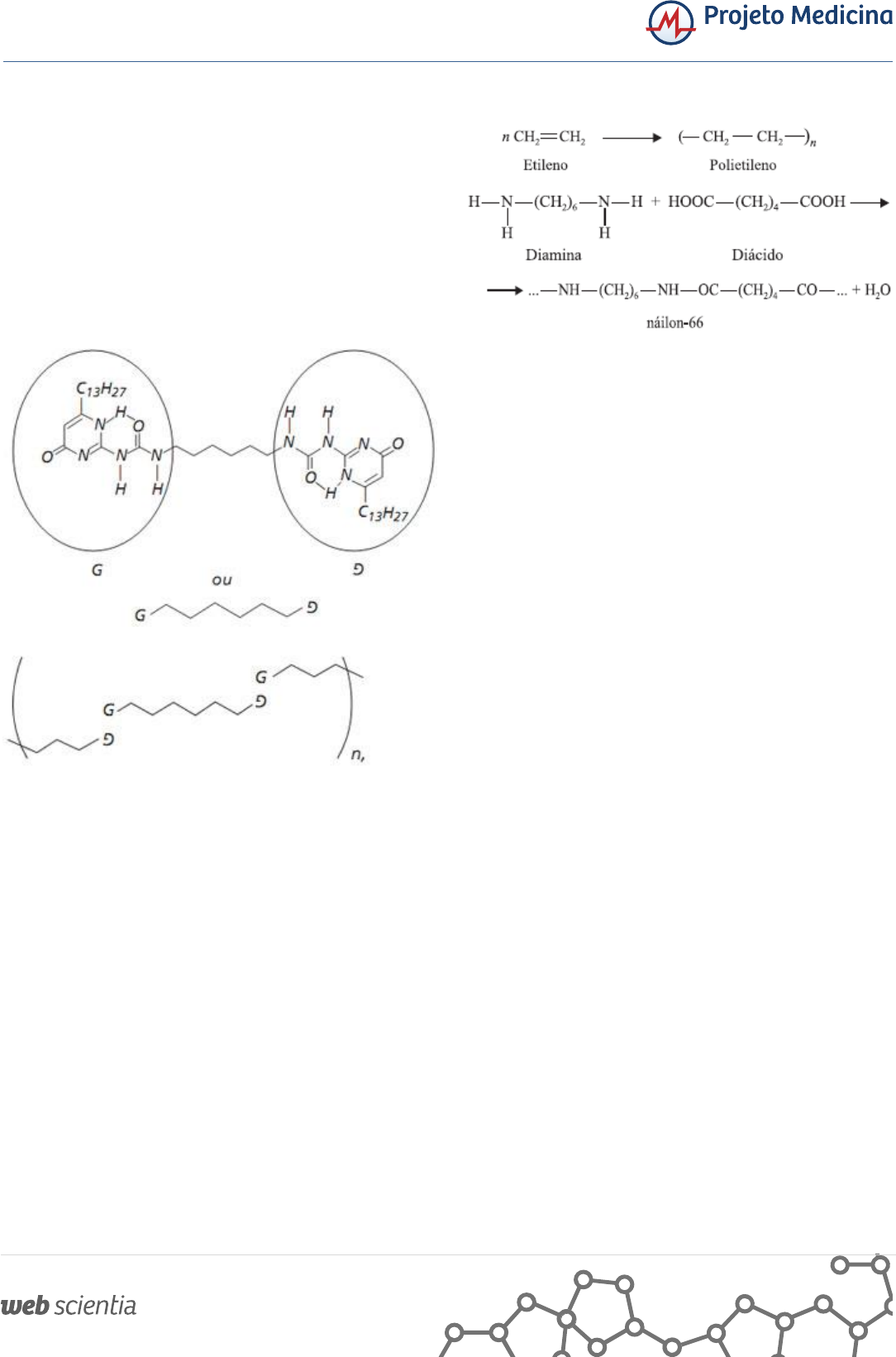 1 Exercícios Polímeros – Com gabarito 1) (FUVEST) Nos polímeros supramoleculares, as cadeias poliméricas são formadas por monômeros que se ligam, uns aos outros, apenas por ligações de hidrogênio e não por ligações covalentes como nos polímeros convencionais. Alguns polímeros supramoleculares apresentam a propriedade de, caso sejam cortados em duas partes, a peça original poder ser reconstruída, aproximando e pressionando as duas partes. Nessa operação, as ligações de hidrogênio que haviam sido rompidas voltam a ser formadas, “cicatrizando” o corte. Um exemplo de monômero, muito utilizado para produzir polímeros supramoleculares, é No polímero supramolecular, cada grupo G está unido a outro grupo G, adequadamente orientado, por x ligações de hidrogênio, em que x é, no máximo, a) 1 b) 2 c) 3 d) 4 e) 5 2) (UNIFESP) Os polímeros fazem parte do nosso cotidiano e suas propriedades, como temperatura de fusão, massa molar, densidade, reatividade química, dentre outras, devem ser consideradas na fabricação e aplicação de seus produtos. São apresentadas as equações das reações de obtenção dos polímeros polietileno e náilon-66. a) Quanto ao tipo de reação de polimerização, como são classificados os polímeros polietileno e náilon-66? b) A medida experimental da massa molar de um polímero pode ser feita por osmometria, técnica que envolve a determinação da pressão osmótica () de uma solução com uma massa conhecida de soluto. Determine a massa molar de uma amostra de 3,20 g de polietileno (PE) dissolvida num solvente adequado, que em 100 mL de solução apresenta pressão osmótica de 1,64 × 10–2 atm a 27 oC. Dados: = i R T M, onde: i (fator de van’t Hoff) = 1 R = 0,082 atm.L.K–1.mol–1 T = temperatura Kelvin M = concentração em mol.L–1 3) (ITA) Assinale a opção que contém o polímero que melhor conduz corrente elétrica, quando dopado. A) Polietileno B) Polipropileno C) Poliestireno D) Poliacetileno E) Poli (tetrafluor-etileno) 4) (ITA) Assinale a opção que contém o polímero que, por ser termoplástico e transparente, pode ser empregado na fabricação de pára-brisa de aeronaves. a) polietileno b) polipropileno c) poli(tetrafluoroetileno) d) policarbonato e) poli(álcool vinílico) 5) (UFSCar) Uma porção representativa da estrutura do polímero conhecido como Kevlar, patente da DuPont, é mostrada na figura a seguir. 2 A estrutura pode ser descrita como sendo formada por longas fibras poliméricas, aproximadamente planares, mantidas por ligações covalentes fortes, e cada fibra interagindo com suas vizinhas através de ligações hidrogênio, representadas por linhas interrompidas na figura. Devido ao conjunto dessas interações, o polímero é altamente resistente a impactos, propriedade que é aproveitada na confecção de coletes à prova de bala. a) Escreva as fórmulas estruturais dos dois reagentes utilizados na síntese do Kevlar, identificando as funções orgânicas presentes nas moléculas de cada um deles. b) Transcreva a porção representativa da fórmula estrutural da fibra polimérica em destaque na figura (dentro dos colchetes) para seu caderno de respostas. Assinale e identifique a função orgânica que se origina da reação de polimerização. 6) (FGV - SP) Na tabela, são apresentadas algumas características de quatro importantes polímeros. Polímero Estrutura Química Usos X Isolante elétrico, fabricação de copos, sacos plásticos, embalagens de garrafas. Y Fibras, fabricação de cordas e de assentos de cadeiras. Z Embalagens descartáveis de alimentos, fabricação de pratos, matéria prima para fabricação do isopor. W Acessórios de tubulações, filmes para embalagens. Polipropileno, poliestireno e polietileno são, respectivamente, os polímeros a) X, Y e Z. b) X, Z e W. c) Y, W e Z. d) Y, Z e X. e) Z, Y e X. 7) (UFG) Os plastificantes pertencem a uma classe especial de aditivos que podem ser incorporados à resina de PVC de modo a gerar materiais flexíveis. Abaixo são mostrados dois esquemas para as cadeias de PVC, sem e com o plastificante tipo ftalato, respectivamente: Esquema 1 Esquema 2 De acordo com os esquemas apresentados, pode-se afirmar que a função do plastificante é a) aumentar a ramificação do PVC. b) aumentar a interação eletrostática entre os átomos de Cl de uma camada e o de H de outra camada. c) atenuar as ligações dipolo-dipolo entre as cadeias poliméricas. d) minimizar o impedimento estérico. e) reduzir o grau de polimerização. 8) (FMTM) Os plásticos ou polímeros são familiares do nosso cotidiano, sendo usados na construção de muitos objetos que nos rodeiam, desde as roupas que vestimos até as casas em que vivemos. O desenvolvimento de processos de fabricação dos polímeros sintéticos foi o responsável pelo crescimento da indústria química no último século. Os polímeros poliestireno, poliamida (náilon) e teflon (politetrafluoreteno) podem ser classificados, quanto ao processo de fabricação, respectivamente, como A) polímeros de adição, copolímeros e polímeros de adição. B) polímeros de condensação, copolímeros e polímeros de condensação. 3 C) polímeros de condensação, polímeros de adição e copolímeros. D) polímeros de adição, polímeros de condensação e copolímeros. E) polímeros de adição, polímeros de condensação e polímeros de adição. 9) (FUVEST) A celulose é um polímero natural, constituído de alguns milhares de unidades de glicose. Um segmento desse polímero é representado por Produz-se o acetato de celulose, usado na fabricação de fibras têxteis, fazendo-se reagir a celulose com anidrido acético. Um exemplo de reação de triacetilação é: a) Escreva a unidade monomérica da celulose após ter sido triacetilada, isto é, após seus três grupos hidroxila terem reagido com anidrido acético. Represente explicitamente todos os átomos de hidrogênio que devem estar presente