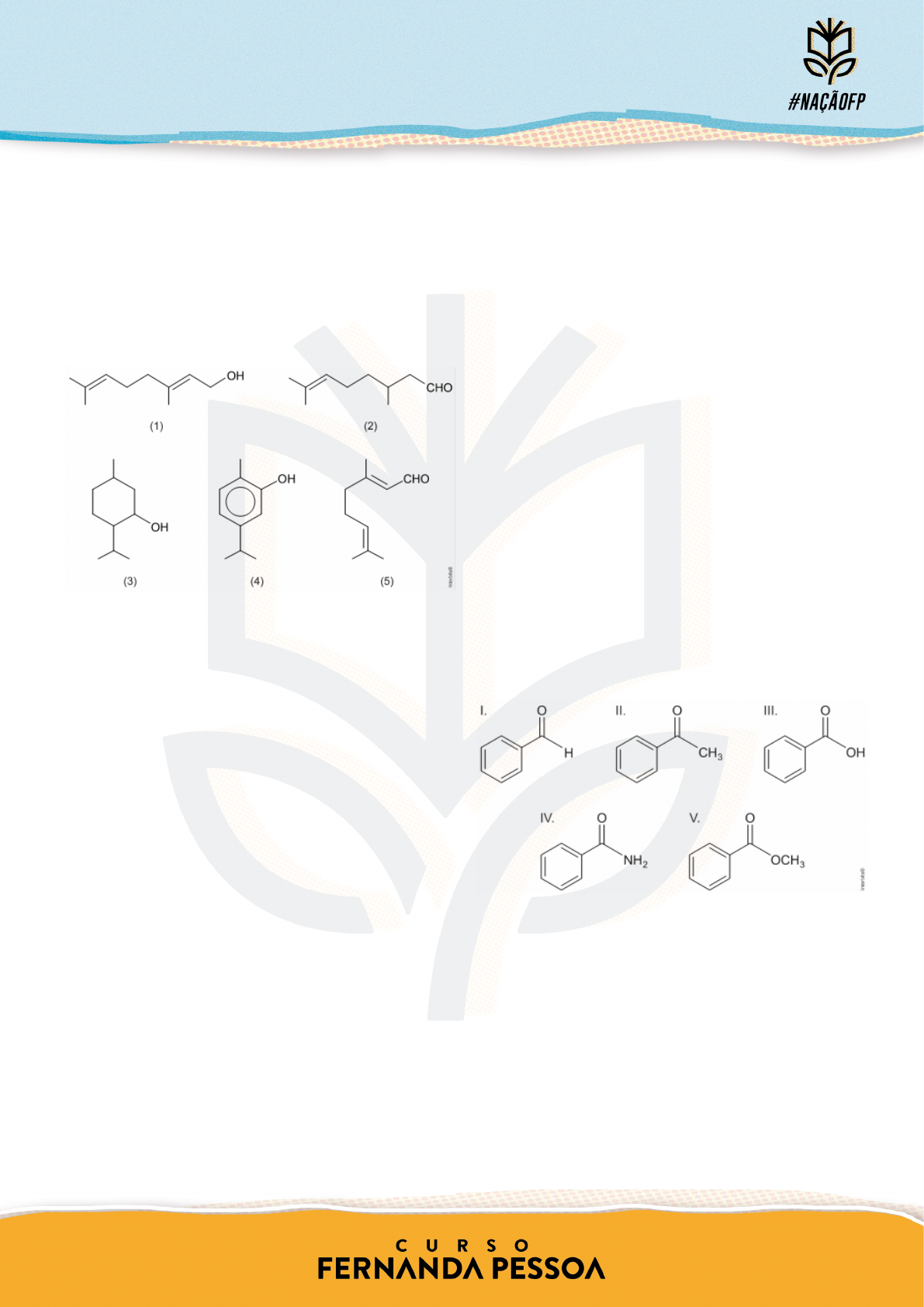 1 CIÊNCIAS DA NATUREZA E SUAS TECNOLOGIAS 1. (ENEM 2020) Um microempresário do ramo de cosméticos utiliza óleos essenciais e quer produzir um creme com fragrância de rosas. O principal componente do óleo de rosas tem cadeia poli-insaturada e hidroxila em carbono terminal. O catálogo dos óleos essenciais apresenta, para escolha da essência, estas estruturas químicas: Qual substância o empresário deverá utilizar? a) 1 b) 2 c) 3 d) 4 e) 5 2. (UECE 2019) Relacione, corretamente, as teorias sobre a origem da vida com suas respectivas características, numerando os parênteses abaixo de acordo com a seguinte indicação: 1. Abiogênese 2. Biogênese 3. Panspermia 4. Evolução molecular ( ) Afirma que a vida na Terra teve origem a partir de seres vivos ou de substâncias precursoras da vida proveniente de outros locais do cosmo. ( ) Surgiu a partir de evidências irrefutáveis de testes rigorosos realizados por Redi, Spallanzani, Pasteur e outros que chegaram à conclusão de que seres vivos surgem somente pela reprodução de seres da sua própria espécie. ( ) Considera que a vida surgiu por mecanismos diversos como, por exemplo, a partir da lama de lagos e rios, além da reprodução. ( ) A vida é resultado de um processo de evolução química em que compostos inorgânicos se combinam, originando moléculas orgânicas simples que se combinam produzindo moléculas mais complexas, até o surgimento dos primeiros seres vivos. A sequência correta, de cima para baixo, é: a) 4, 1, 3, 2. b) 3, 2, 1, 4. c) 1, 4, 2, 3. d) 2, 3, 4, 1. 3. (UNIOESTE 2020) O grupo funcional no qual os átomos de carbono e oxigênio formam uma ligação dupla (C = O) é denominado carbonila. Esse grupo está presente nas estruturas de diversos tipos de substâncias, denominadas substâncias carboniladas ou compostos carbonilados. Observe as estruturas dos compostos carbonilados a seguir e indique qual deles apresenta o maior caráter ácido em meio aquoso. a) I. b) II. c) III. d) IV. e) V. 4. (MACKENZIE 2019) A figura abaixo representa um clássico experimento na pesquisa sobre origem da vida. SIMULADO ESPECIAL 03 2 É correto afirmar que a) através dessa simulação, Louis Pasteur contestou de forma definitiva a teoria da abiogênese. b) pela simulação das supostas condições da Terra primitiva, foi possível formar matéria orgânica em condições abióticas. c) os defensores da panspermia cósmica obtiveram evidências da participação de elementos extraterrestres na formação da vida na Terra. d) houve a comprovação da atuação da energia vital na formação do primeiro ser vivo. e) as primeiras moléculas orgânicas surgiram de reações químicas em ambiente aeróbico. 5. (UNIOESTE 2020) A Efedrina é uma droga sintética comumente utilizada como estimulante, auxiliar na concentração mental, descongestionante e inibidor de apetite. A efedrina promove uma modesta perda de peso a curto prazo, especificamente perda de gordura, e é usada por alguns fisiculturistas para reduzir a gordura corporal antes de uma competição. No en¬tanto, provoca alguns efeitos colaterais tais como ansiedade, inquietação, nervosismo e taquicardia. A respeito da molécula da Efedrina mostrada abaixo, são feitas algumas afirmações. Assinale a alternativa que apresenta a afirmativa CORRETA. a) A estrutura da efedrina apresenta as funções orgânicas éter e amina, e contém apenas um carbono quiral. b) A estrutura da efedrina apresenta as funções orgânicas álcool e amida, e contém dois carbonos quirais. c) A estrutura da efedrina apresenta as funções orgânicas fenol e amida, e contém apenas um carbono quiral. d) A estrutura da efedrina apresenta as funções orgânicas álcool e amina, e contém dois carbonos quirais. e) A estrutura da efedrina apresenta uma amina primária e não contém carbono quiral. 6. (FCMMG 2018) “Tétis entrega as novas armas a seu filho Aquiles e cuida do corpo de Pátroclo” ... “Mãe, estas armas que Hefesto me enviou, dizem bem com os trabalhos dos imortais; nenhum homem seria capaz de forjá-las. Vou para a luta aprontar-me, envergando-as; mas tenho receio de que entrementes as moscas penetrem nas chagas abertas pelo cruel bronze no corpo do filho do claro Menécio (Pátroclo) e criem larvas, afeando, dessa arte, o cadáver do amigo - ah, sem mais vida nenhuma - e estragando-lhe a bela aparência”. ILÍADA - Homero, Canto XIX, v. 21-7. Há mais de 2.500 anos, muito antes de Francesco Redi (1626 - 1697), podemos afirmar que os gregos: a) eram adeptos da Geração Espontânea. b) foram os primeiros que demonstraram a veracidade da Abiogênese. c) acreditavam que a matéria orgânica em decomposição gerava larvas. d) sabiam que as moscas eram responsáveis pelas larvas que surgiam nos cadáveres. 7. (IME 2020) A azitromicina é um potente antibiótico comercial. Sua estrutura molecular está mostrada abaixo: 3 Considerando a estrutura acima, são feitas as seguintes afirmações: I. Existem átomos com hibridização sp². II. A molécula possui carbonos quirais. III. Éster, amina e éter são funções orgânicas encontradas na molécula. Com base na análise das afirmações acima, assinale a opção correta: a) Há apenas uma afirmação verdadeira. b) Apenas as afirmações I e II são verdadeiras. c) Apenas as afirmações I e III são verdadeiras. d) Apenas as afirmações II e III são verdadeiras. e) Todas as afirmações são verdadeiras. 8. (UECE 2018) De acordo com as teorias sobre a origem da vida, é correto afirmar que a) a biogênese representa as teorias que consideravam possível o surgimento da vida a partir de compostos inorgânicos e de outros mecanismos que não sejam a reprodução. b) a teoria da geração espontânea ou abiogênese considera que os seres vivos surgem somente pela reprodução, indiferente das espécies envolvidas nesse evento. c) segundo a panspermia, a vida teve origem a partir de seres vivos oriundos de outros locais d