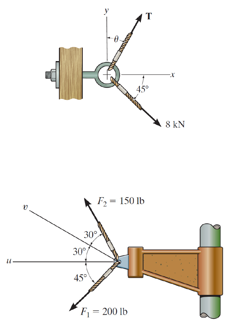 2.83. Três forças atuam sobre o olhal. Se a força resultante