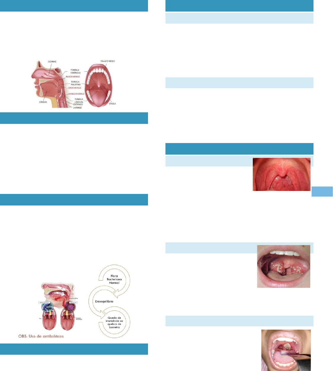 FARINGOTONSILITES CLÍNICA CIRÚRGICA II – OTORRINO – THAYS LOPES – 8º SEMESTRE 2 DEFINIÇÃO: São infecções das vias aéreas superiores que acometem faringe, tonsilas palatinas (amígdalas) e tonsilas faríngeas (adenoides). Essas são as estruturas que compõem o anel linfático de Waldeyer (rede de tecido linfoide distribuídas nas vias aéreas superiores). Essas estruturas podem ser afetadas por vírus, bactérias, protozoários e fungos. EPIDEMIOLOGIA: · Doenças mais comuns na população geral; · Dor de garganta e IVAS são as queixas mais comuns; · Pico de incidência no período outono-inverno; · Predomínio maior em crianças de cinco a dez anos de idade; · Fatores de risco - idade, tabagismo, consumo de álcool, DM e estado de imunossupressão; · Prevalência de 15 a 30% em crianças e 5 a 10% em adultos, segundo dados epidemiológicos mundiais. FISIOPATOLOGIA · Flora normal cria um equilíbrio entre bactéria da oro e rinofaringe, agindo na inibição do crescimento ou aderência de outras bactérias; · Por algum motivo, as bactérias da flora normal da garganta se desequilibram, causando a queda da imunidade ou de barreira, o que gera um quadro infeccioso e/ou inflamatório na região das amígdalas palatinas ou adenoides. AGENTES ETIOLÓGICOS: · Vírus: adenovírus, influenza A e B, parainfluenza 1, 2, 3, Epstein BAAR e herpes simples; · Bactérias: estreptococo beta-hemolítico do grupo A (mais comum), staphylococcus aureus, moraxella catarrhalis e chlamydia. · Lembrar que o estreptococo beta-hemolítico do grupo A é o estreptococo pyogenes. QUADRO CLÍNICO: TONSILA FARÍNGEA: · Adenoidite aguda: quadro semelhante a IVAS generalizada, febre, rinorreia, obstrução nasal e roncos; · Adenoidite crônica: rinorreia persistente, halitose, congestão crônica e muito relacionado ao reflexo faringo-laríngeo. A adenoidite crônica pode estar relacionada a refluxo gastroesofágico. TONSULA PALATINA: · Amigdalite aguda: febre, dor de garganta, disfagia, adenomegalia cervical, hiperemia de amígdalas e pode haver exsudato; · Amigdalite crônica: dor de garganta crônica, halitose, cálculos amigdalianos excessivos, edema periamigdaliano e adenopatia cervical amolecida persistente. CLASSIFICAÇÕES CLÍNICAS: ERITEMATOSA: · Hiperemia difusa e aspecto congesto de toda mucosa faríngea, podendo ou não estar presente exsudato esbranquiçado; · Mais comum (90%); · Geralmente, de origem viral; · Sintomas sistêmicos: febre baixa ou moderada, tosse, coriza, obstrução nasal, ausência de adenopatia cervical e dores no corpo. ERITÊMATO-PULTÁCEA: · Presença de exsudato esbranquiçado ou purulento (nas criptas e nas superfícies das tonsilas palatinas); · Maior parte de causa bacteriana: estreptococos pyogenes beta-hemolítico do grupo A de Lancefield; · Dor faríngea, odinofagia e otalgia reflexa. PSEUDOMEMBRANOSA: · Formação de placas mais ou menos aderentes recobrindo as amígdalas, associada a edema da mucosa; · Edema de úvula e de palato; · Tríade clássica: faringite, febre e linfoadenomegalia; Principal causa é EBV (mononucleose infecciosa): nesses casos a úvula costuma estar preservada; pode se apresentar como eritêmato-pultácea. É comum inicialmente se achar que é de origem bacteriana e com a persistência e a resistência ao tratamento, se descobre que é a mononucleose; Difteria: secreção e eritema recobre toda a região da orofaringe, placas bem aderentes sangrantes e tentativa de remoção não preserva a úvula. É potencialmente fatal por poder causar obstrução na via aérea. Prevalência baixa por conta vacinação de DTP. Tratamento com soro diftérico. ÚLCERO-NECRÓTICA: · Formação de úlceras profundas associadas à necrose tecidual, muito comum na angina de Plaut-Vincent e cancro sifilítico; · Angina de Plaut-Vincent: infecção causa por duas bactérias saprofíticas - espiroqueta e fusobactéria (da flora normal). Geralmente unilateral e devido a má higiene bucal, bastante dolorosa; · Sífilis: observar comportamento de risco, bordas elevadas com fibrina e necrose; · Pensar em carcinoma na região das amígdalas. VESICULOSA: · Presença de vesículas ou de úlceras que ocorrem devido a erupção das vesículas; · Causadas usualmente pelo vírus herpes simples tipo 1; · Herpangina: causada pelos enterovírus Coxsakie A. Altamente contagiosa - lembra a herpes. Causa dor chamada angina. É uma doença que acomete crianças pequenas; · Síndrome mão-pé-boca é causada pelo Coxsakie A. VIRAL X BACTERIANO: · O quadro viral é mais espalhado e o bacteriano é mais concentrado. Além disso, a principal característica do bacteriano é a dor de garganta. · Otalgia reflexa pela estimulação do nervo glossofaríngeo. VÍRUS EPSTEIN-BARR (MONONUCLEOSE INFECCIOSA): · Indivíduos entre 15 e 25 anos de idade; · Comportamento de risco; · Geralmente bilateral; · Quando esse quadro for unilateral pense na Angina de Paul-Vincent; · Transmissão pela saliva ou contato próximo; · Apresentação clínica: febre alta, linfadenomegalia, angina, exsudato eritemato-pultáceo ou placas pseudomembranosas; · Pródromo: fadiga, mal-estar e mialgia. 1 a 2 semanas antes do início da febre; · Outros sintomas: artralgia, dor abdominal, esplenomegalia, exantema, hepatomegalia discreta - raramente com icterícia, náuseas, vômitos e tosse; · Diagnóstico diferencial: rubéola, escarlatina, toxoplasma gondii, HIV e tripanossoma cruzi; · Pode conter Rash cutâneo espontaneamente. · O exantema geralmente aparece quando o paciente é exposto a betalactâmico e geralmente ocorre quando há suspeita de infecção bacteriana por estreptococo, trata e aparece o rash. · Associar com a idade e saídas para festas; · Hemograma - leucocitose as custas de linfócitos, sem desvio + presença de linfócitos atípicos (que normalmente não estão presentes). Faz logo o hemograma pois sai mais rápido; · Sorologia - IgG e IgM para Ep